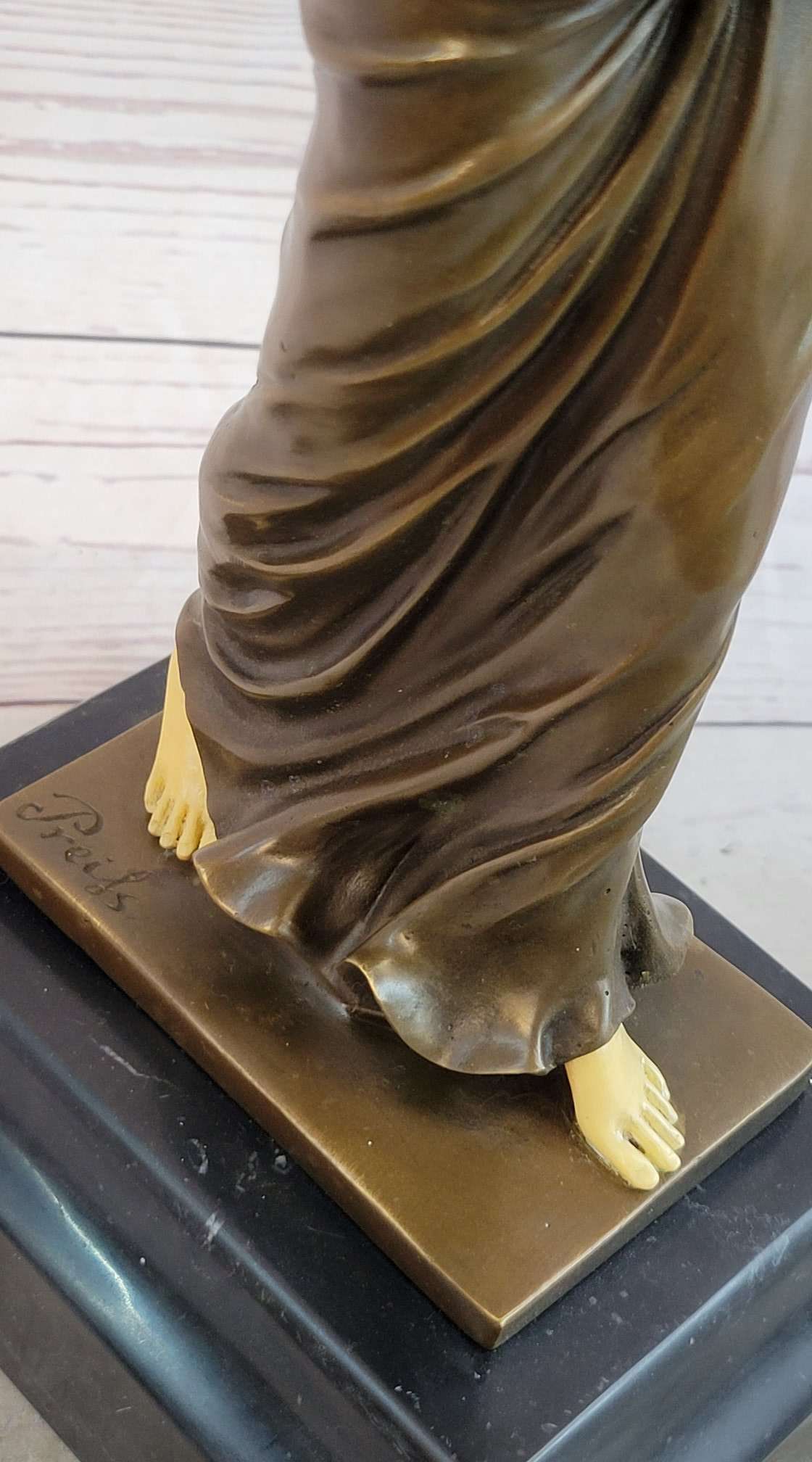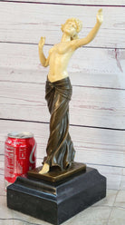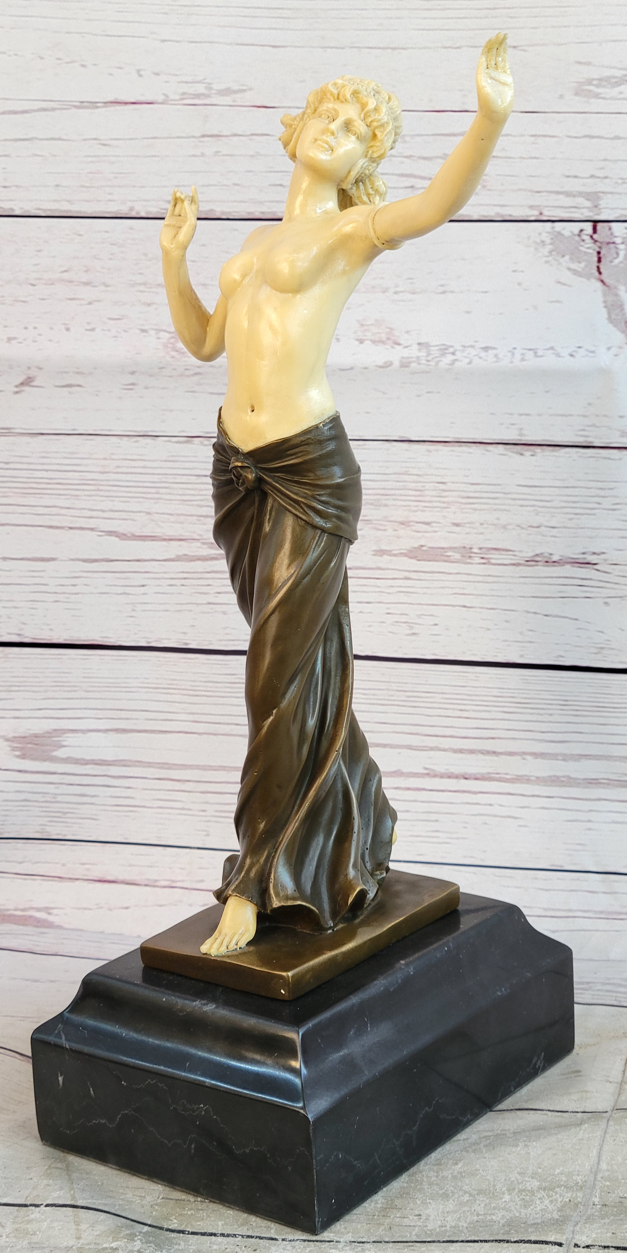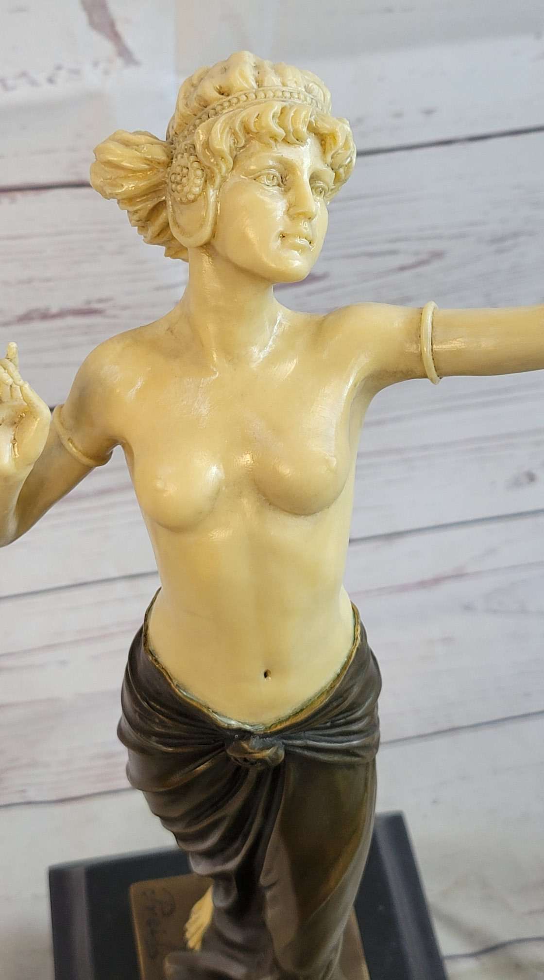Topless Semi Nude Classical Bronze & Faux Bone Sculpture Statue Figure on Marble Base by Preiss