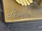 This sculpture features a unique combination of materials — a bronze body with resin head and arms, finished with a brown and resin patina that enhances its texture and depth. Mounted on a solid marble base and signed by Preiss, this handmade piece showcases exceptional craftsmanship and timeless elegance, created using The Art of Lost Wax technique.Bronze Dimensions with Marble Base: Height 14.5" X Width 7"
