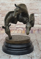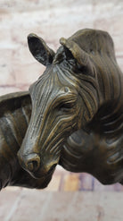 Trio of Bronze Zebra Heads – Dynamic African Wildlife Art on Marble Base