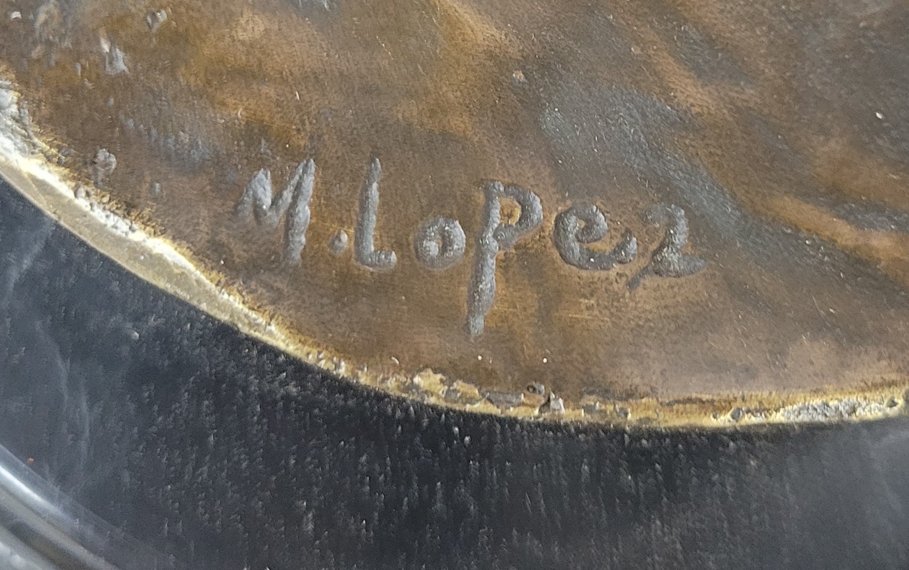 Mounted on a sleek black marble base and signed by the artist, M. Lopez, this sculpture is sure to be a prized possession for years to come. Whether you're an art collector or simply looking for a stunning piece of decor, this bronze sculpture is a must-have. So why wait? Order yours today and start enjoying its beauty and elegance in your home or office!Bronze Dimensions with Marble Base: 12.5" X 9"