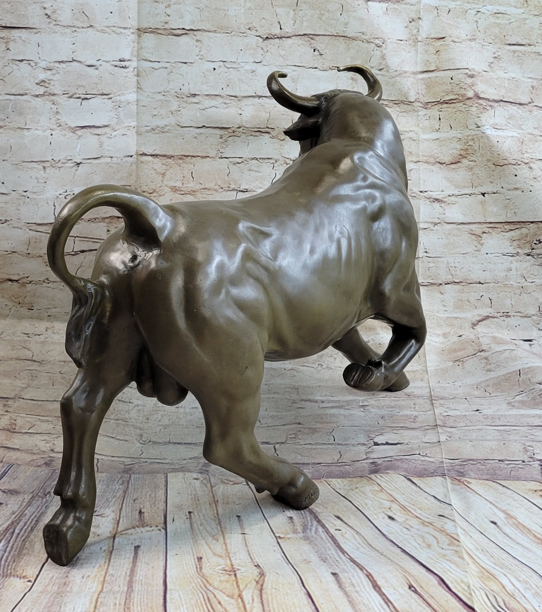 Whether you're an art collector, a fan of bullfighting, or simply appreciate the majesty of this powerful animal, this bronze sculpture is a remarkable piece that will command attention in any setting. Its dynamic energy and lifelike representation make it a captivating addition to your art collection or a striking focal point in your home or office.Bronze Dimensions: Height 16 " X Width 22"