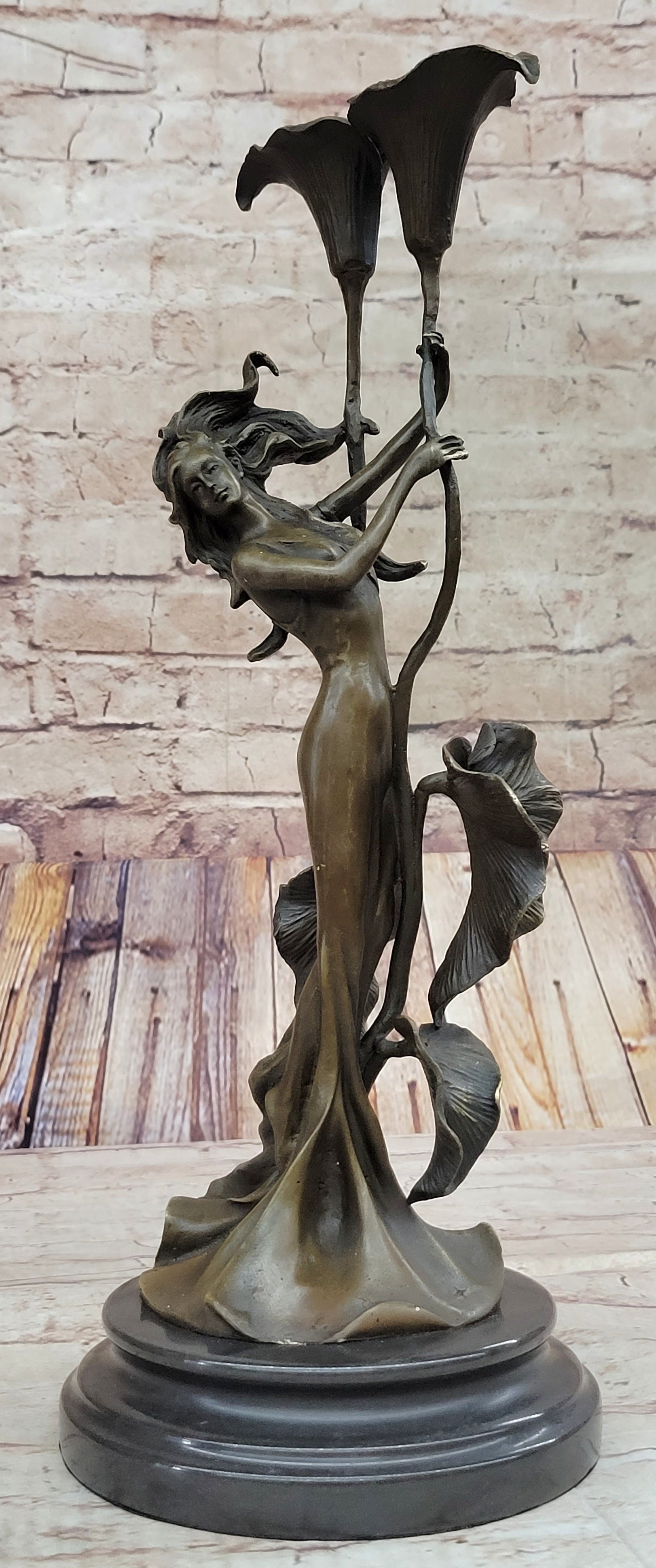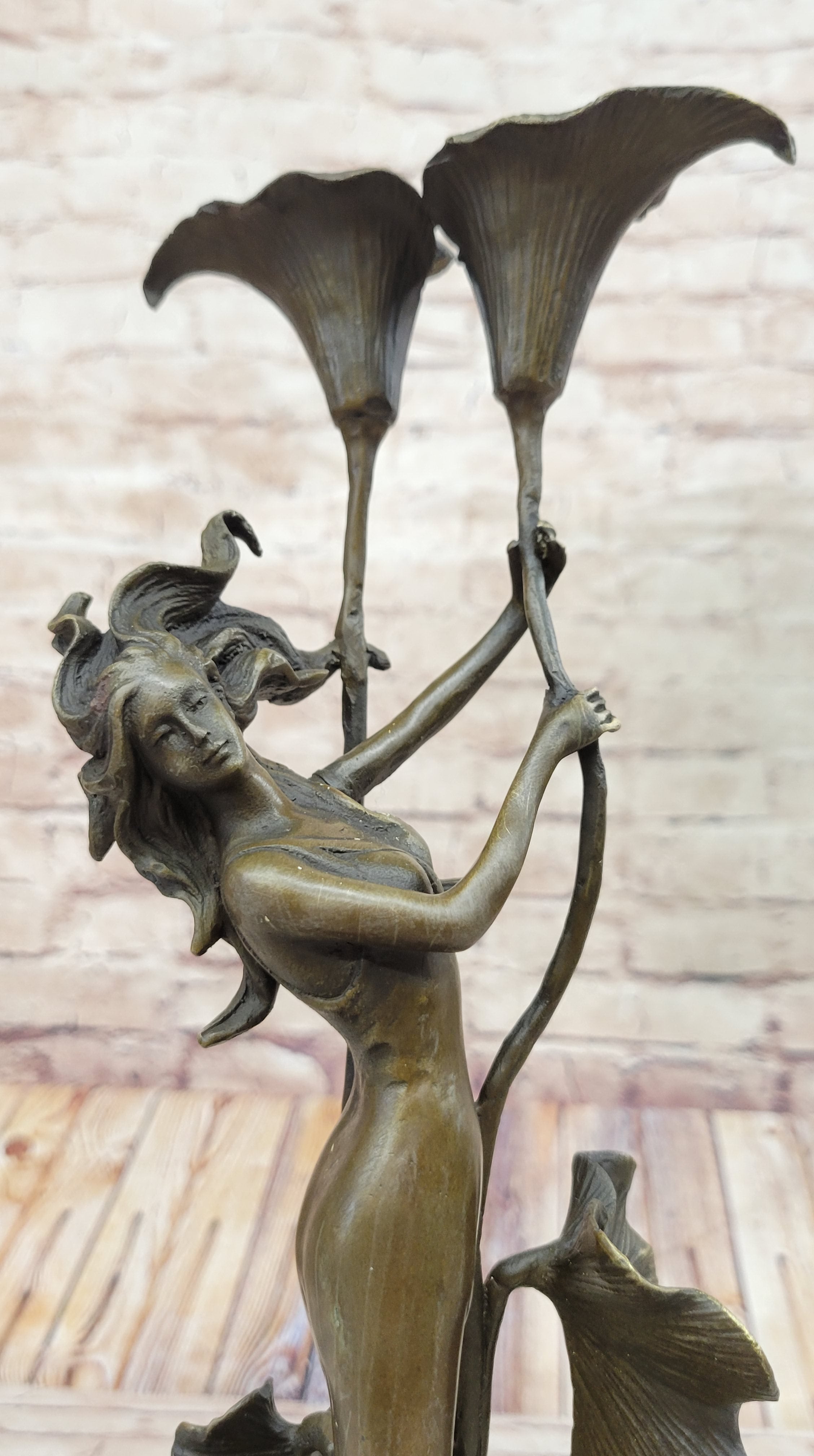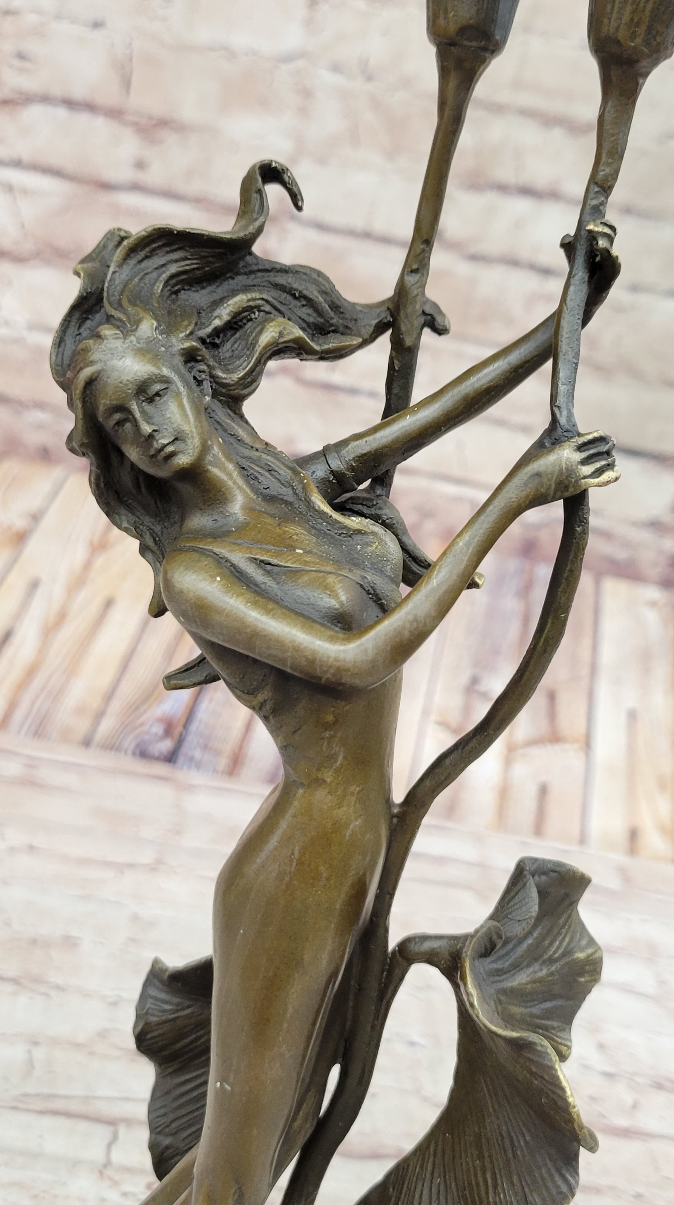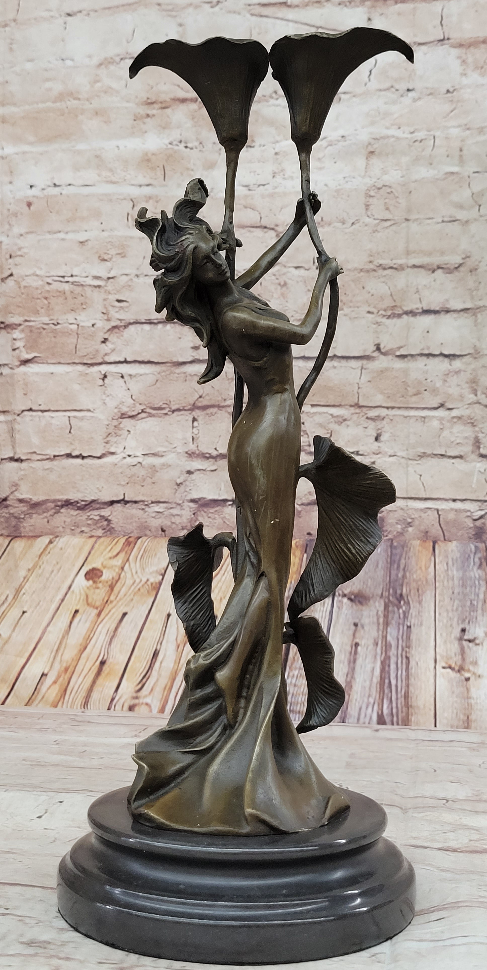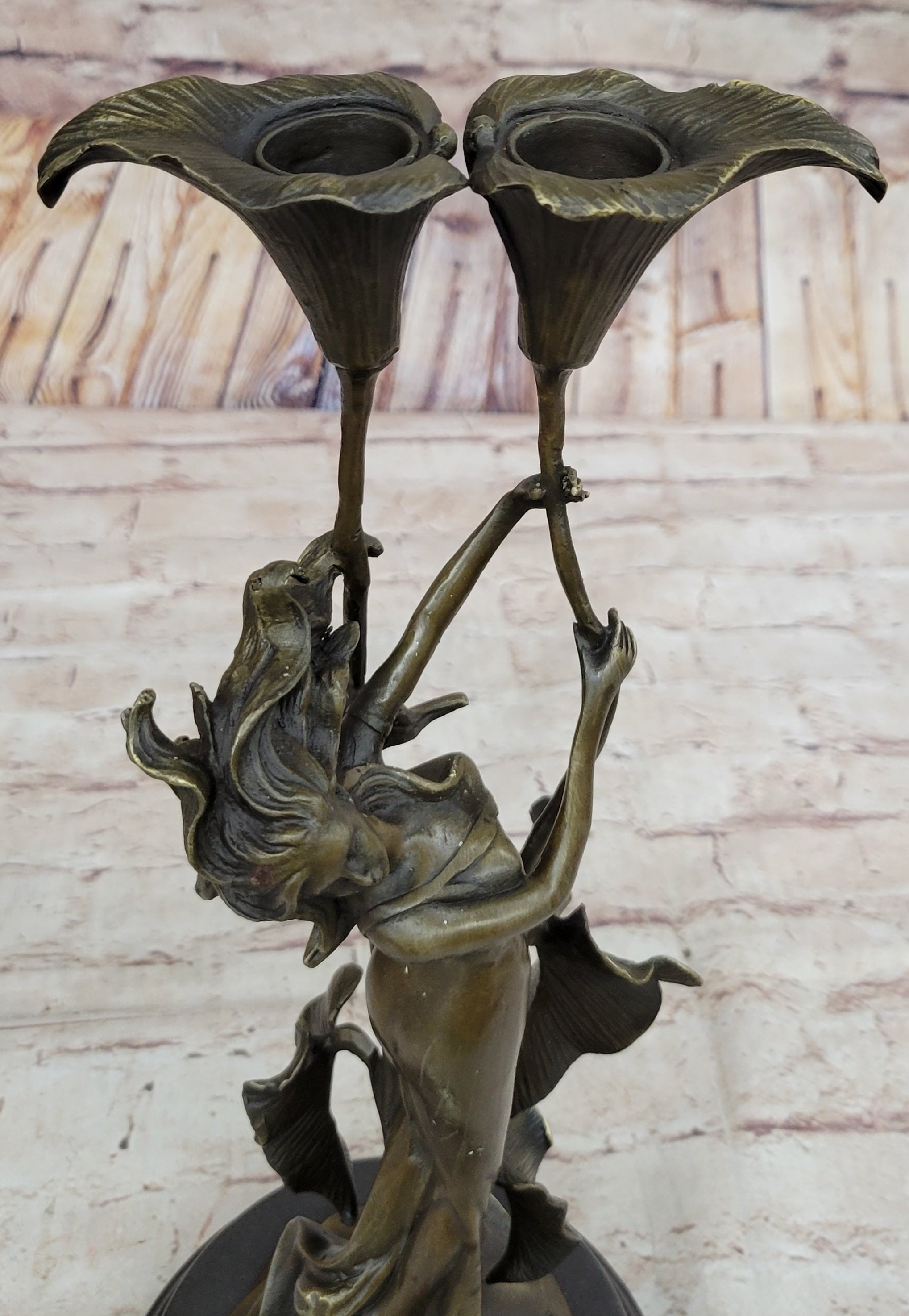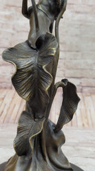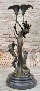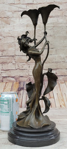 Tulip Young Girl Candlestick Statue Bronze Art deco Candleholder Sculpture