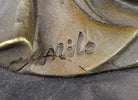 This exquisite bronze sculpture, titled "Tulip Young Girl Candlestick," is a true masterpiece of Art Deco design. Crafted by the renowned artist Milo, this sculpture captures the essence of elegance and sophistication. The young girl, with her graceful pose, holds a tulip-shaped candlestick, adding a touch of timeless beauty to any space.