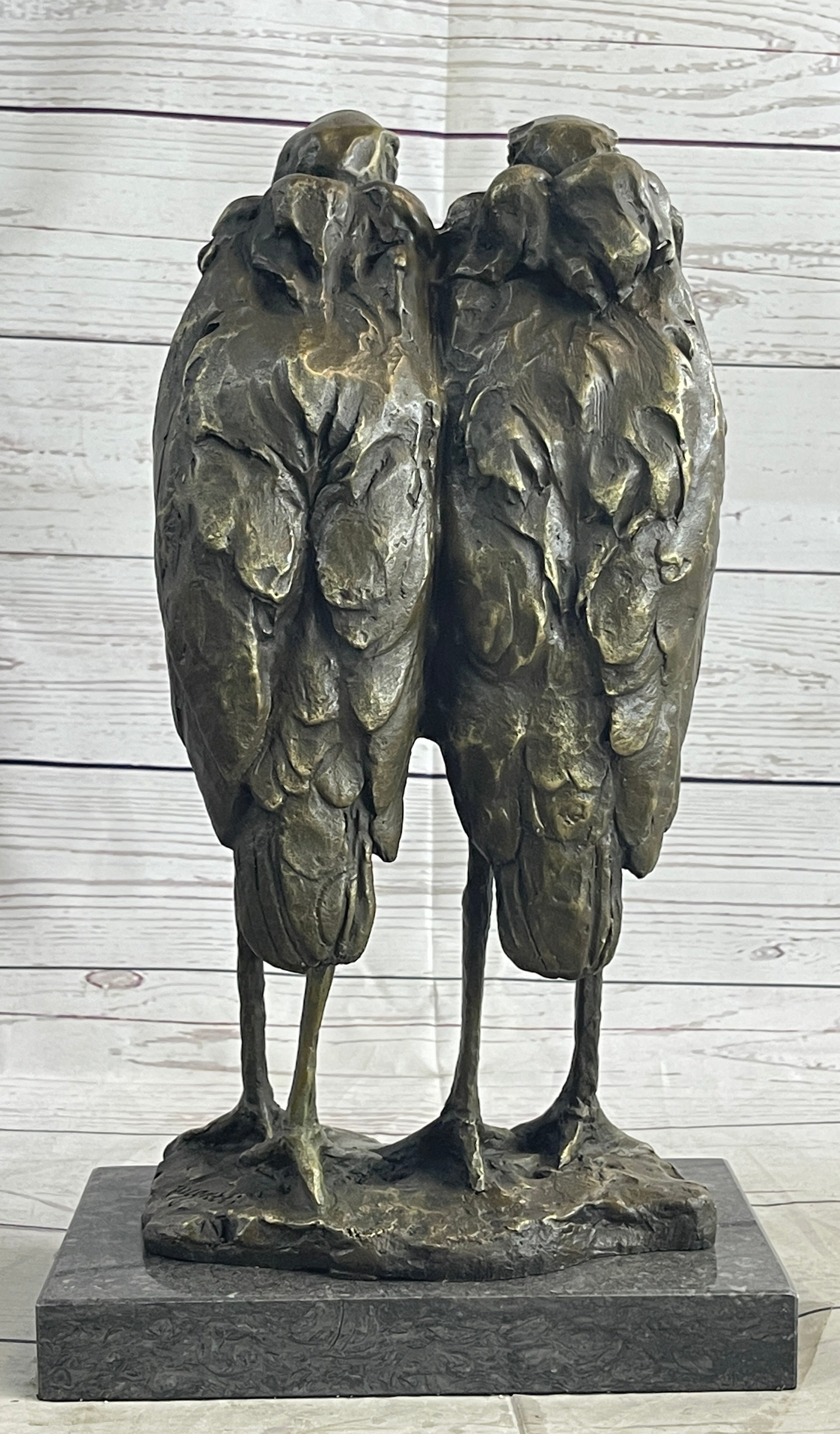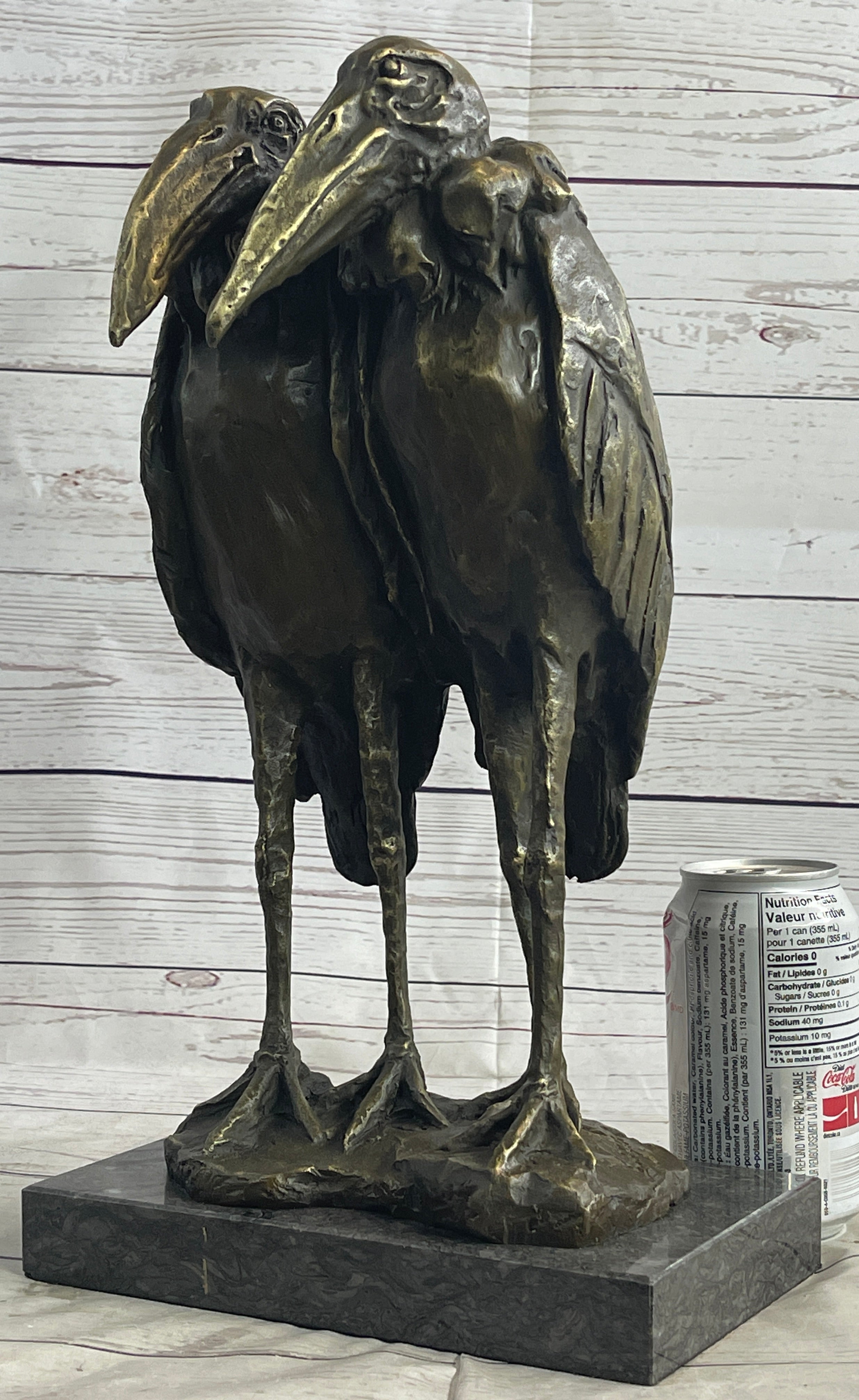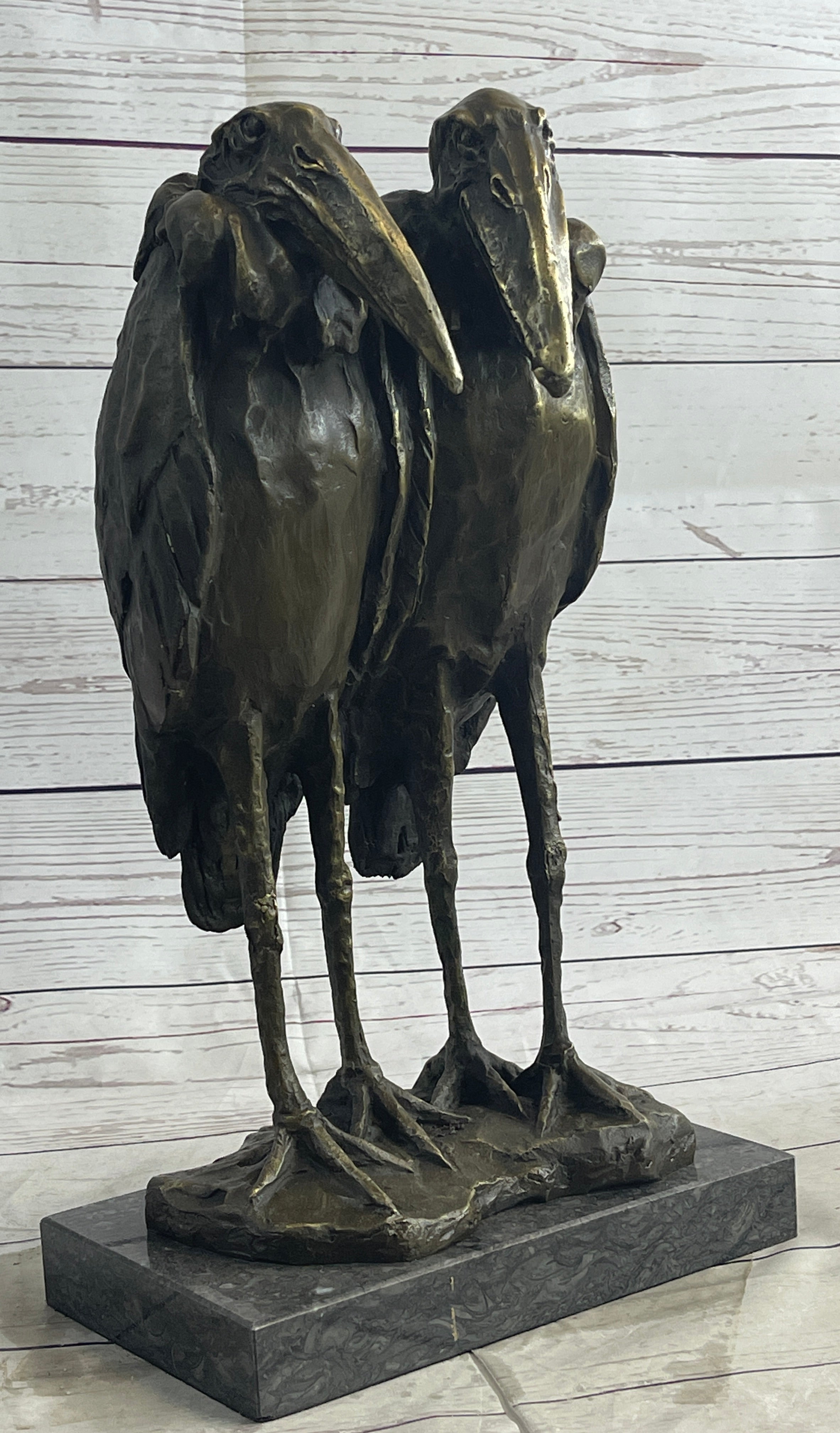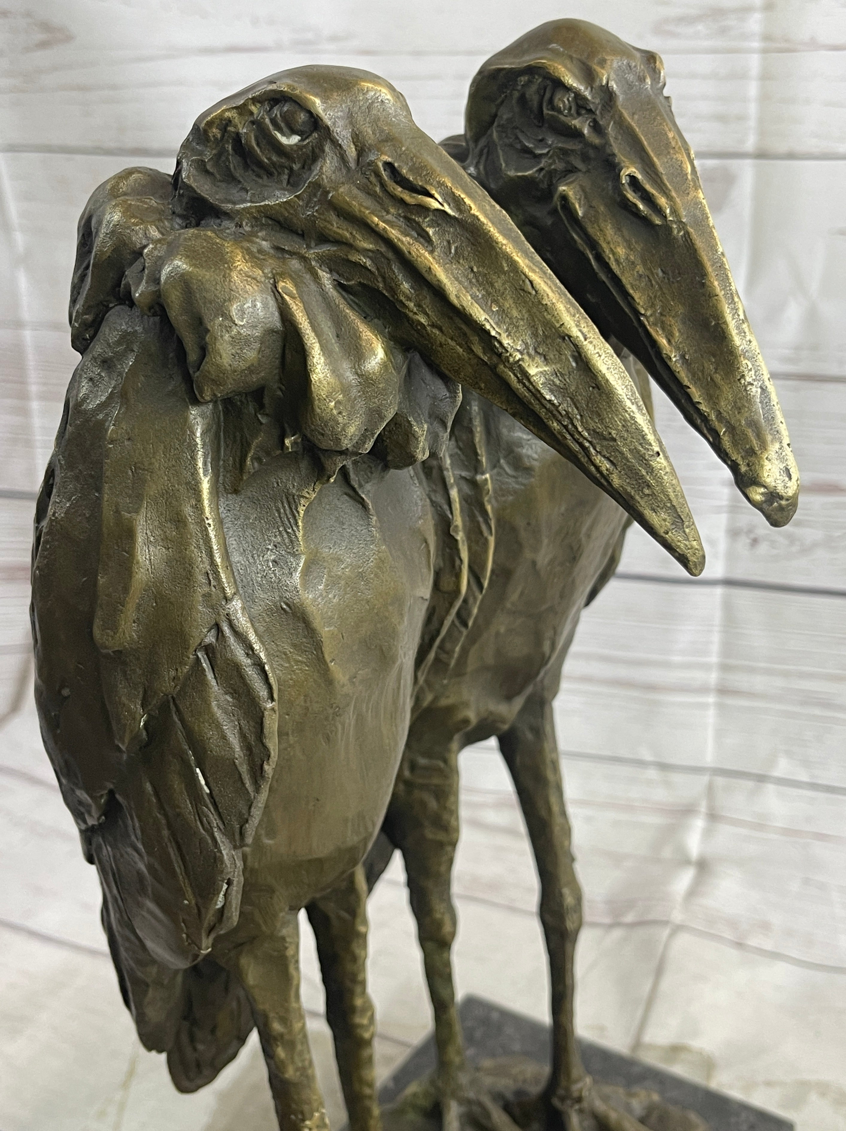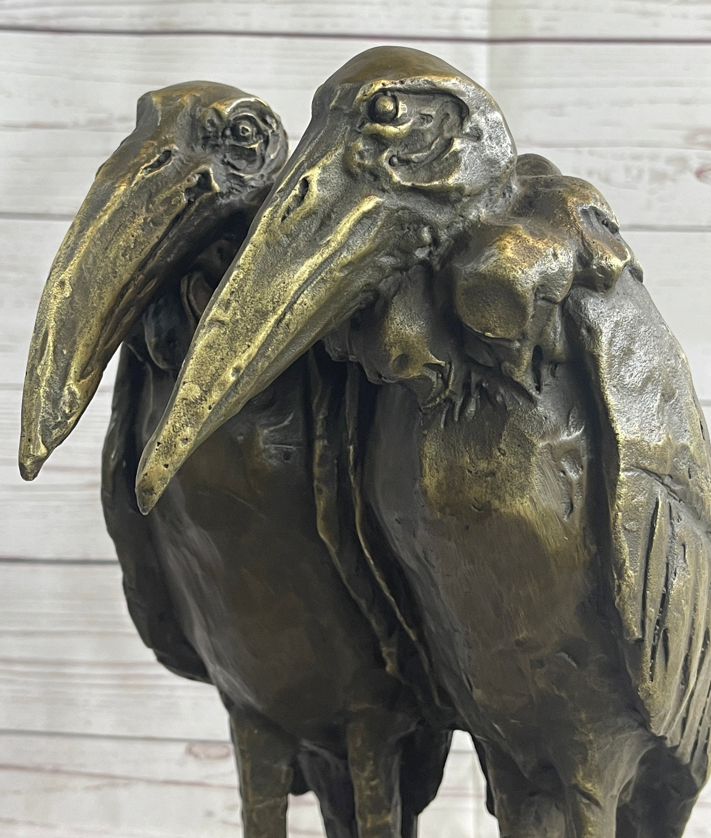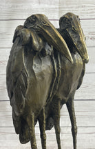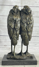 Two Birds Pelicans Storks Vultures Water Fowl Bronze Sculpture Statue on Marble Base