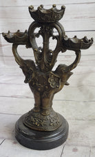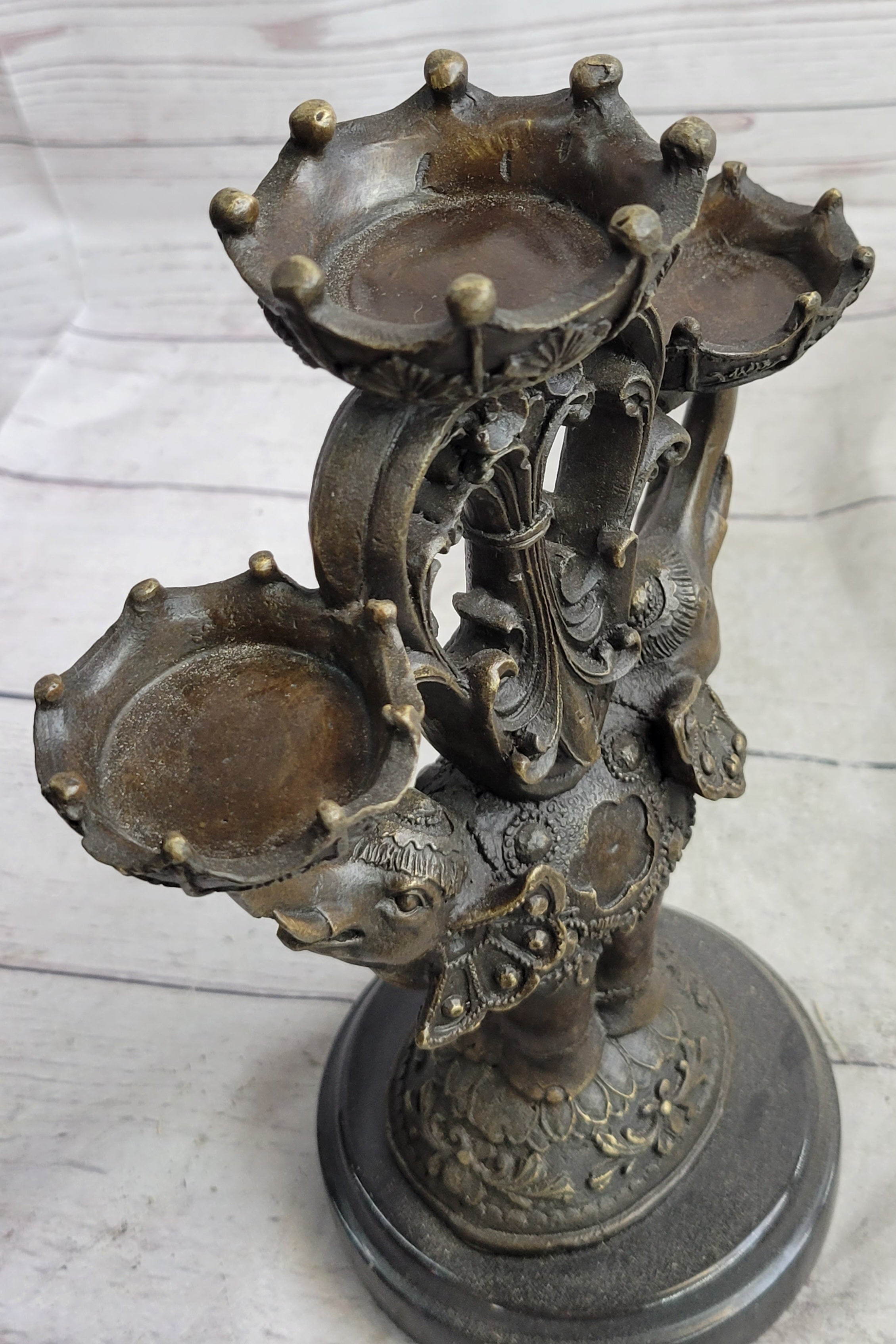 Two Headed Elephant Candle Holder Bronze Sculpture Marble Base Figurine Statue