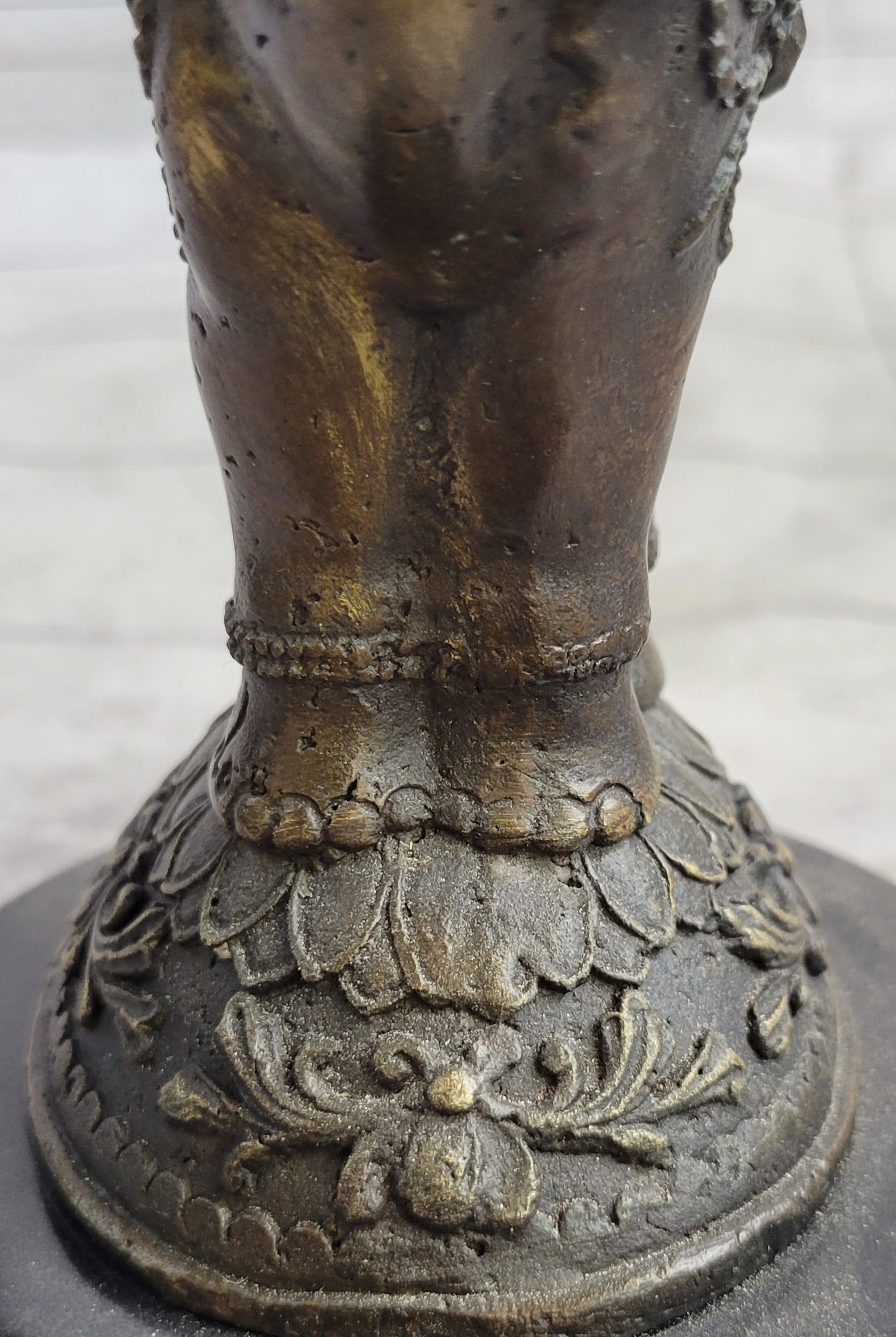 This sculpture is made of 100% real bronze, handcrafted using the traditional "Lost Wax Method" for remarkable detail and authenticity. It features a rich brown patina finish and is mounted on a polished marble base. Handmade and built to last, this sculpture is a stunning blend of cultural symbolism, artistic skill, and timeless elegance.Bronze Dimensions with Marble Base: Height 11" X Width 7"