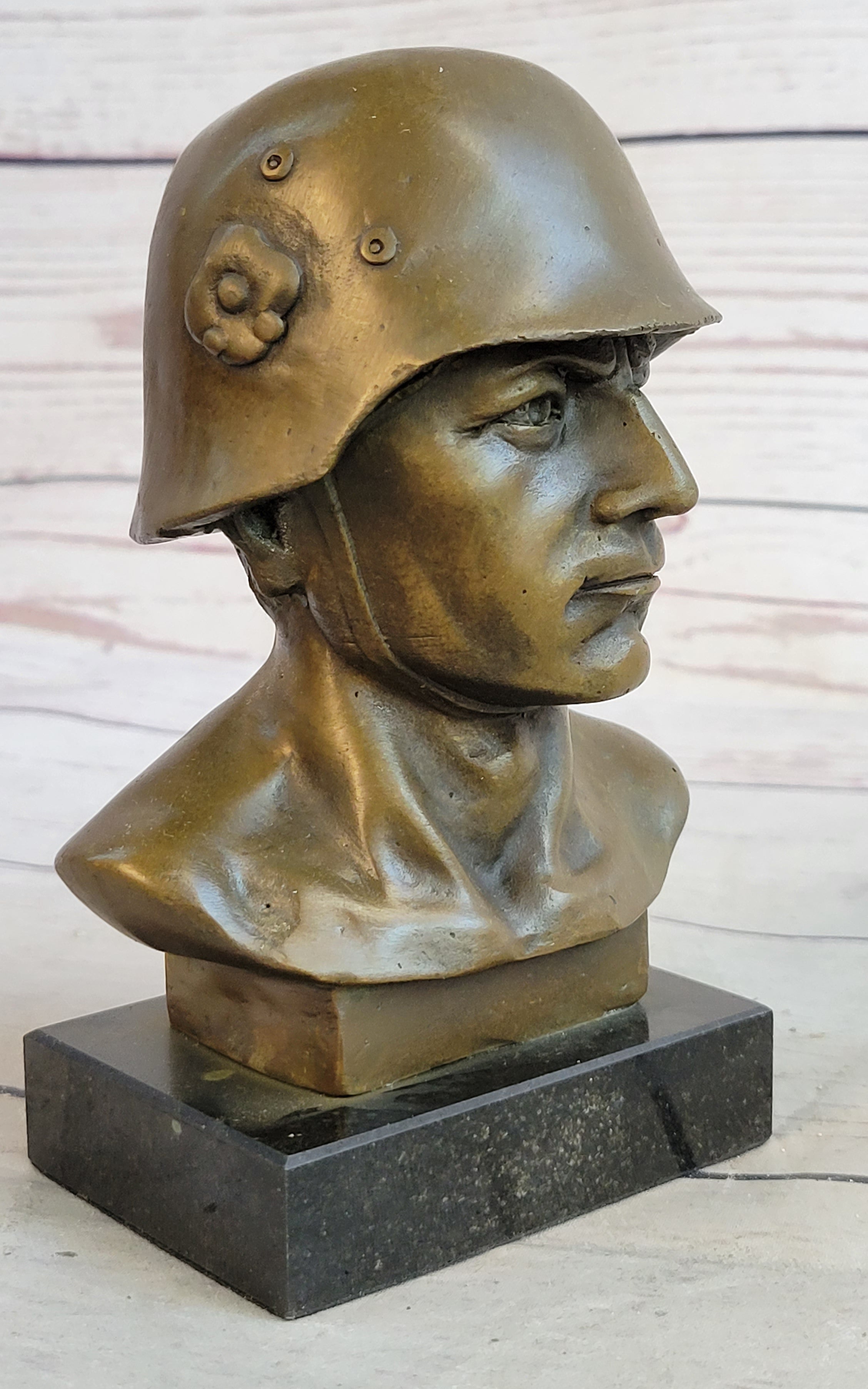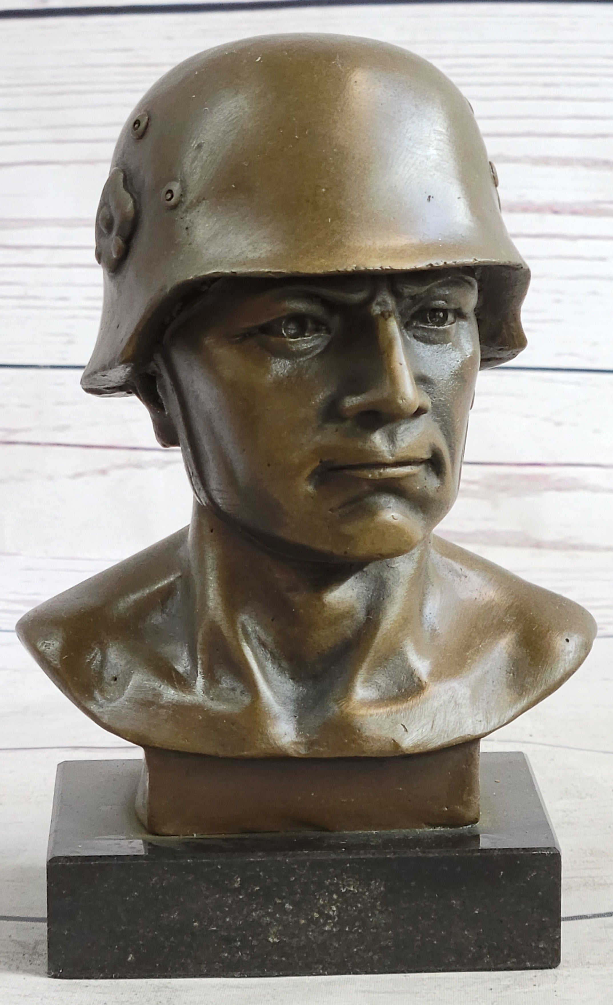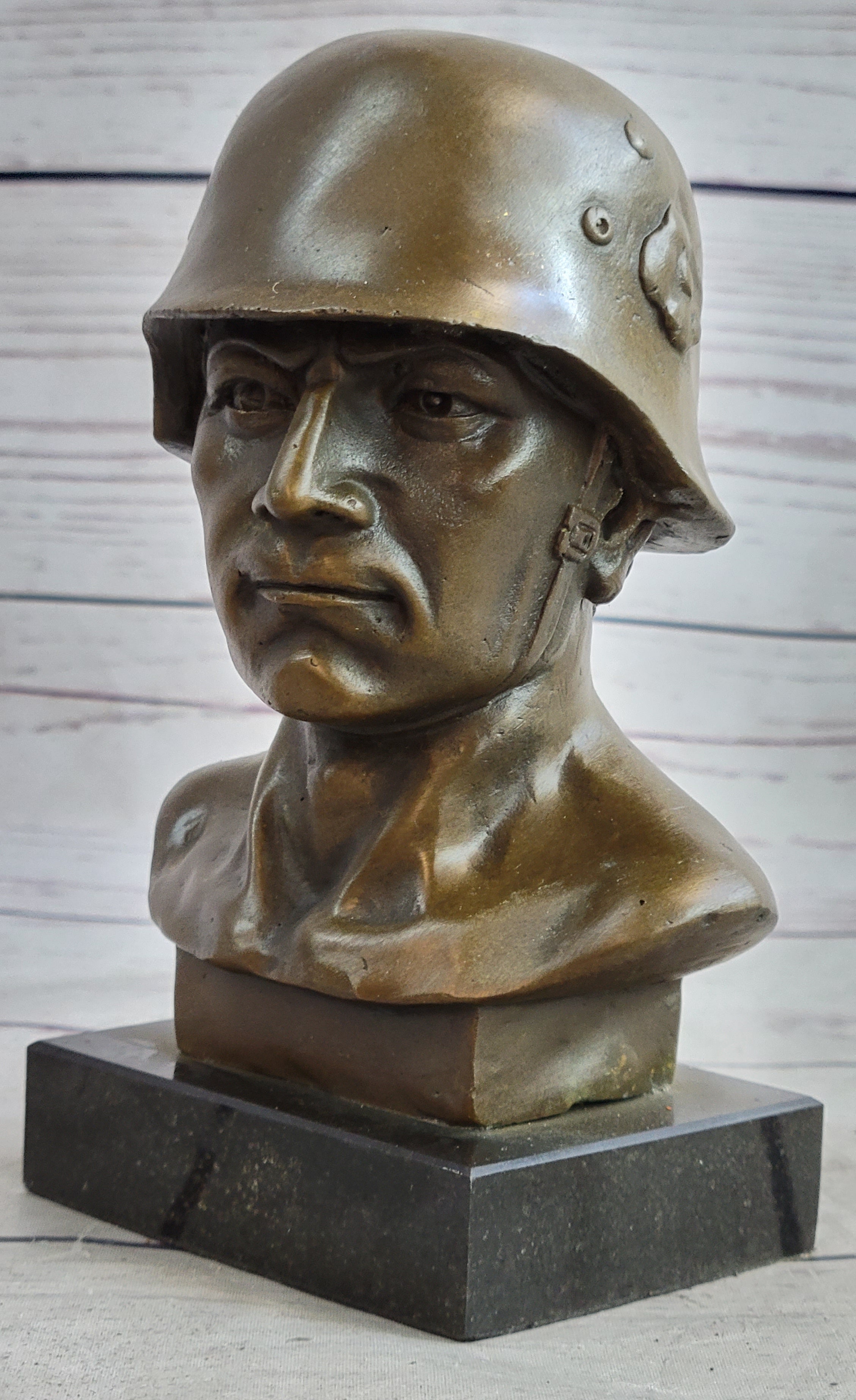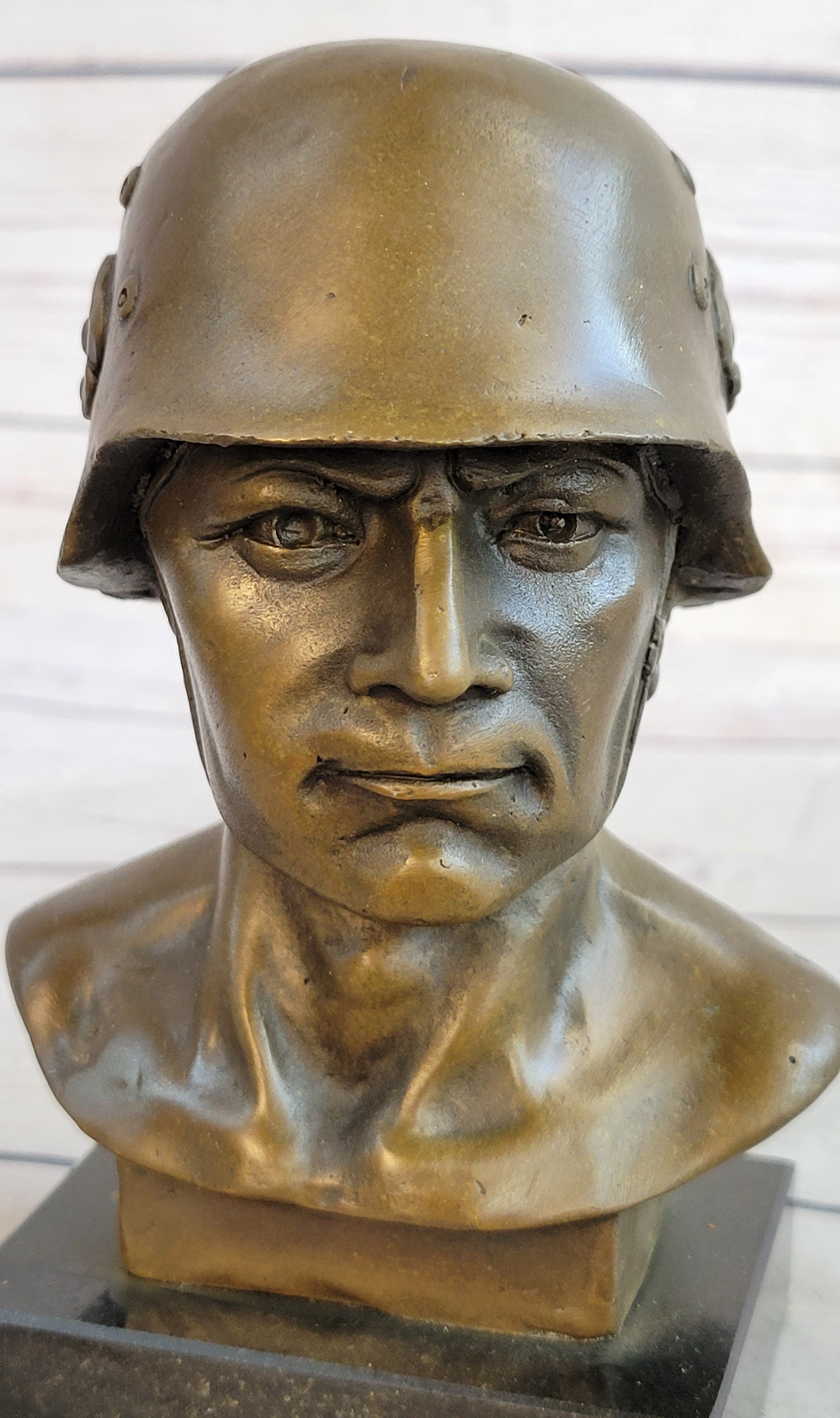 Unknown German Soldier Bronze Bust Sculpture Statue WW1 WW2 6" x 4"