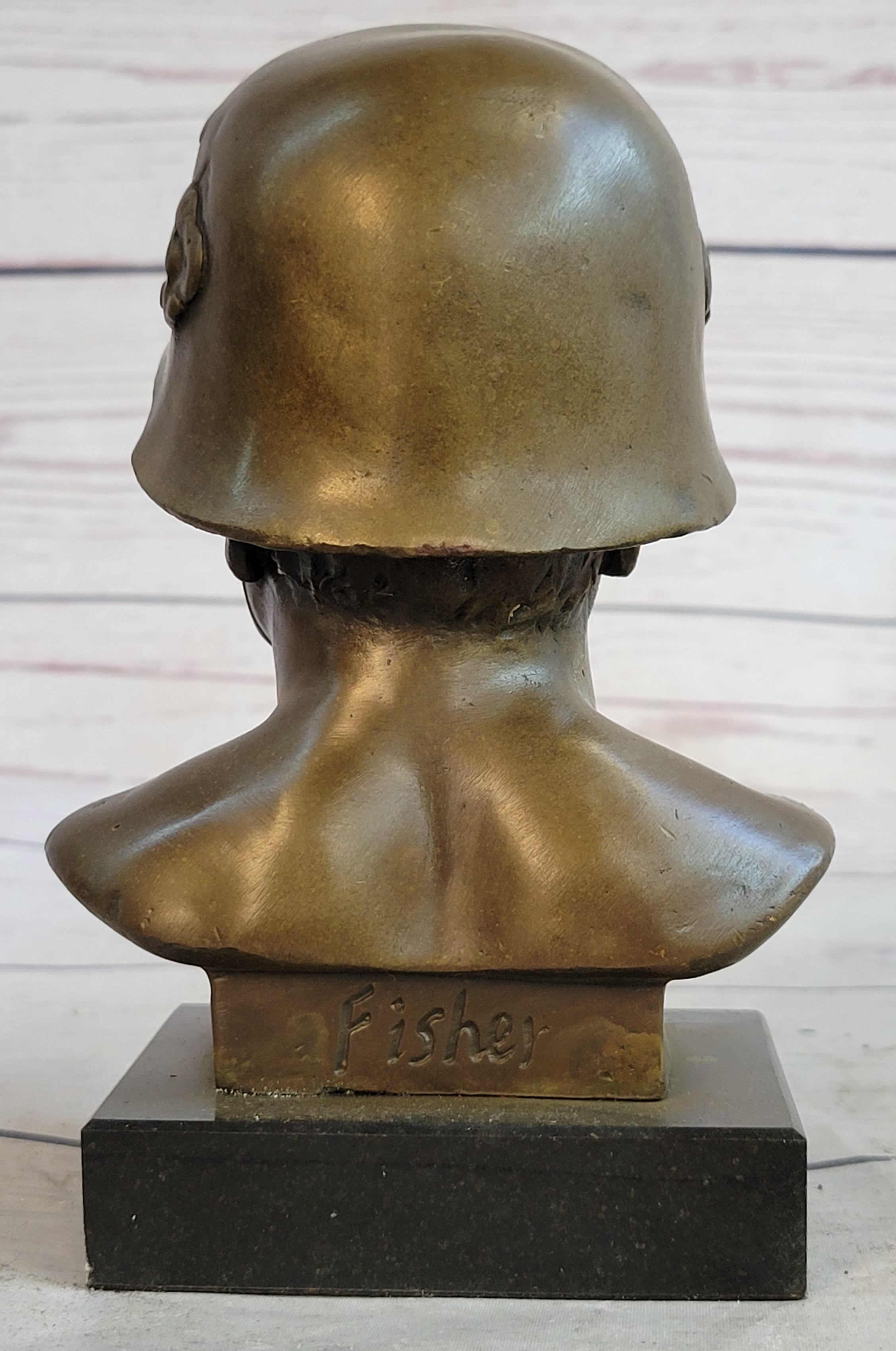 The timeless appeal of this artwork is further enhanced by its "lost wax method" casting, resulting in a distinctive brown patina finish. The artist Fisher's signature adds an authentic touch, underscoring the sculpture's artistic and historical significance. Whether displayed as a tribute to military history or a symbol of honor, this busts sculpture serves as a poignant reminder of the German Army's enduring contributions.Bronze Dimensions with Marble Base: Height 6" X Width 4"