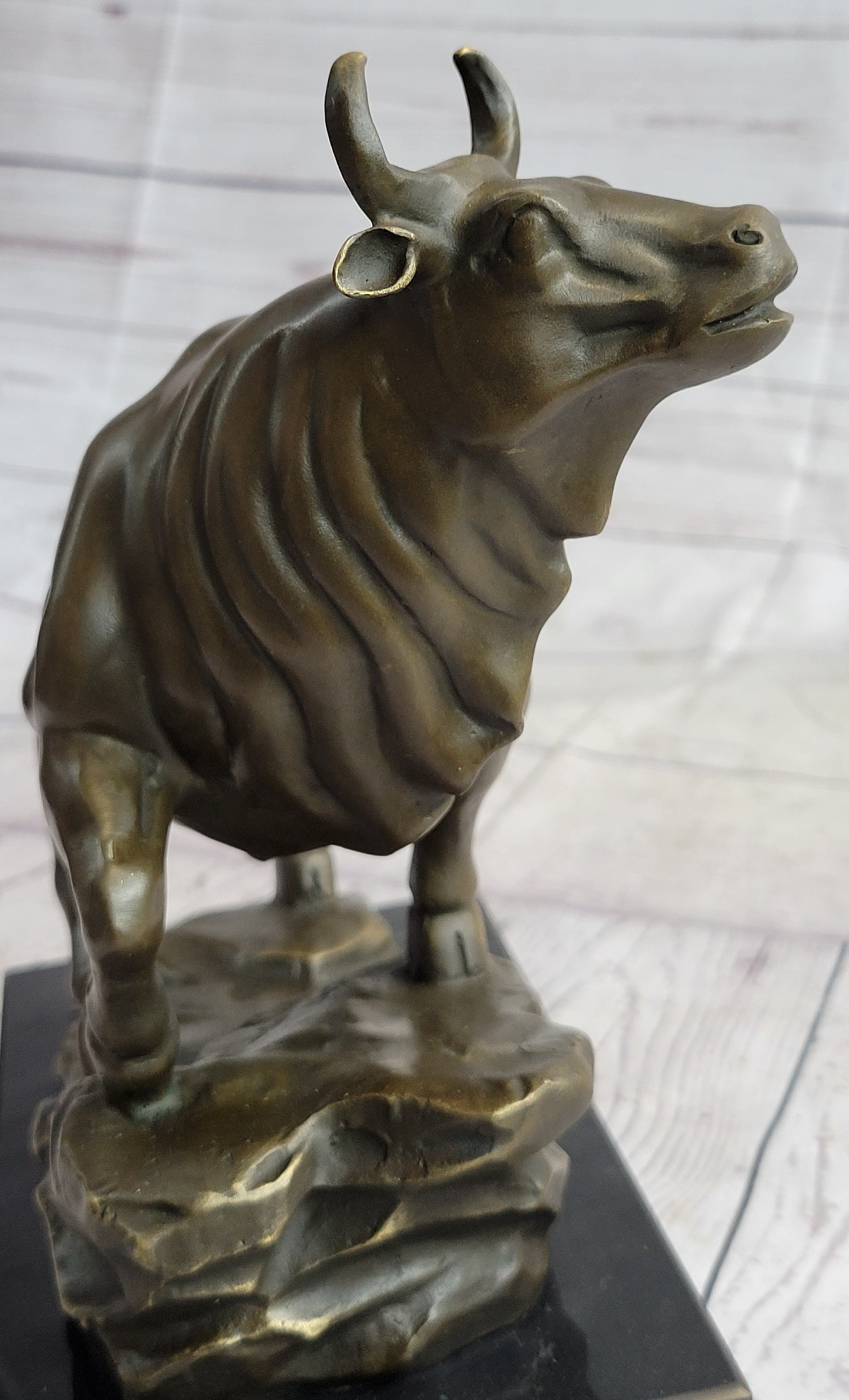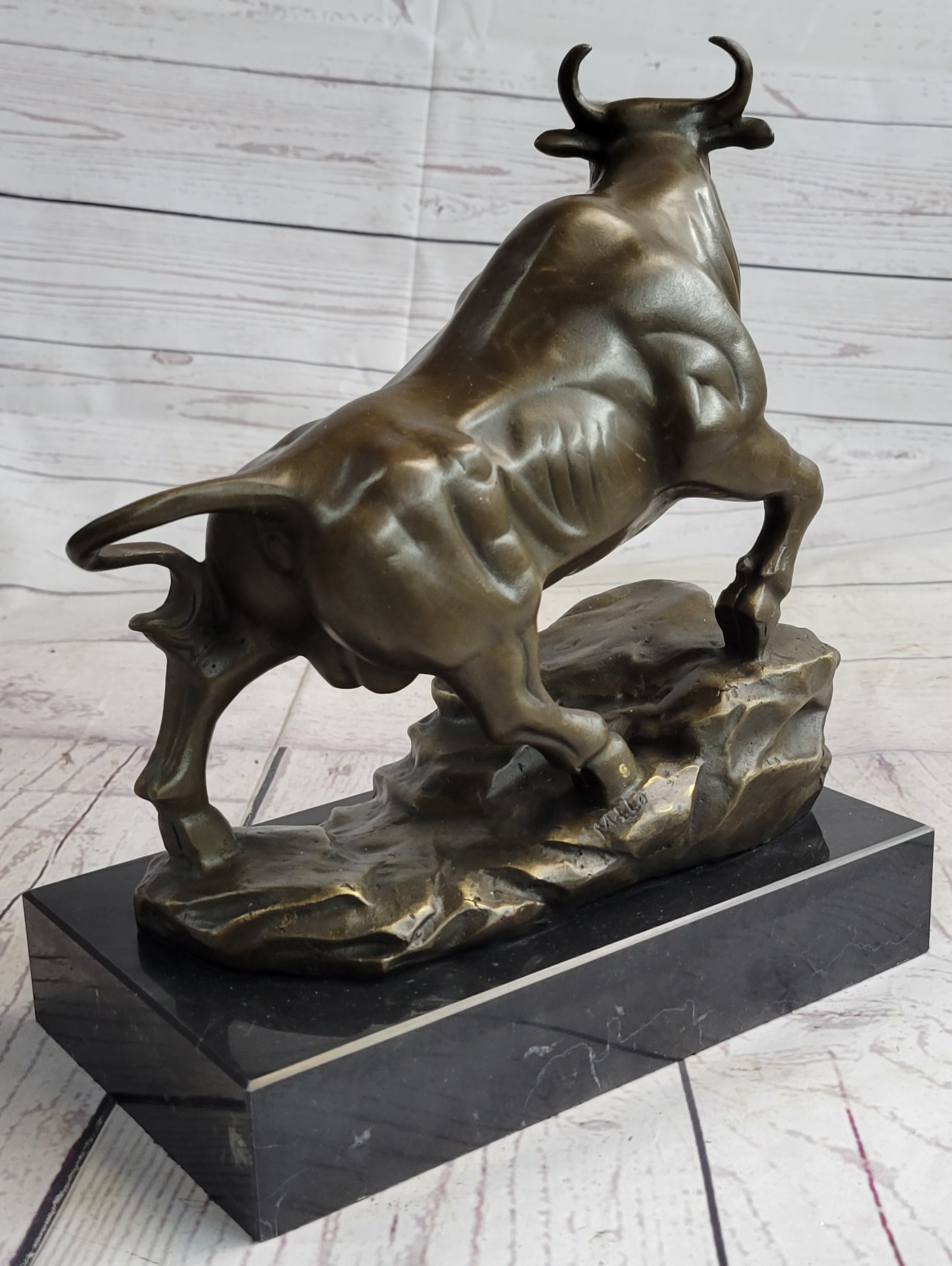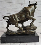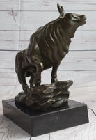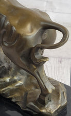 Upward Facing Bull Bronze Metal Statue Sculpture Figure Marble Base Signed Original 10" x 11"