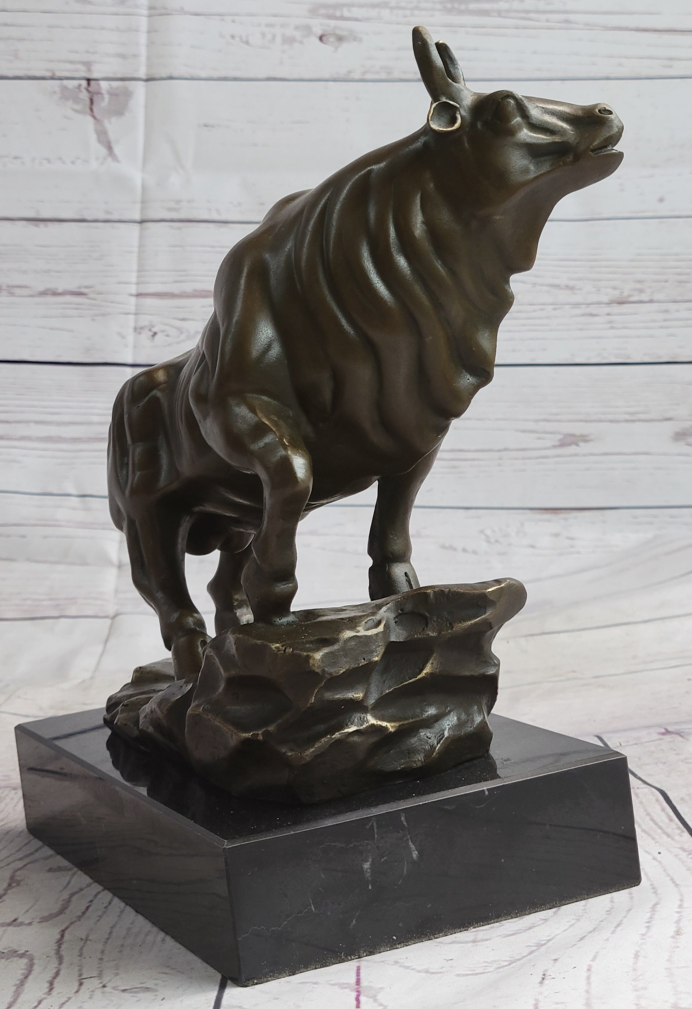 The meticulous craftsmanship of this sculpture reveals the extraordinary proportion and lifelike quality of the bull's muscles and body structure. Every curve and contour showcases the artist's attention to detail, resulting in a truly stunning piece of art.