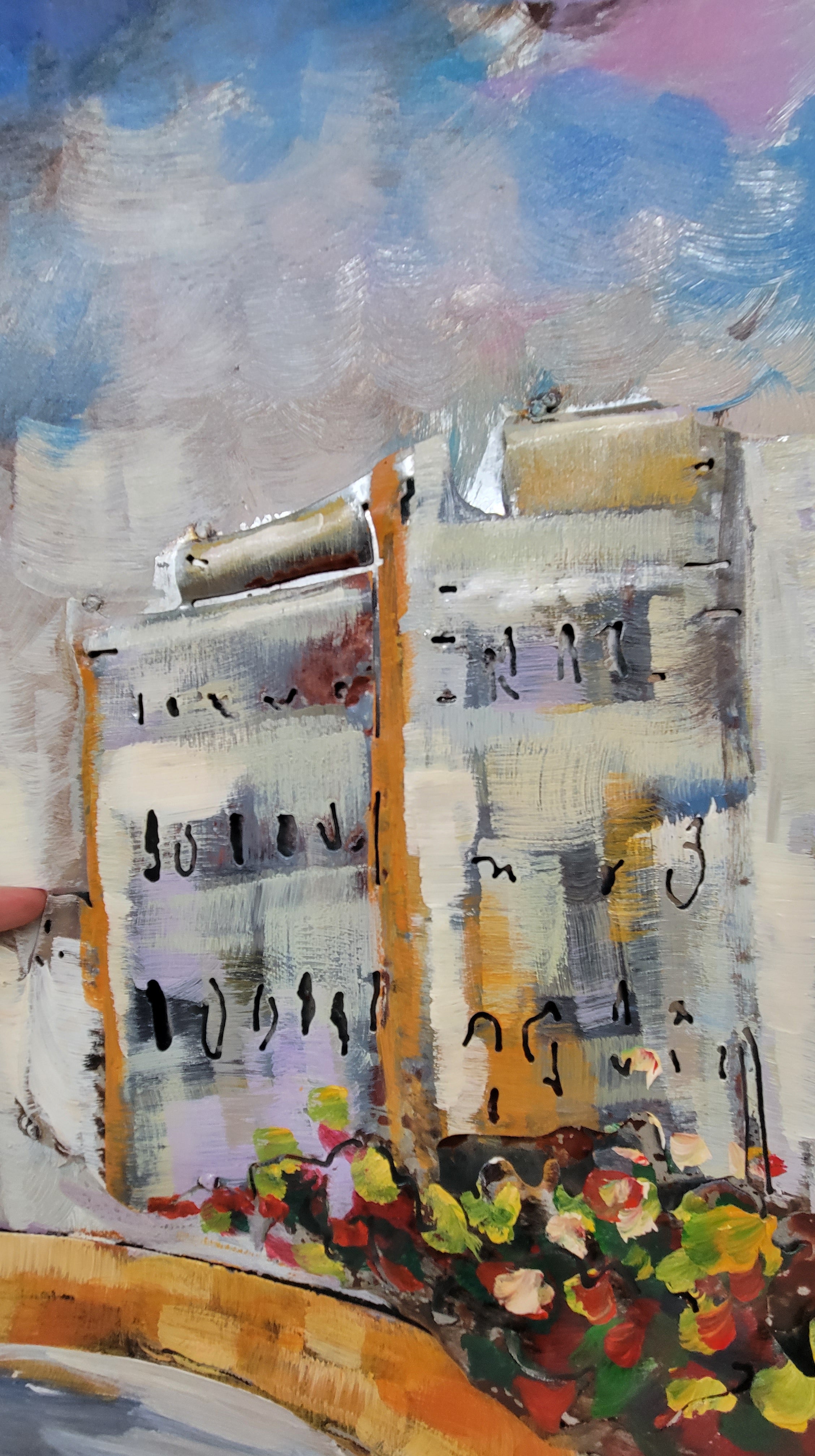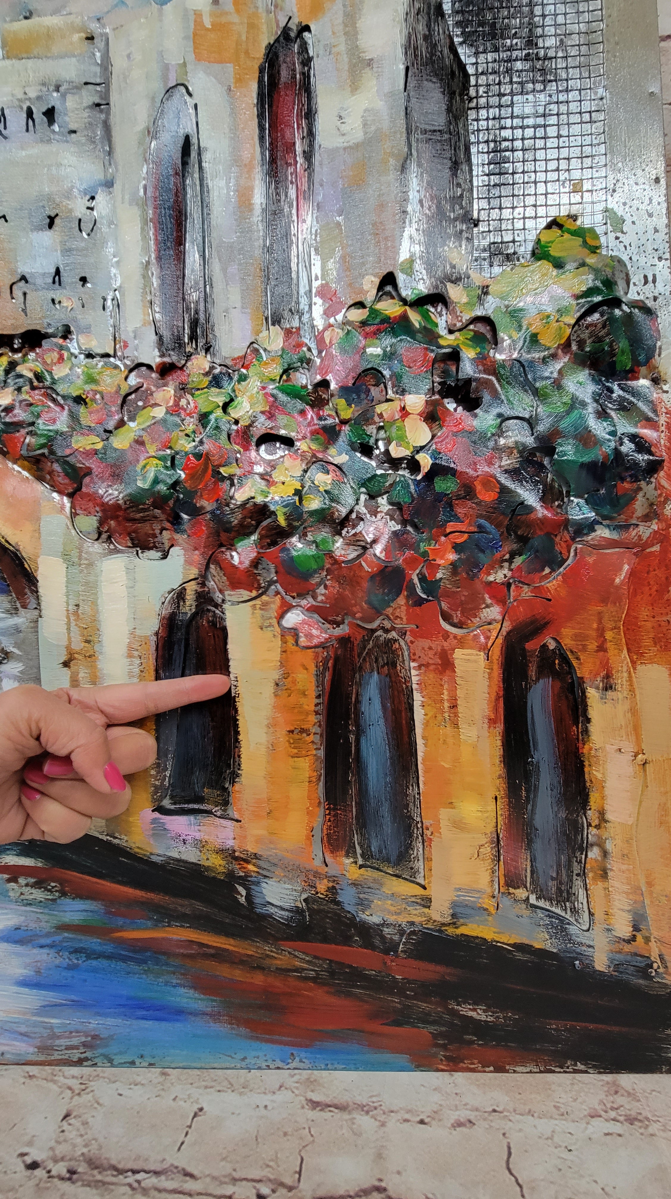 Each brushstroke tells a story of the city's beauty, making it a perfect focal point for any living room, office, or entryway. The handmade Italian painting exudes sophistication and old-world charm, blending traditional techniques with a modern metal medium for added durability and visual impact.