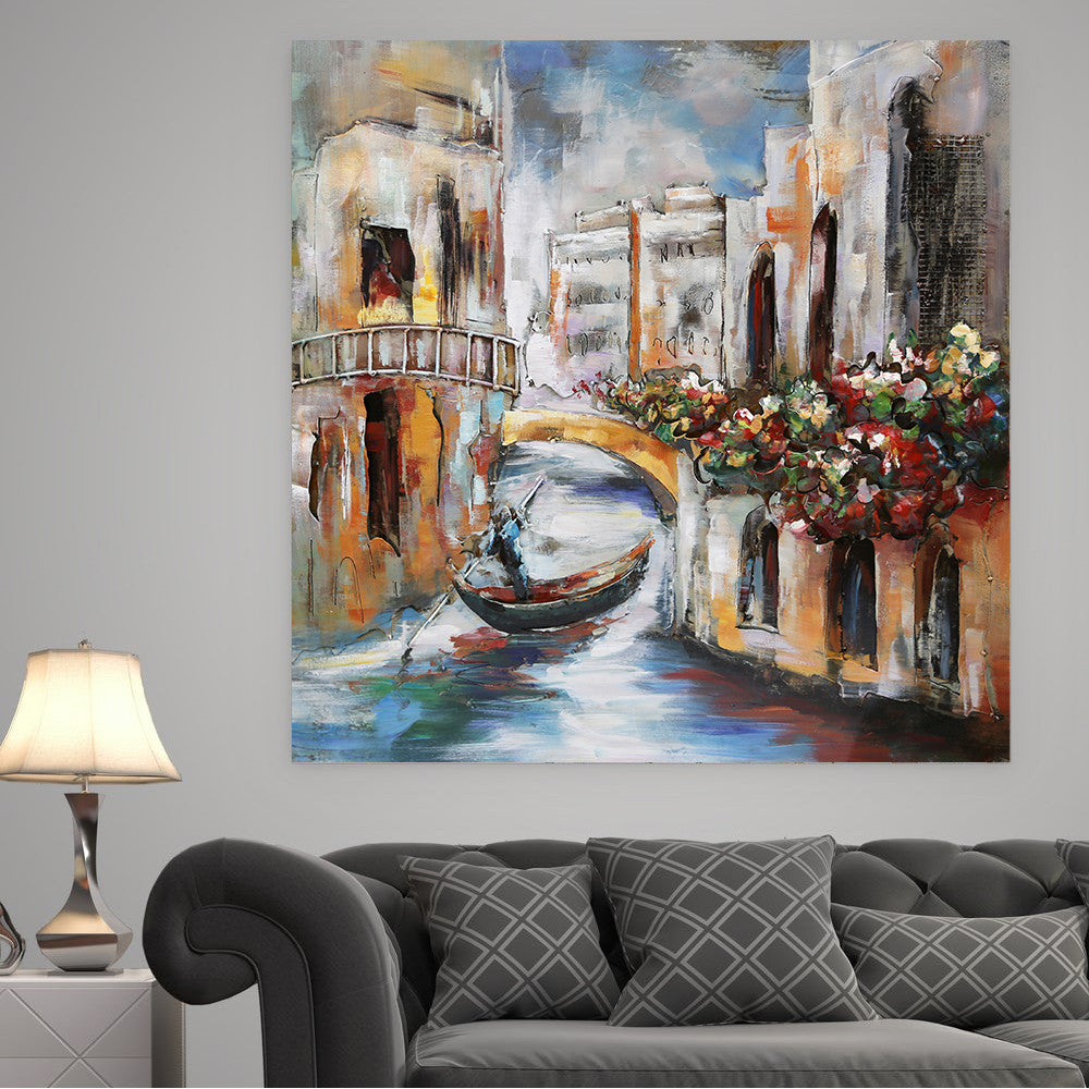 Whether you’re a lover of European travel, Italian culture, or fine art, this Venice landscape painting will transport you to the heart of the Floating City—no passport required.READY TO HANG & ONE OF A KIND - (32 x 32 inch); these metal artworks are each created by professional artists. Finely detailed conversation piece of metal wall art; stereograph style paintings are each 100% unique and as such may vary from the product image slightly.
