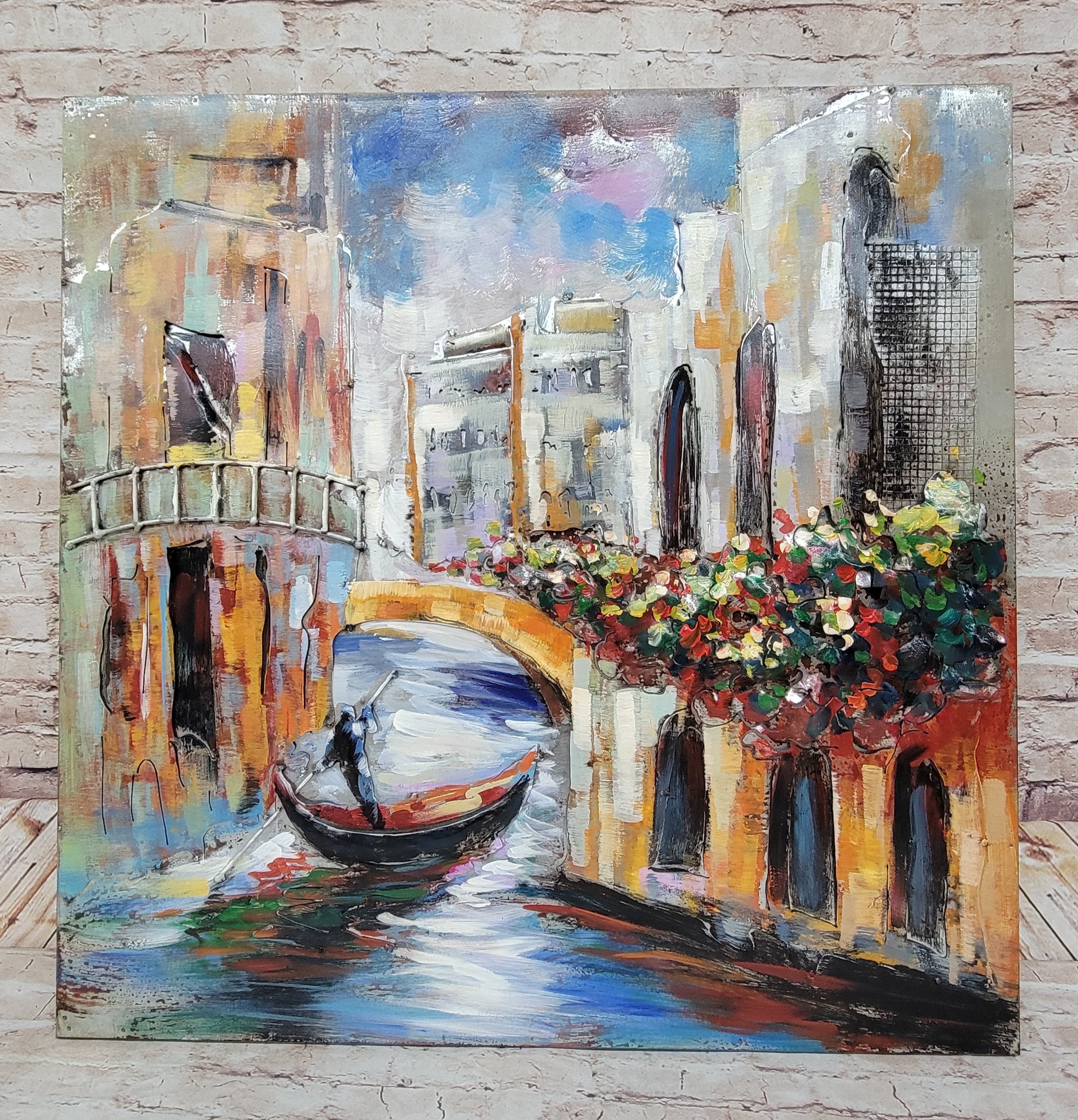 Bring the timeless romance of Italy into your home with this original Venice oil painting, a stunning piece of Venetian art created by hand on a metal canvas. This artwork captures the charm of Venice’s canals, historic architecture, and dreamy atmosphere with rich oil textures and vibrant colors.