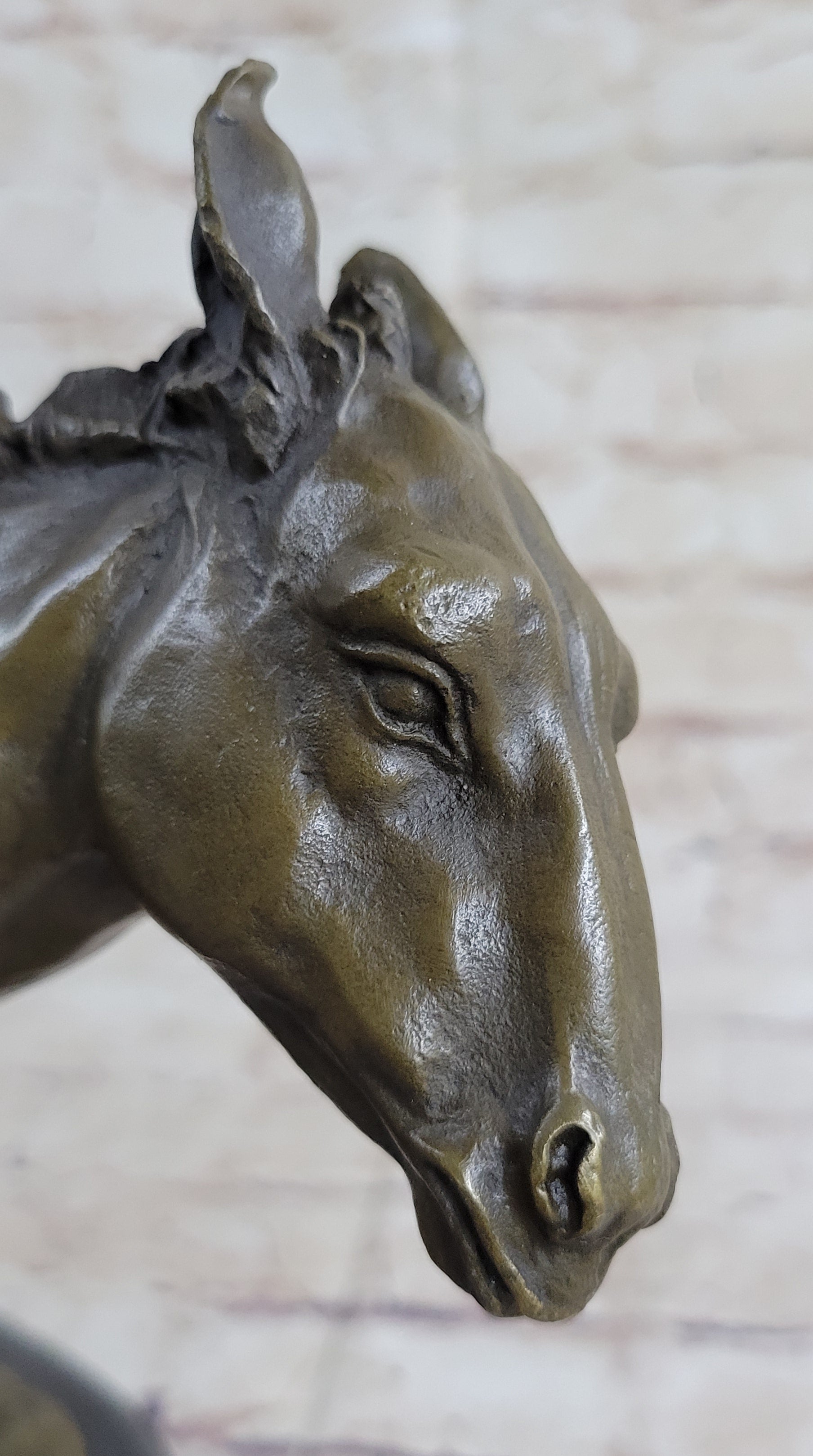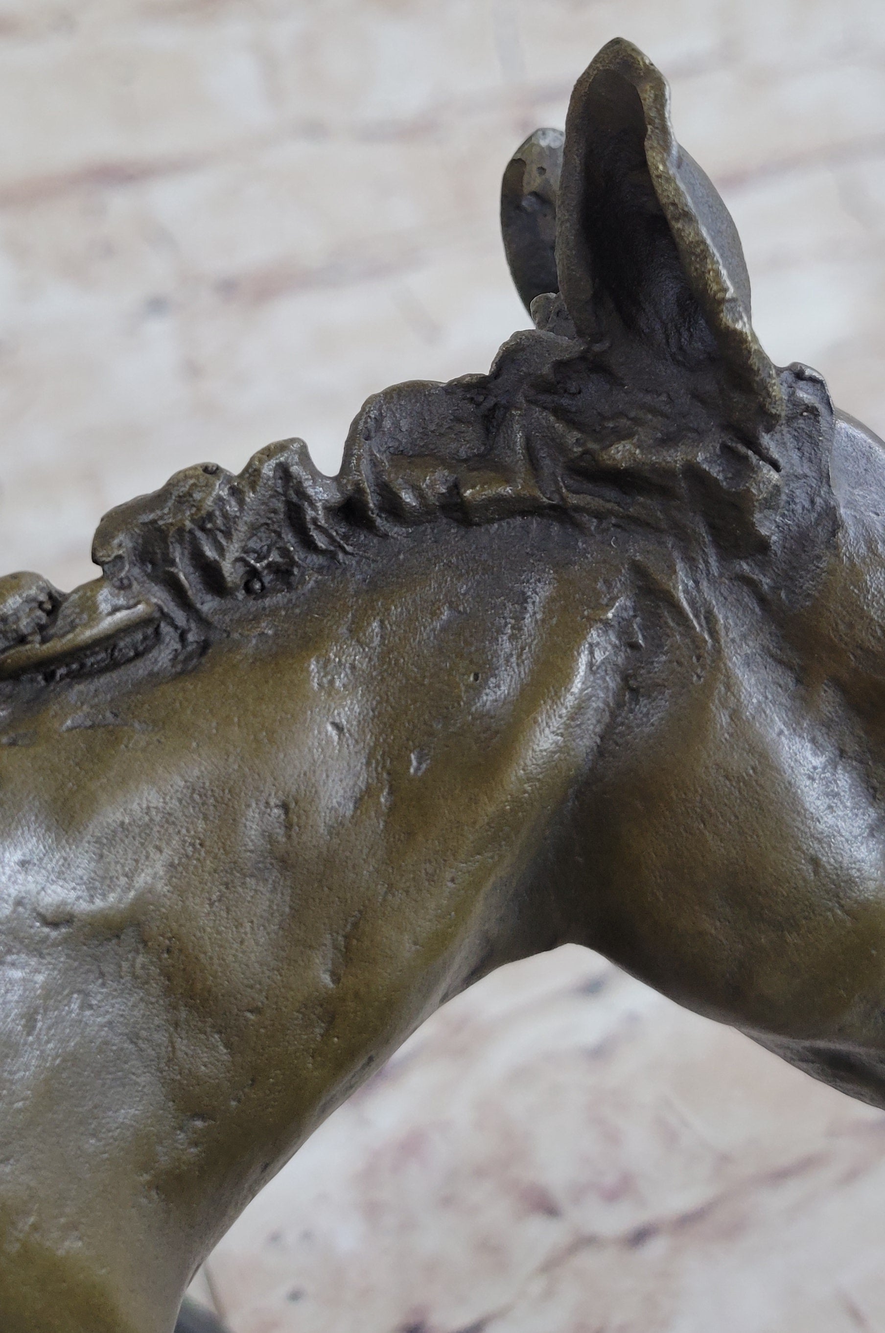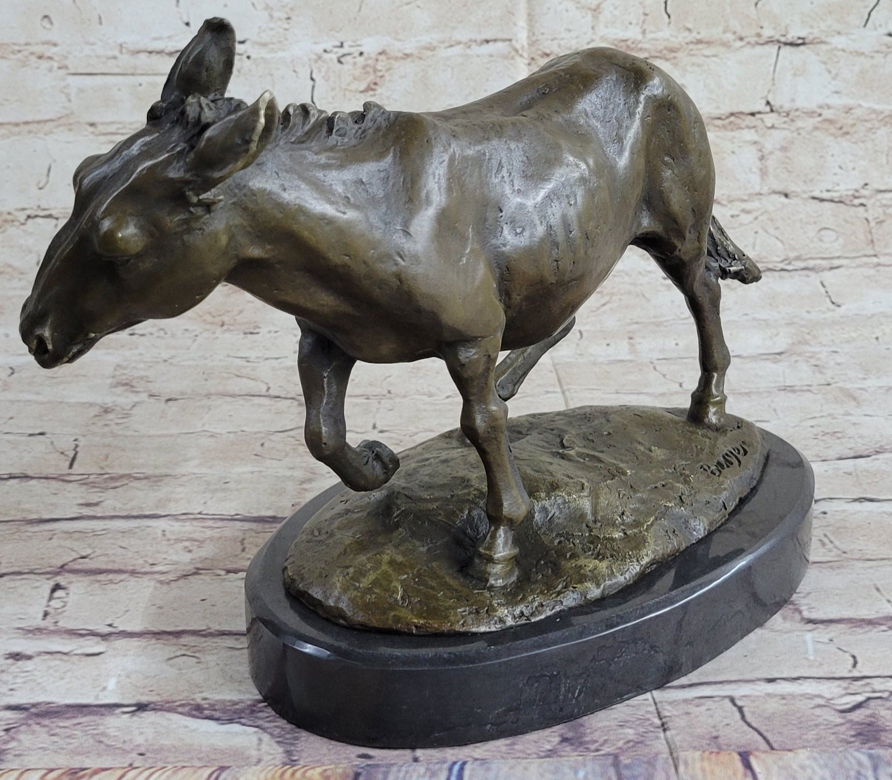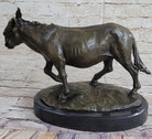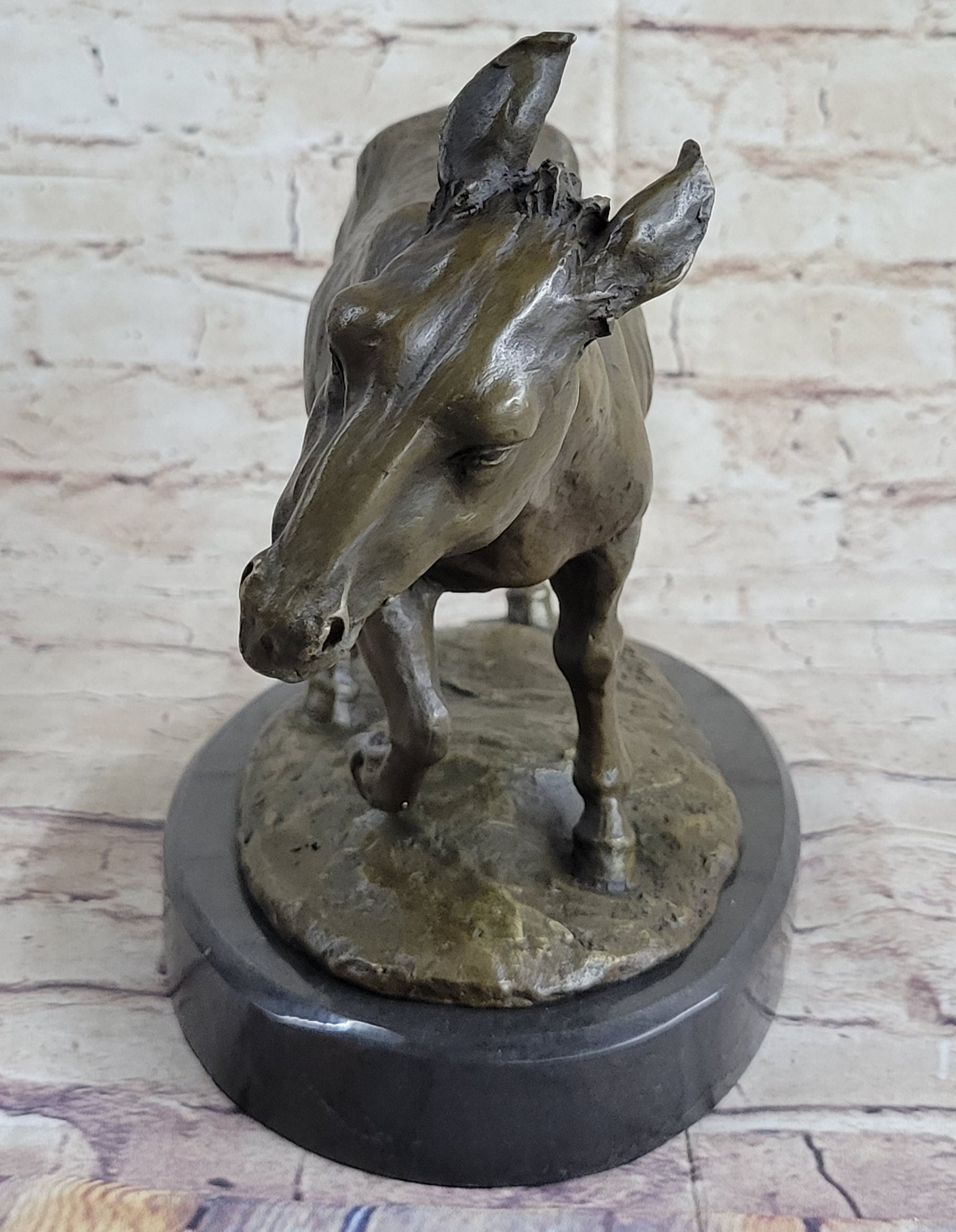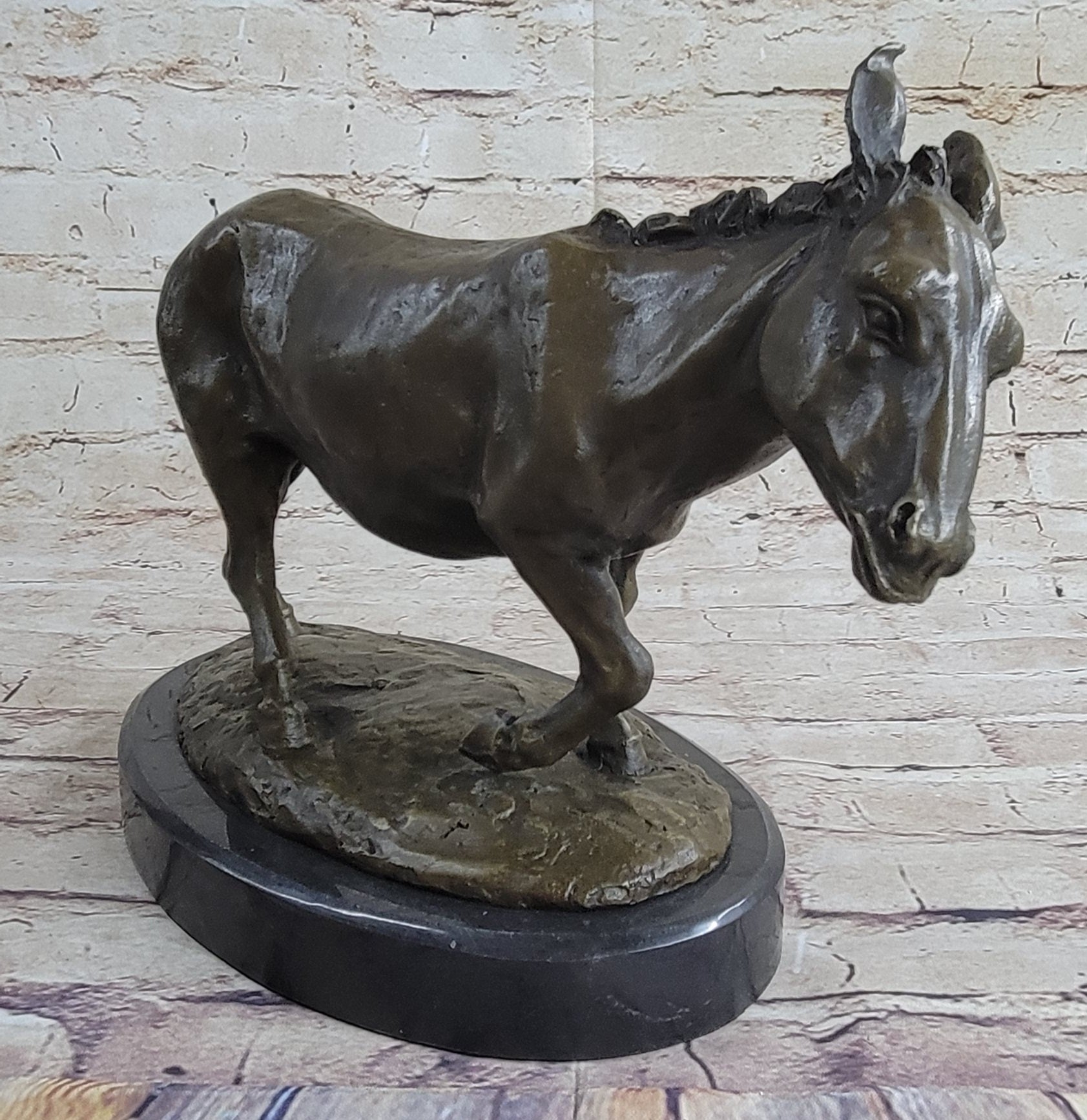 Invest in this exquisite donkey sculpture to bring a touch of elegance and natural charm to your space. Its presence will create a sense of tranquility and serenity, reminding us of the simple joys and freedom found in nature. Let this stunning bronze artwork become a conversation starter and a cherished piece of art in your collection.Bronze Dimensions with Marble Base: Height 8" X Width 12"