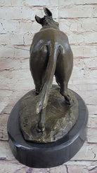 The donkey statue captures the essence of this humble creature in its natural state. With a graceful stride and attentive gaze, it captures the attention of the viewer. Unencumbered by any load, it moves freely and effortlessly. This bronze sculpture, meticulously crafted using the lost-wax casting method, showcases the artist's dedication to detail. The brown patina finish enhances its beauty and provides long-lasting preservation. Mounted on a black oval-shaped marble base, it stands as a testament to the skill and artistry of the renowned artist Gardet.