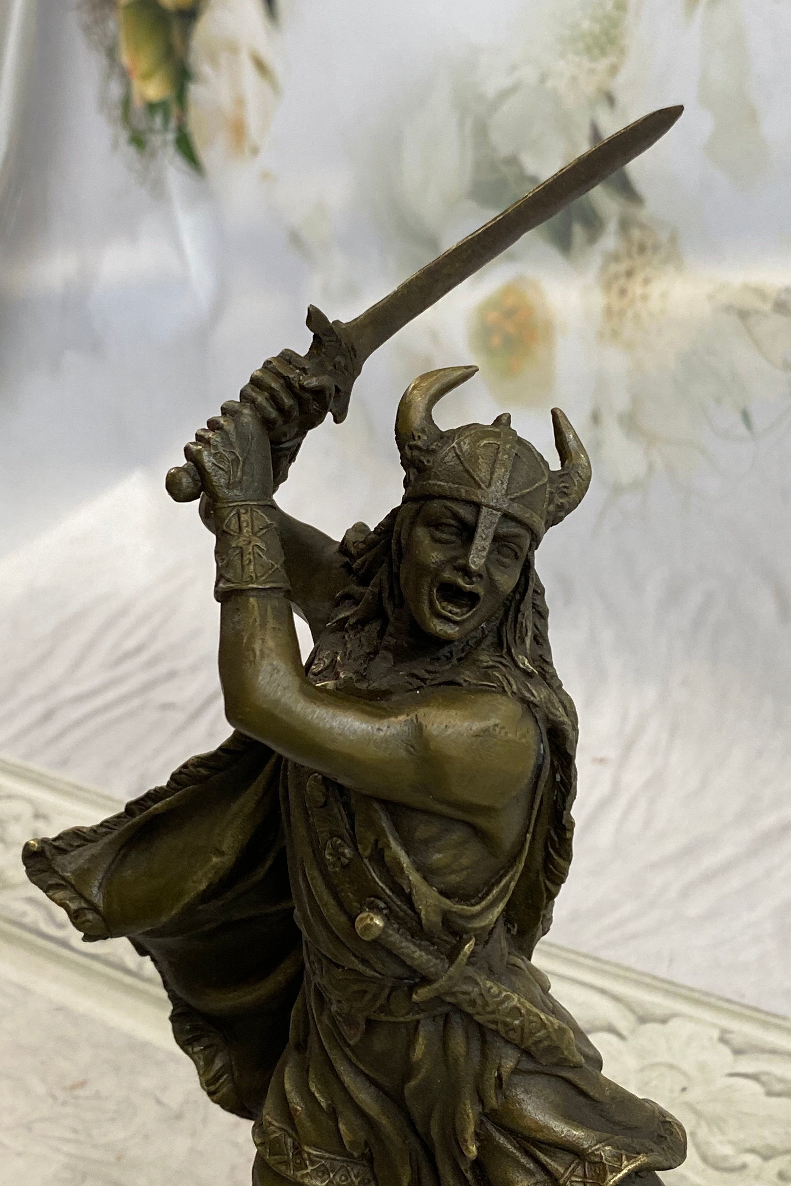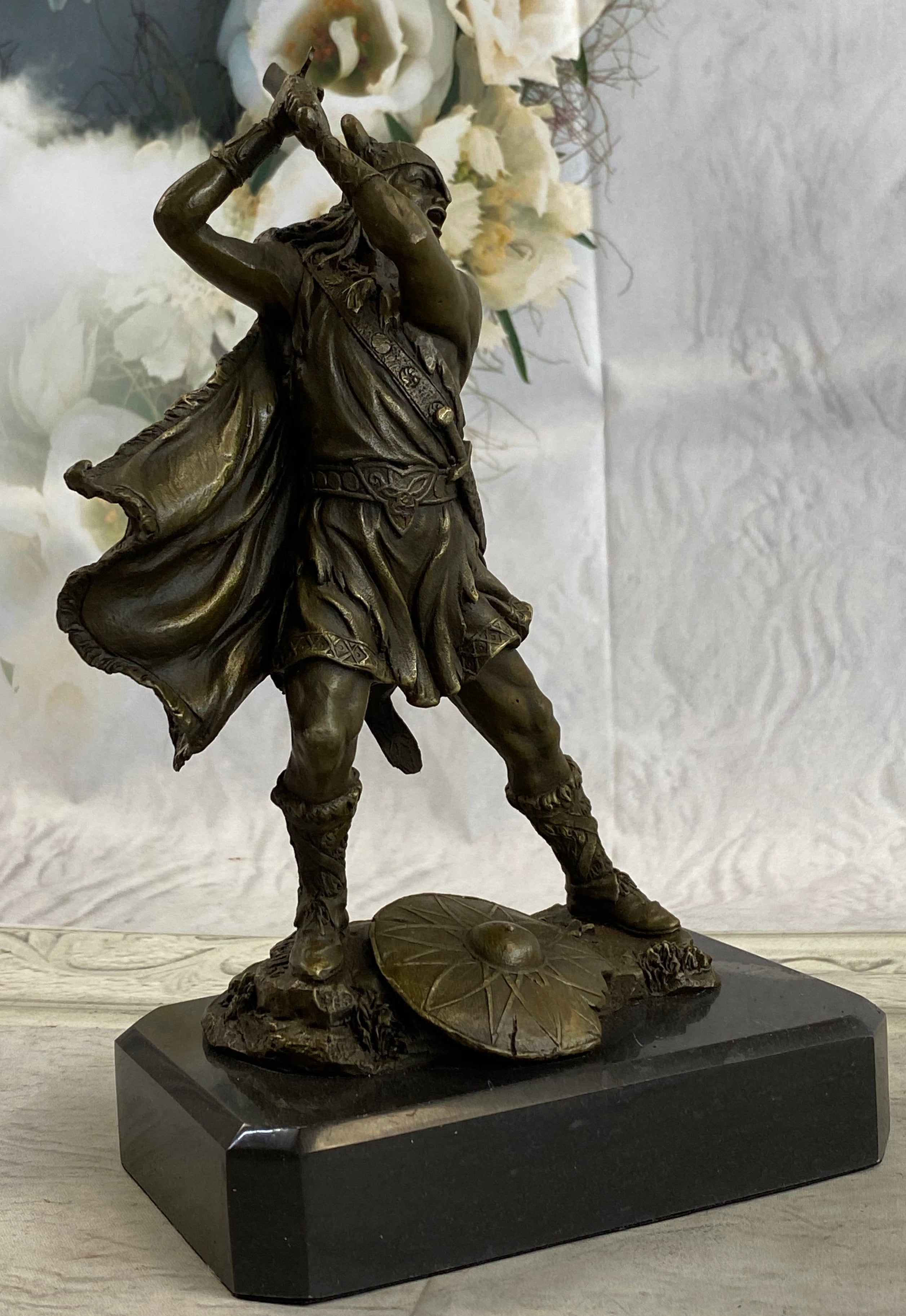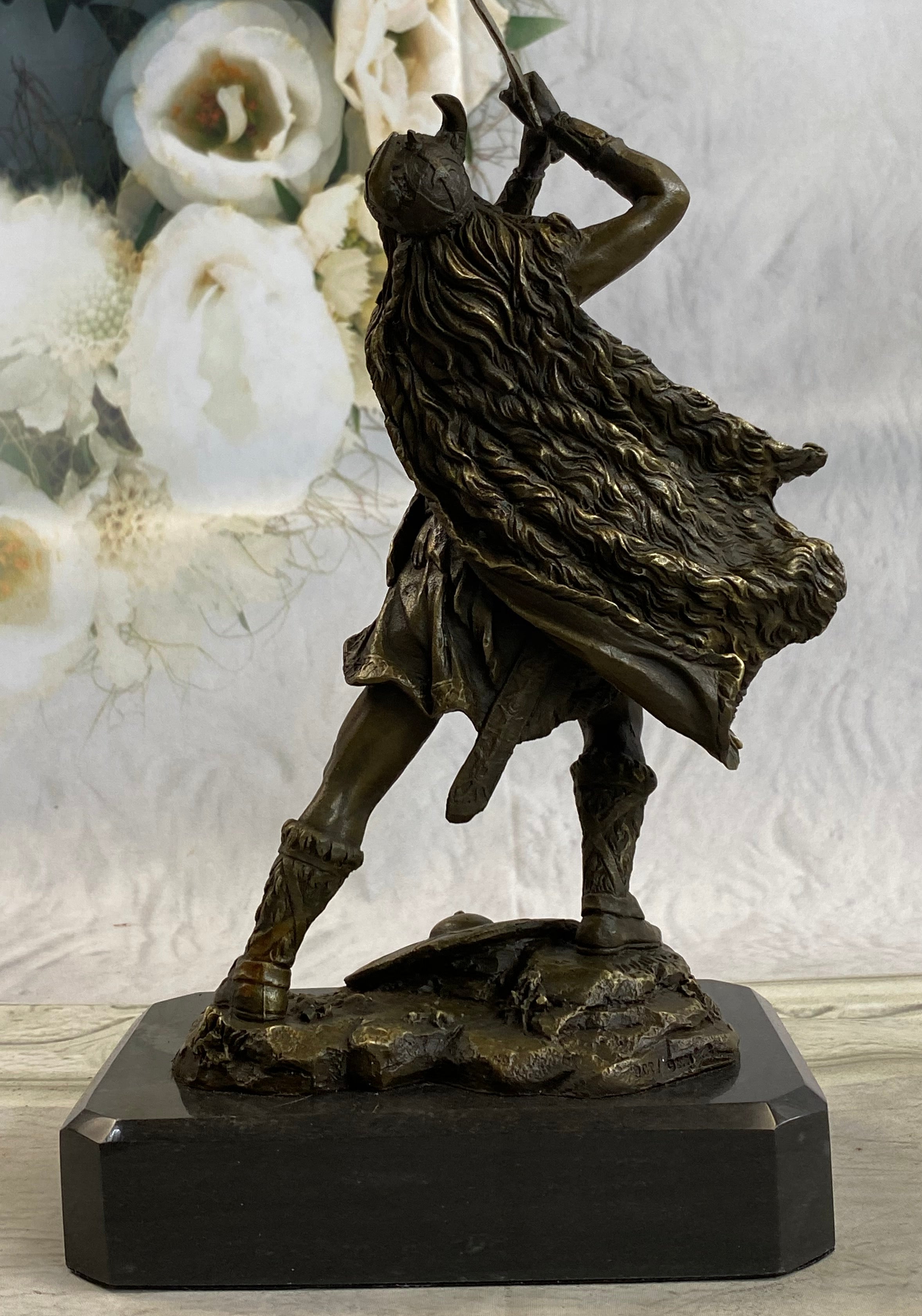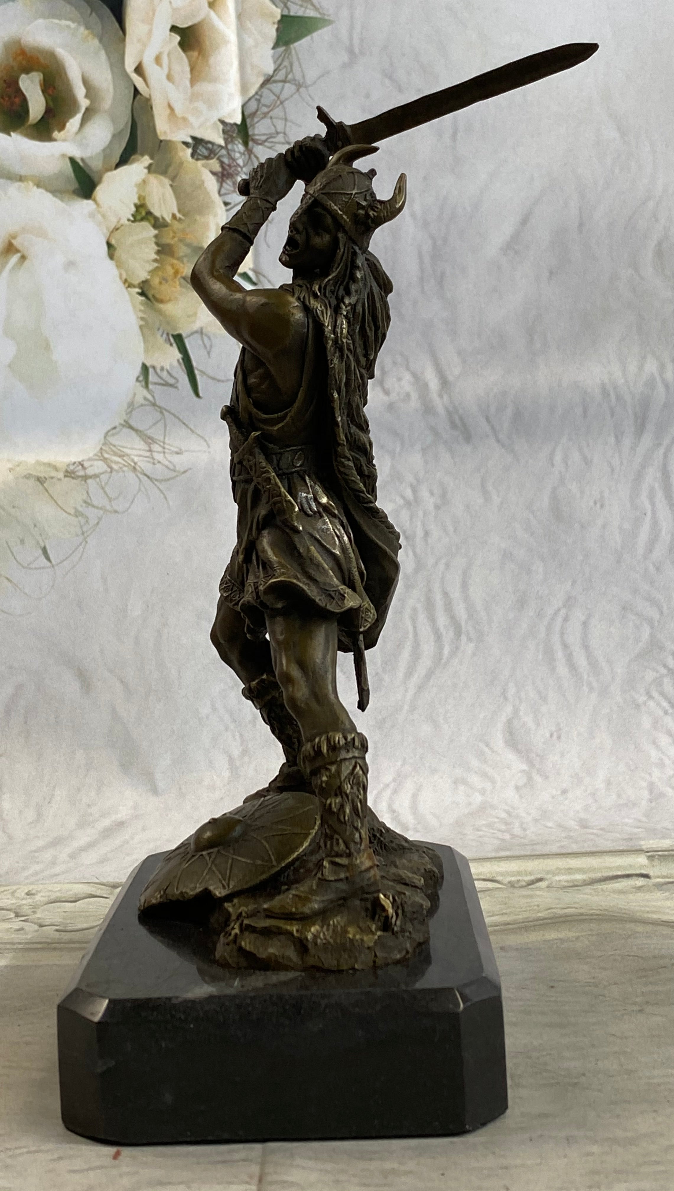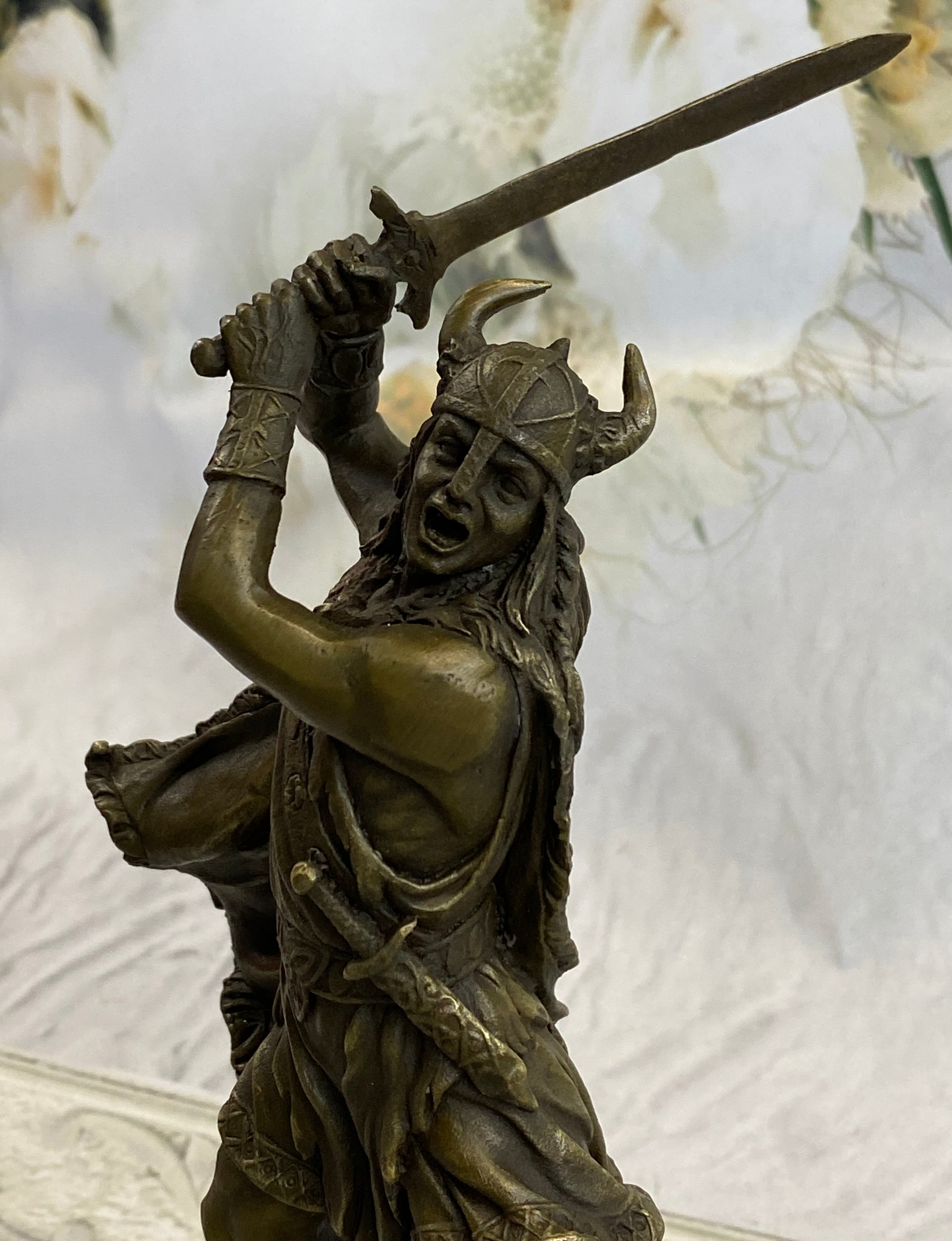 Elevate your space with this remarkable bronze sculpture, a testament to the ancient Viking warriors and their indomitable spirit. With its exquisite craftsmanship and timeless allure, this artwork is sure to captivate all who behold it.Bronze Dimensions with Marble Base: Height 10" X Width 7"