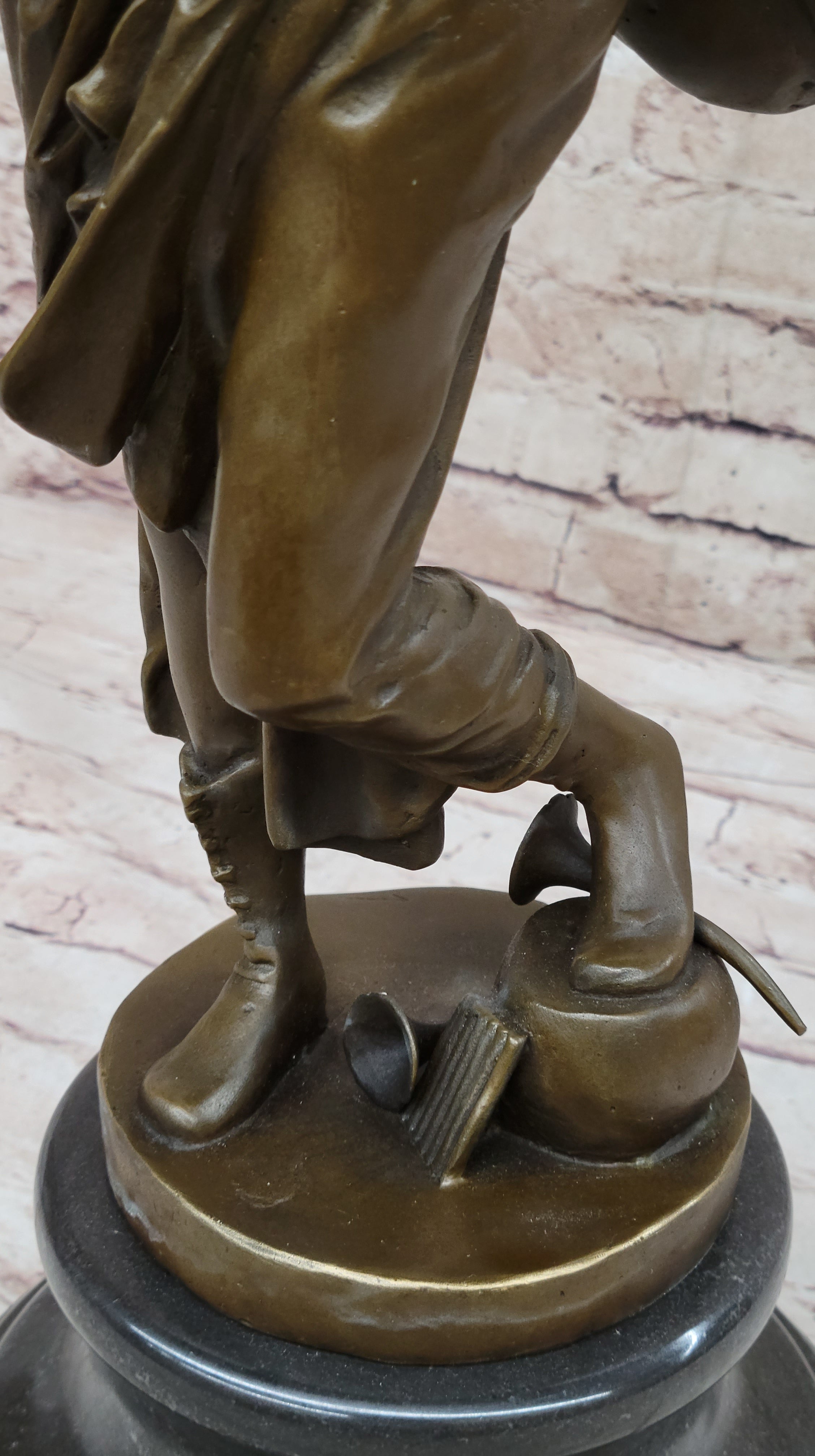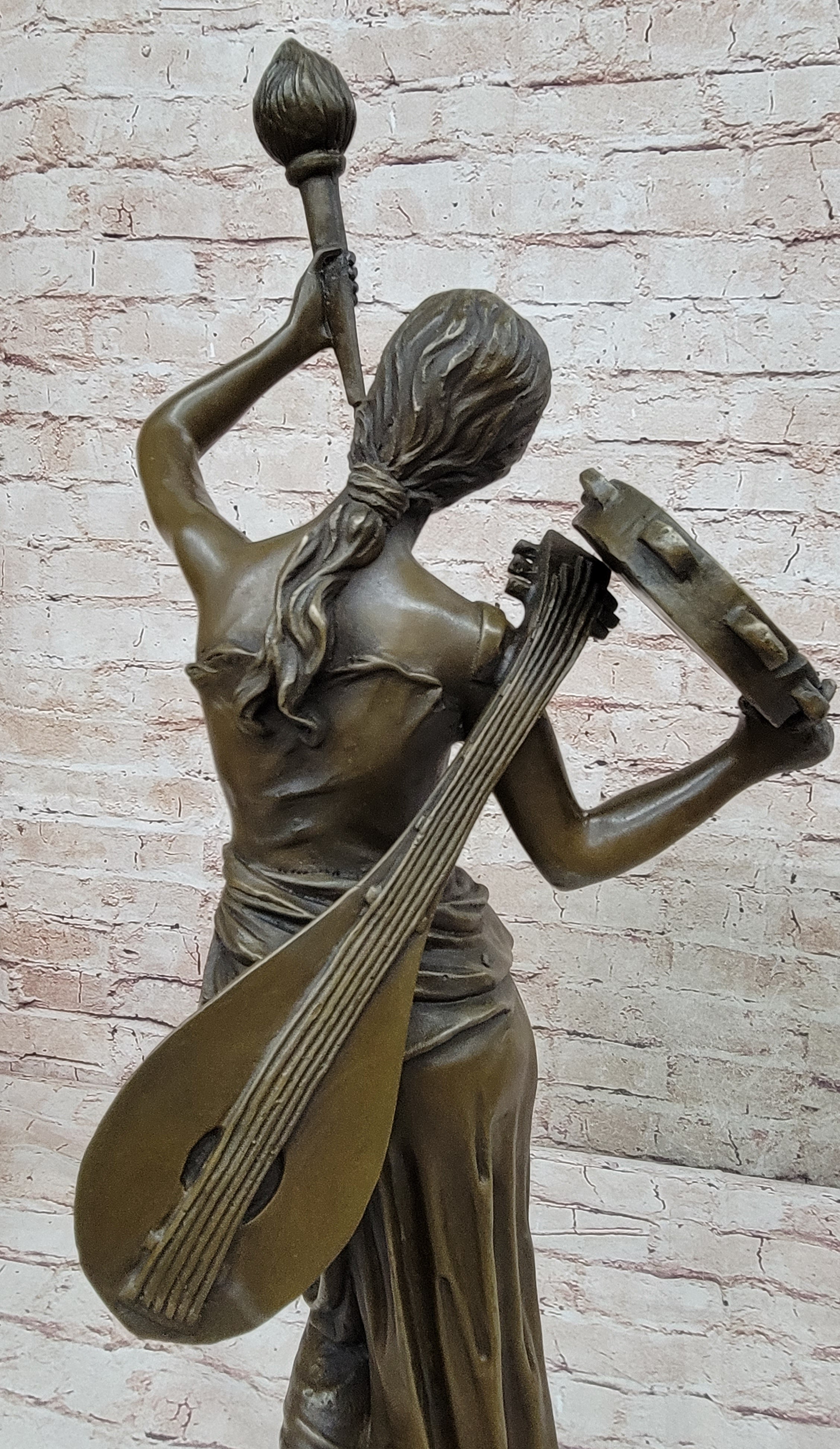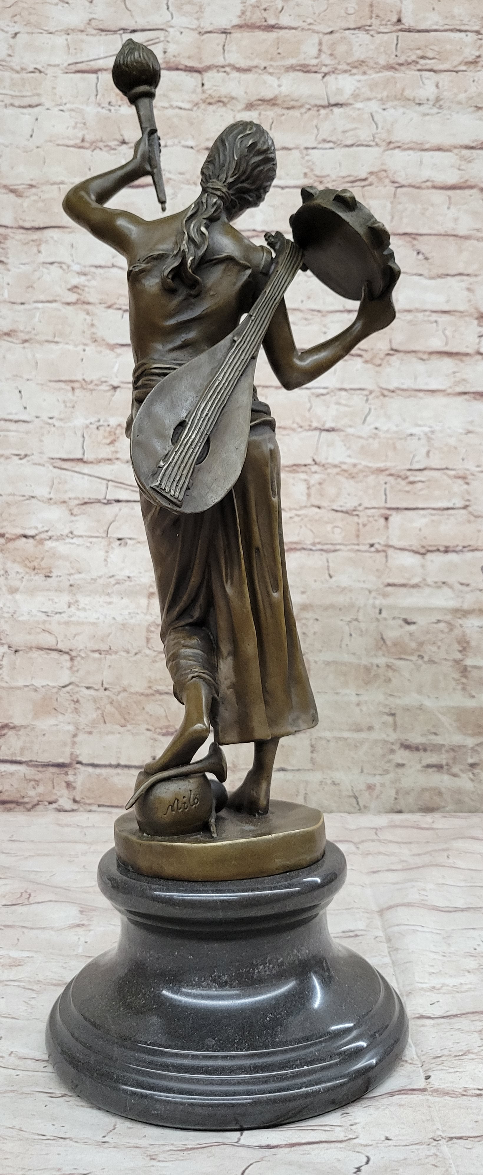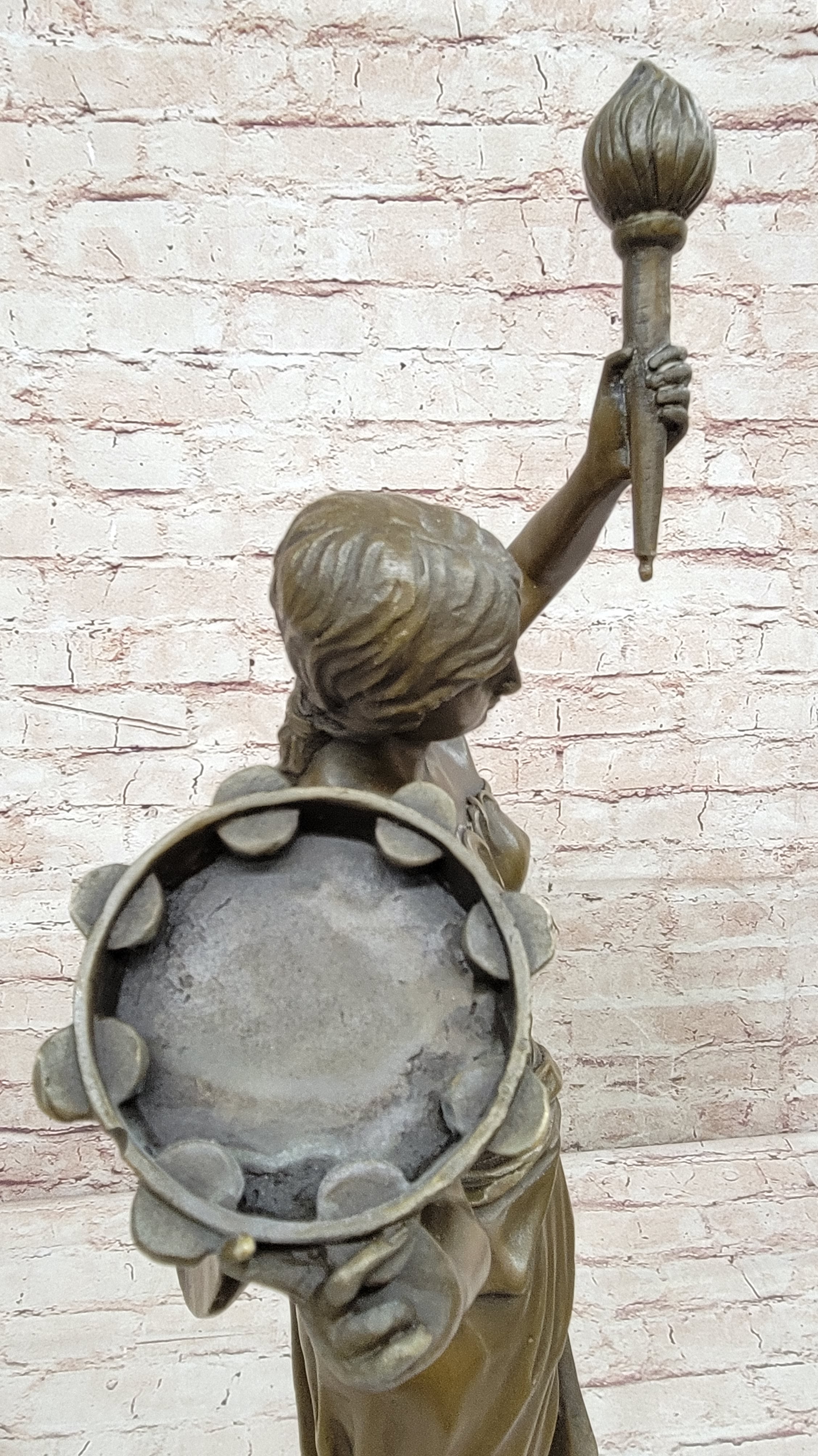 Vintage Bronze Brass Hot Cast Sculpture of a Young Girl Playing Tambourine by Milo