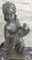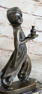Vintage Sign Arab Boy Server Bronze Sculpture Book-End Bookend Statue Figurine