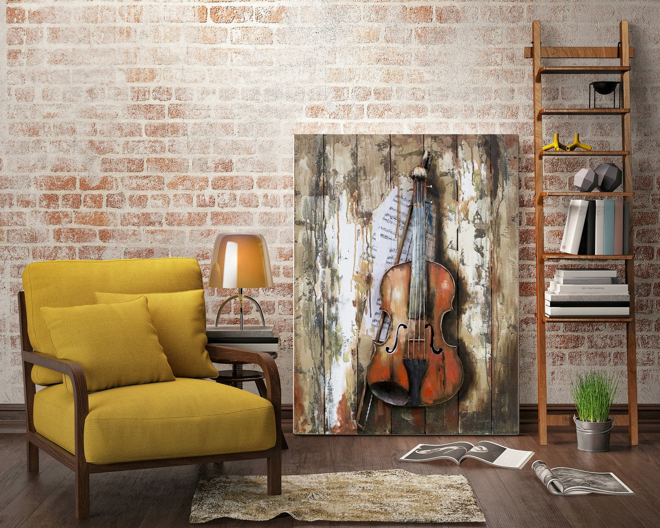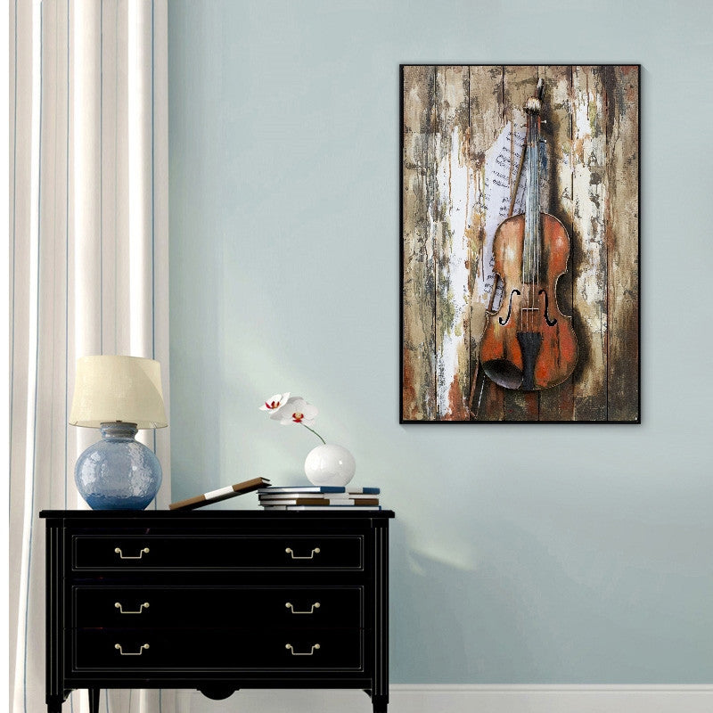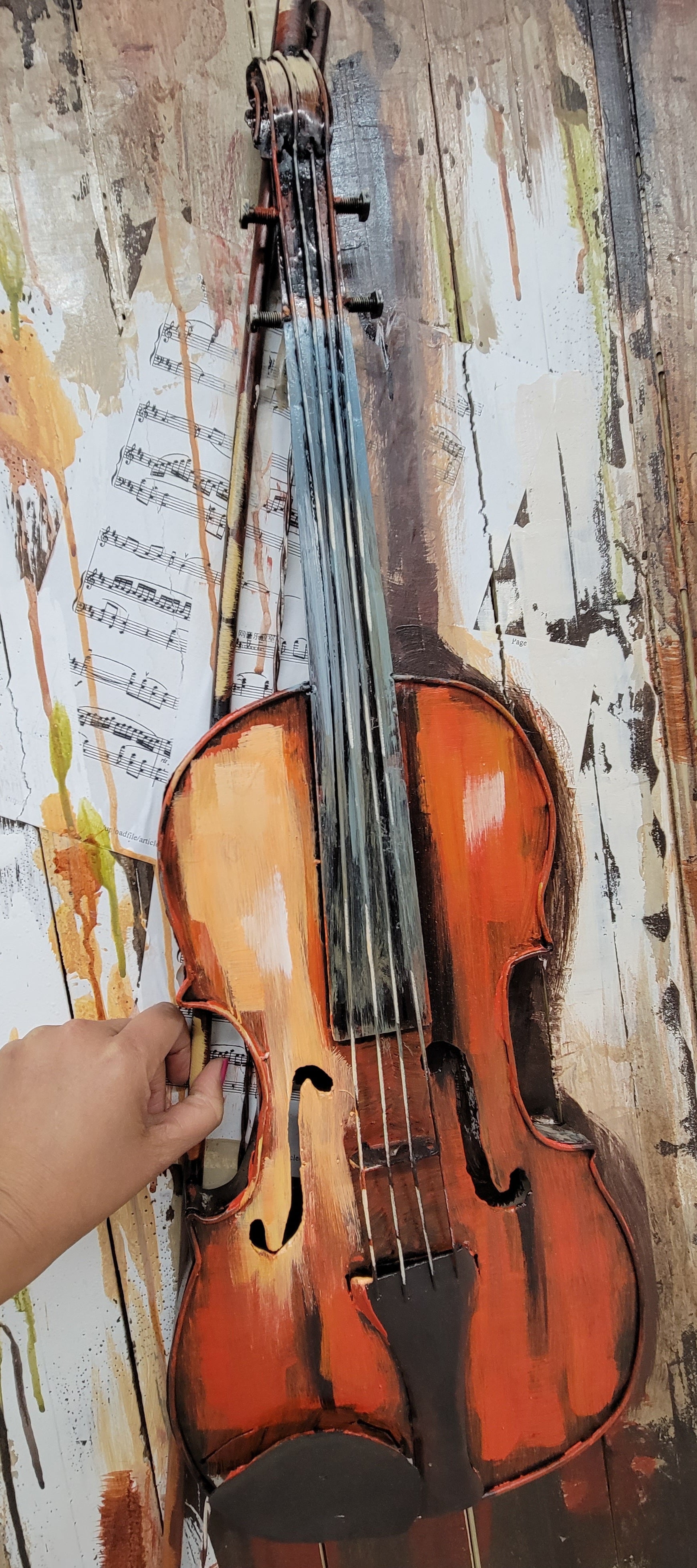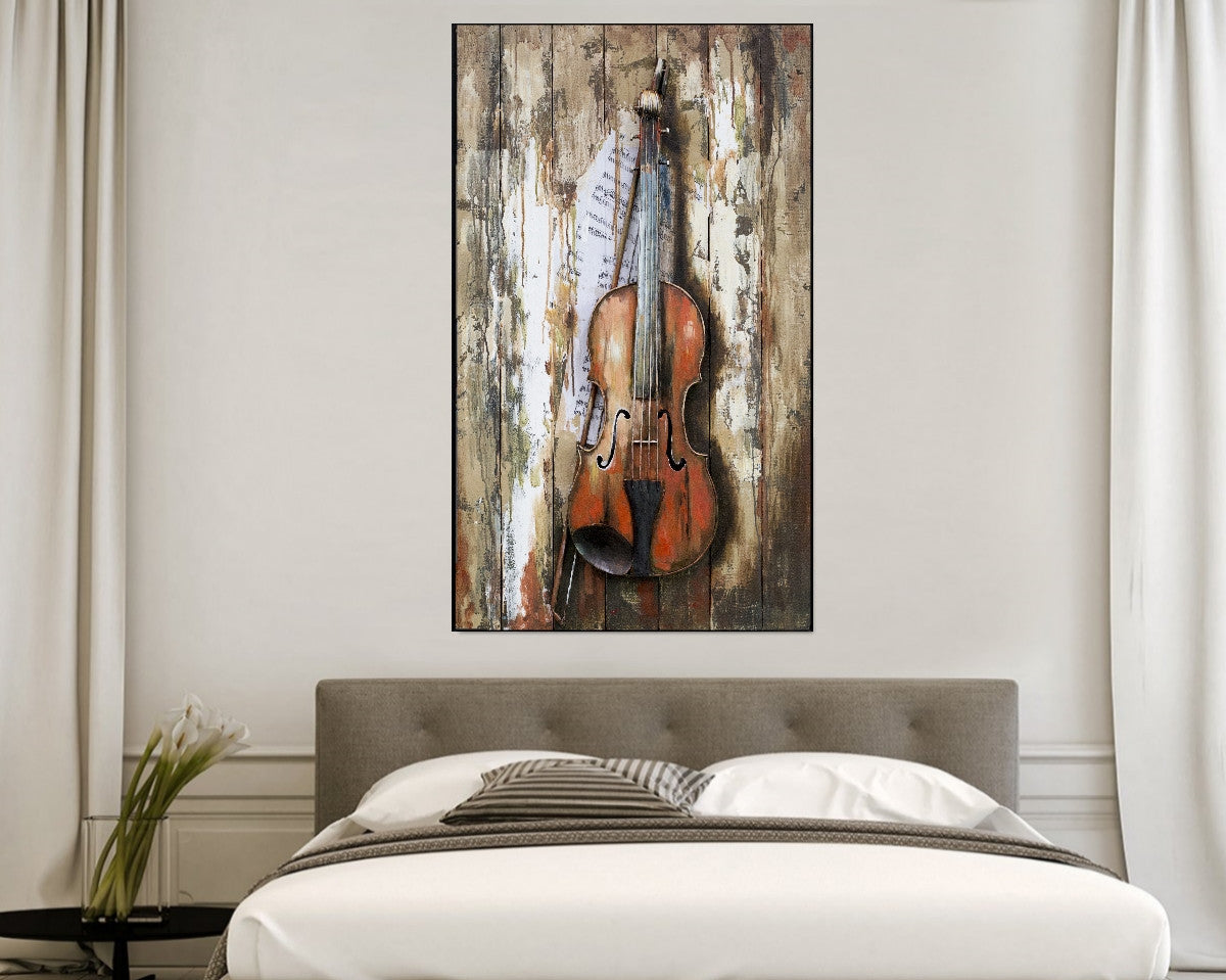 Violin Viola 3D Metal Cutout on Wood Canvas Painting Wall Art Hanging Decor