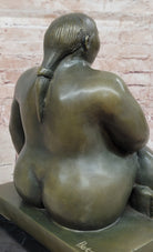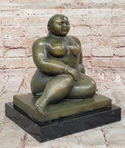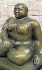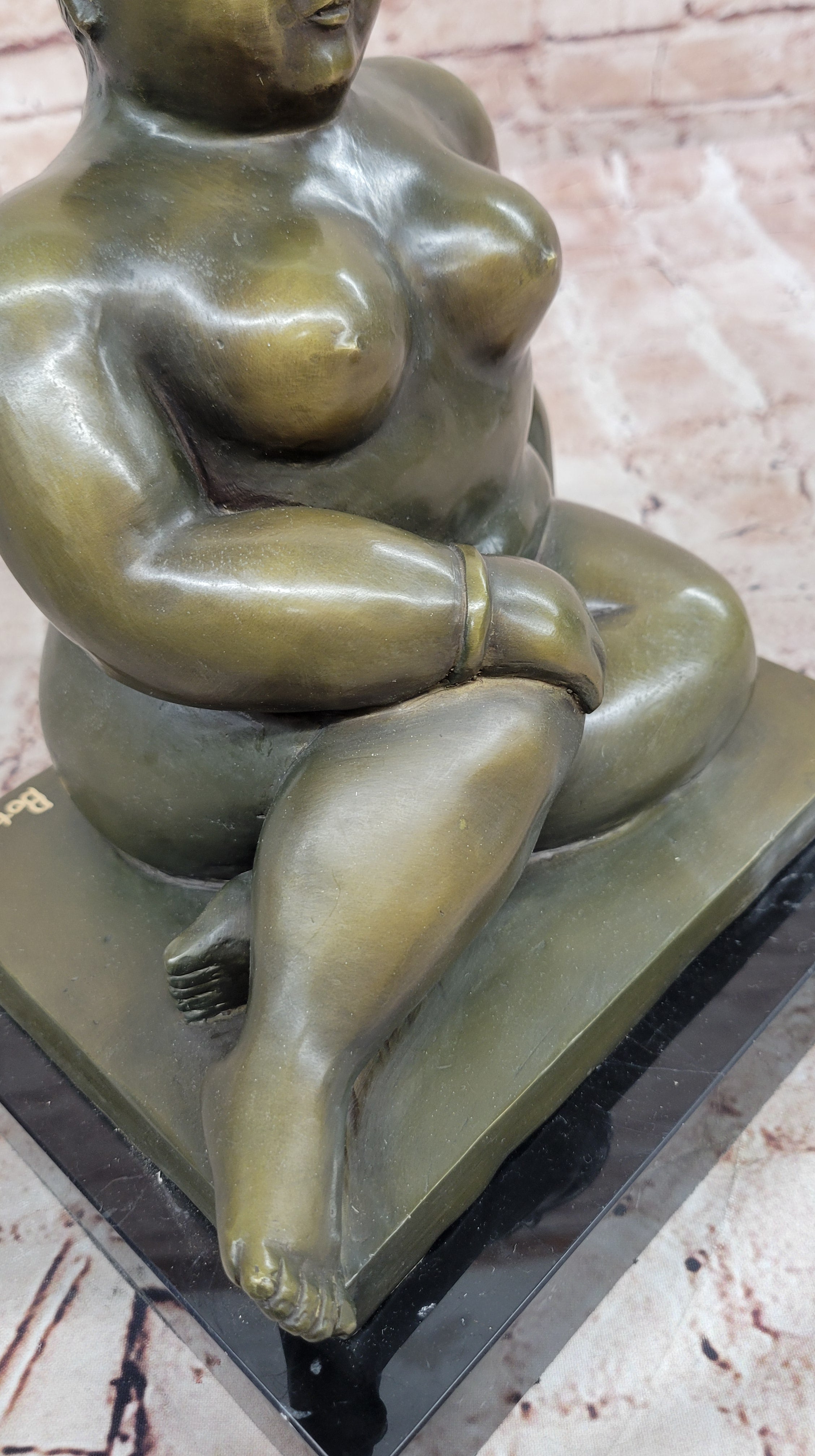 Voluptuous Seated Nude Bronze Sculpture – Botero Style Art
