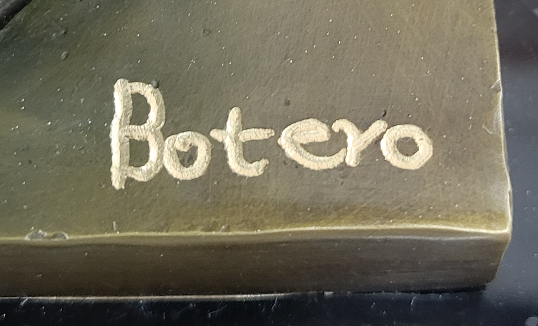 Whether you're a collector or simply a fan of Botero's joyful depictions of form, this sculpture makes a statement of style and artistic appreciation.Bronze Dimensions with Marble Base: Height 11" X Width 8.5"