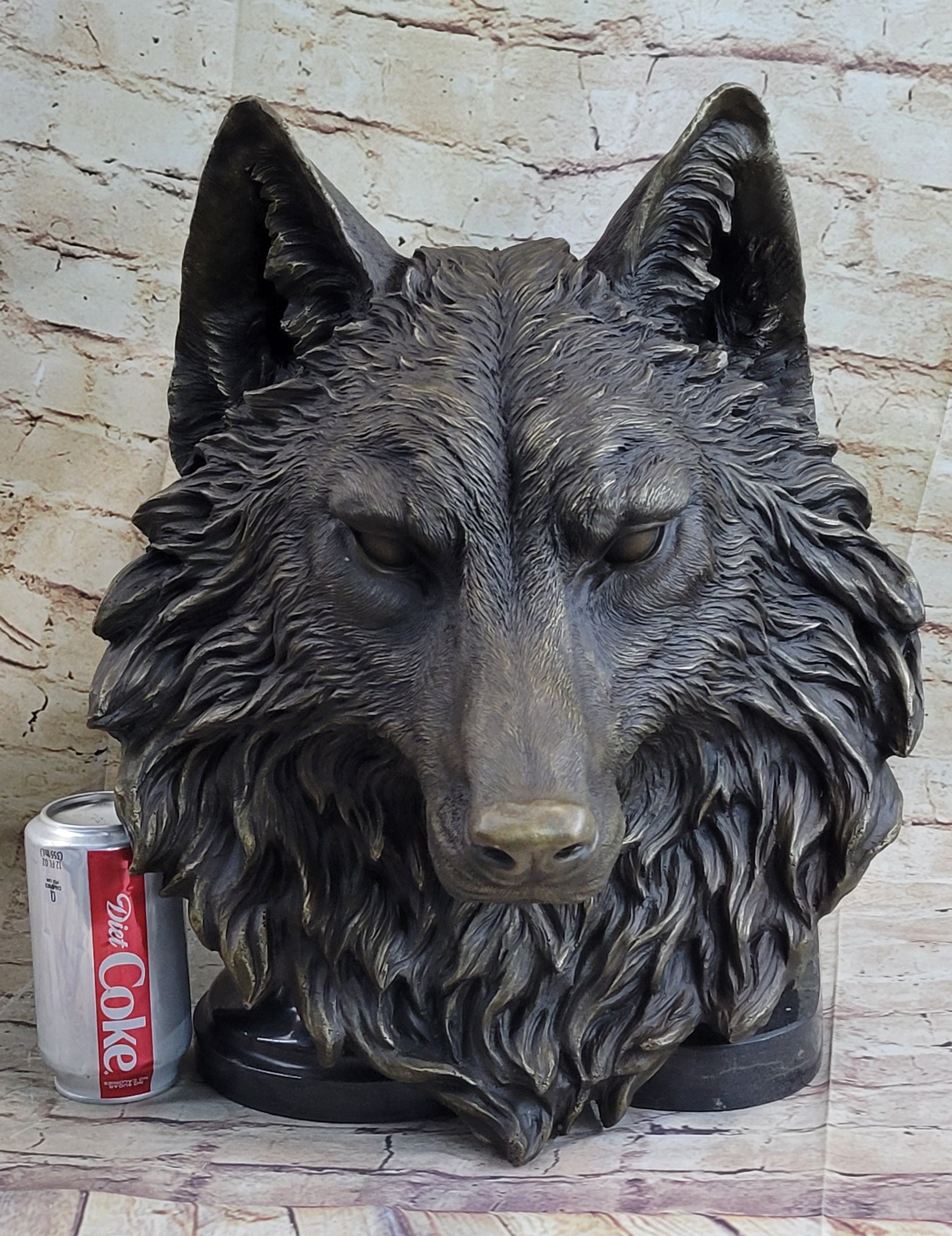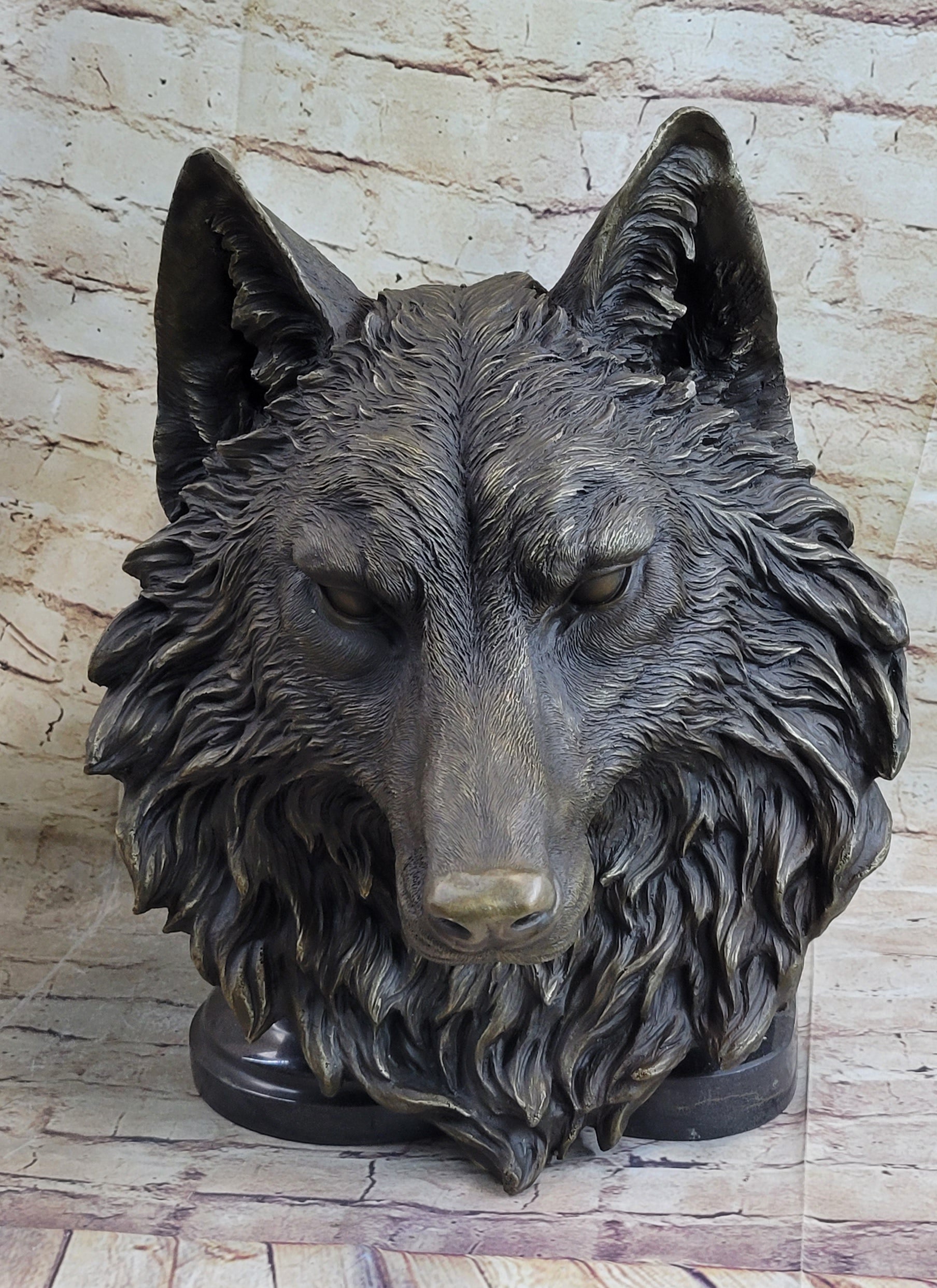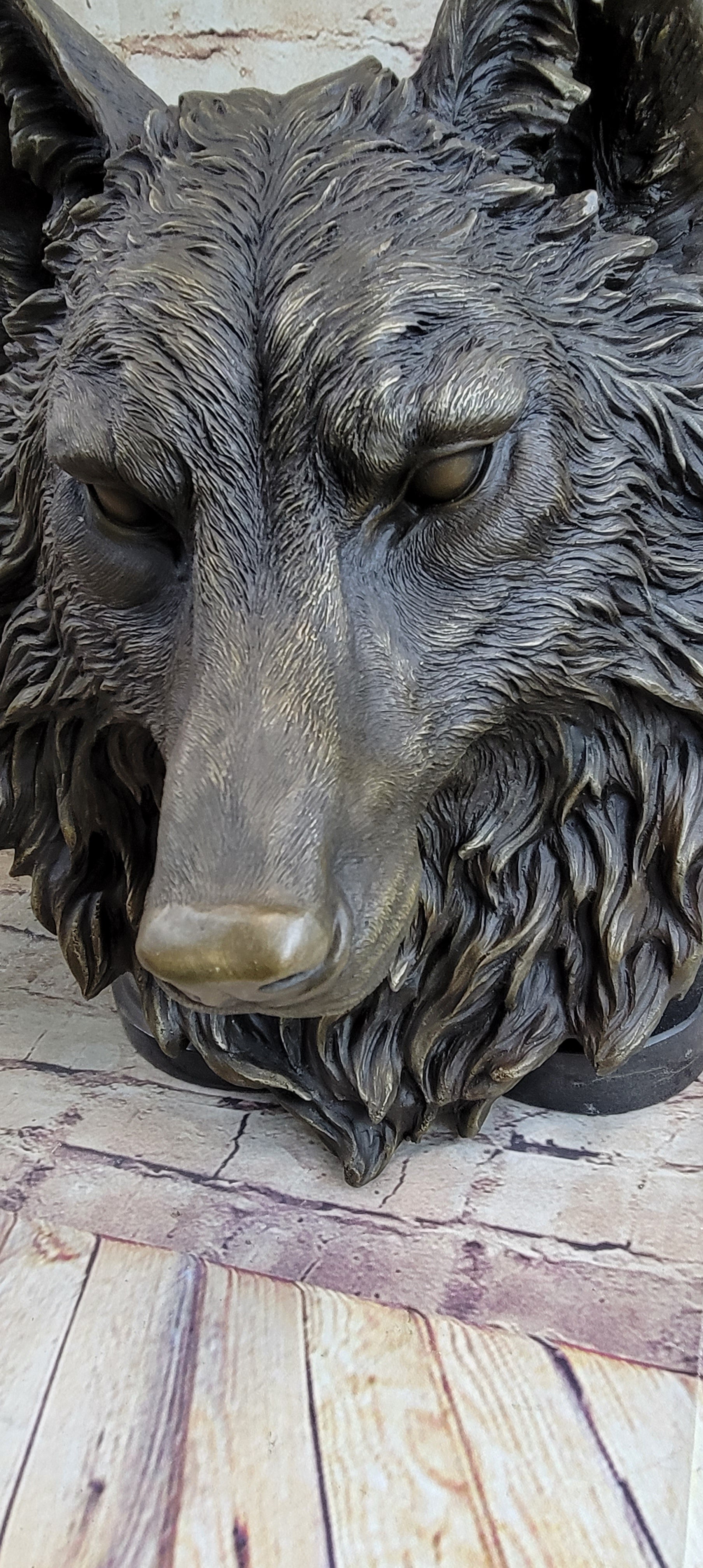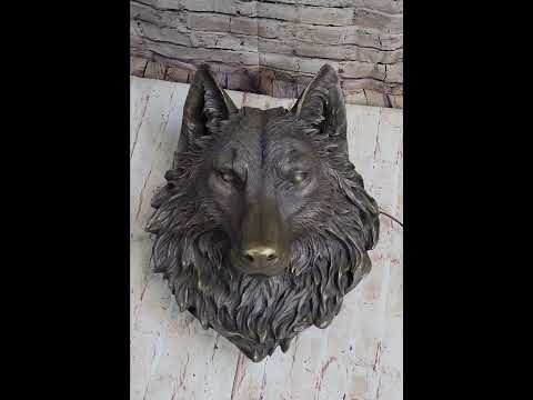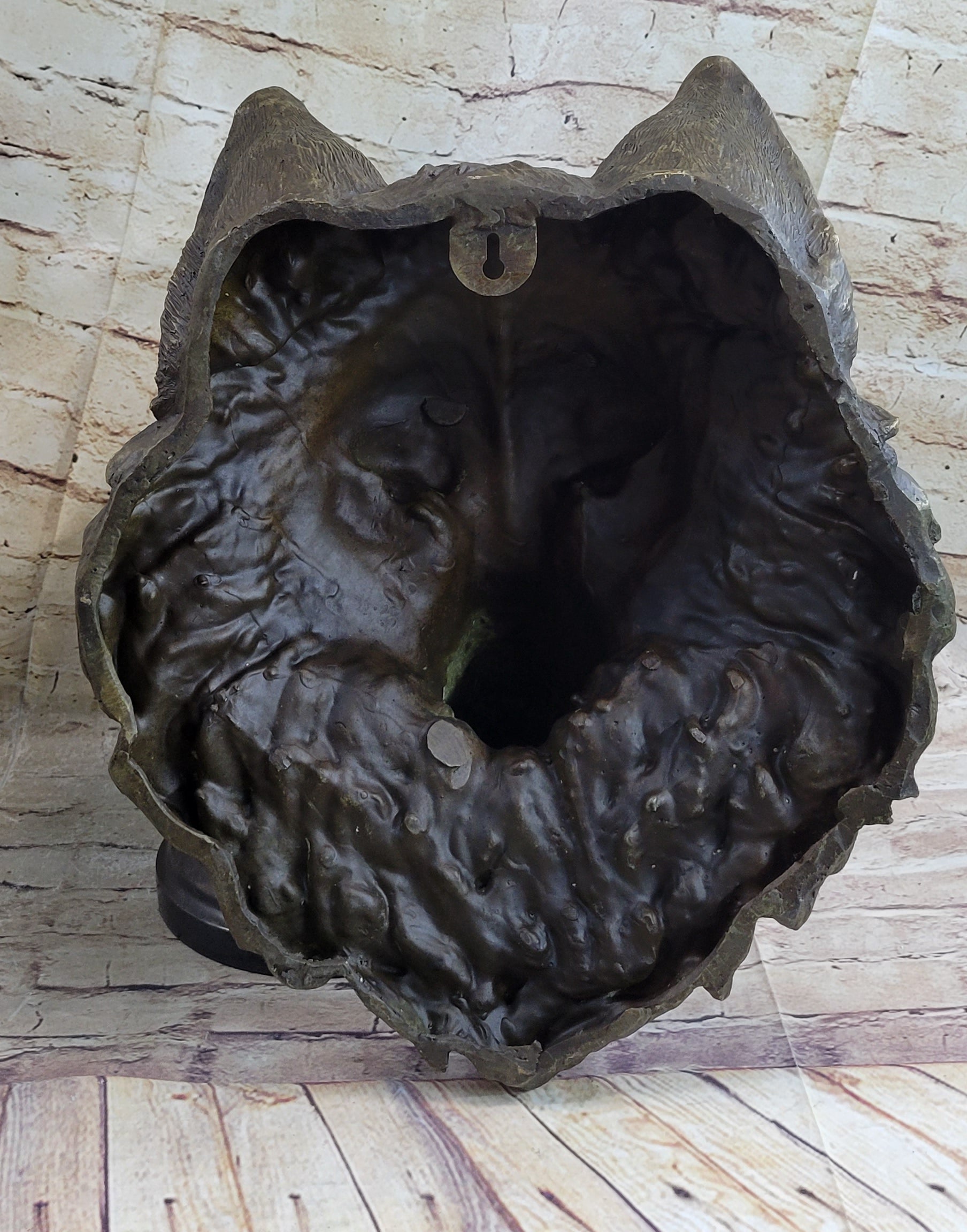Wall Mounted Hanging Wolf Head Bust Bronze Sculpture Decor Signed Original Art