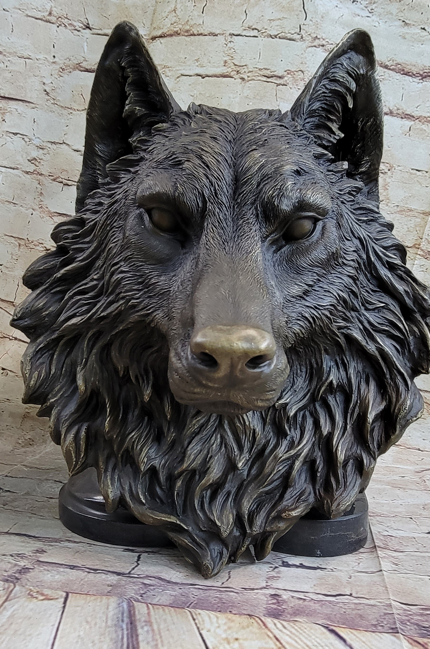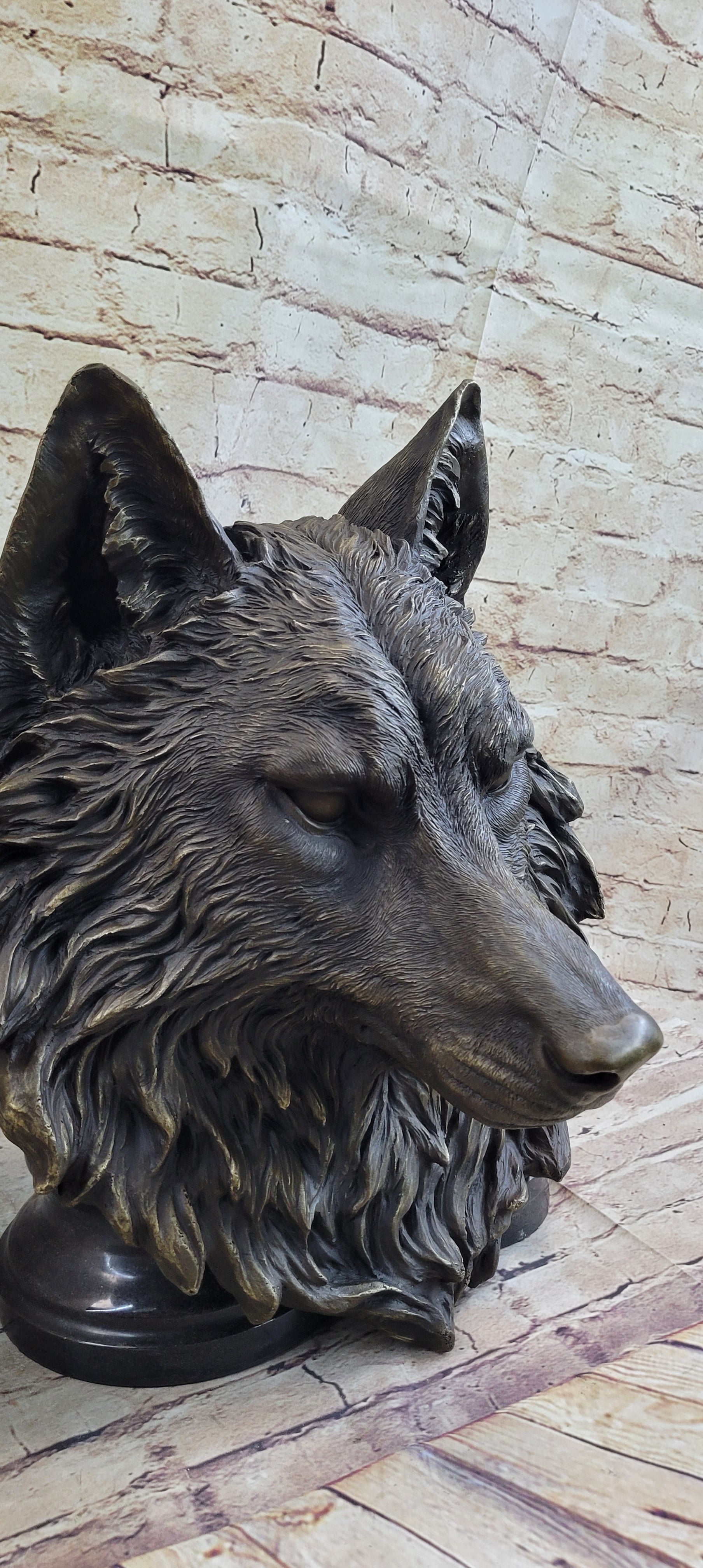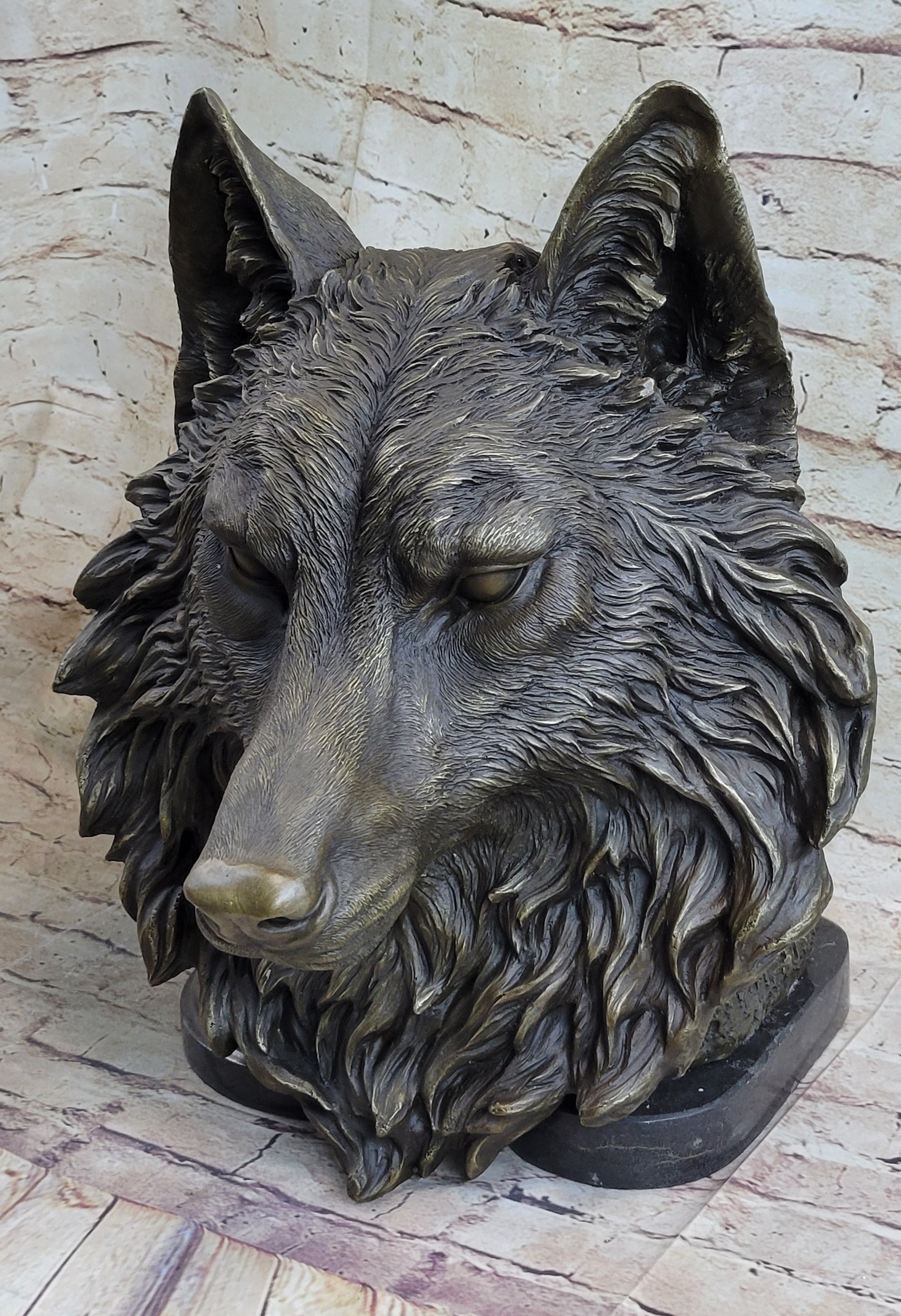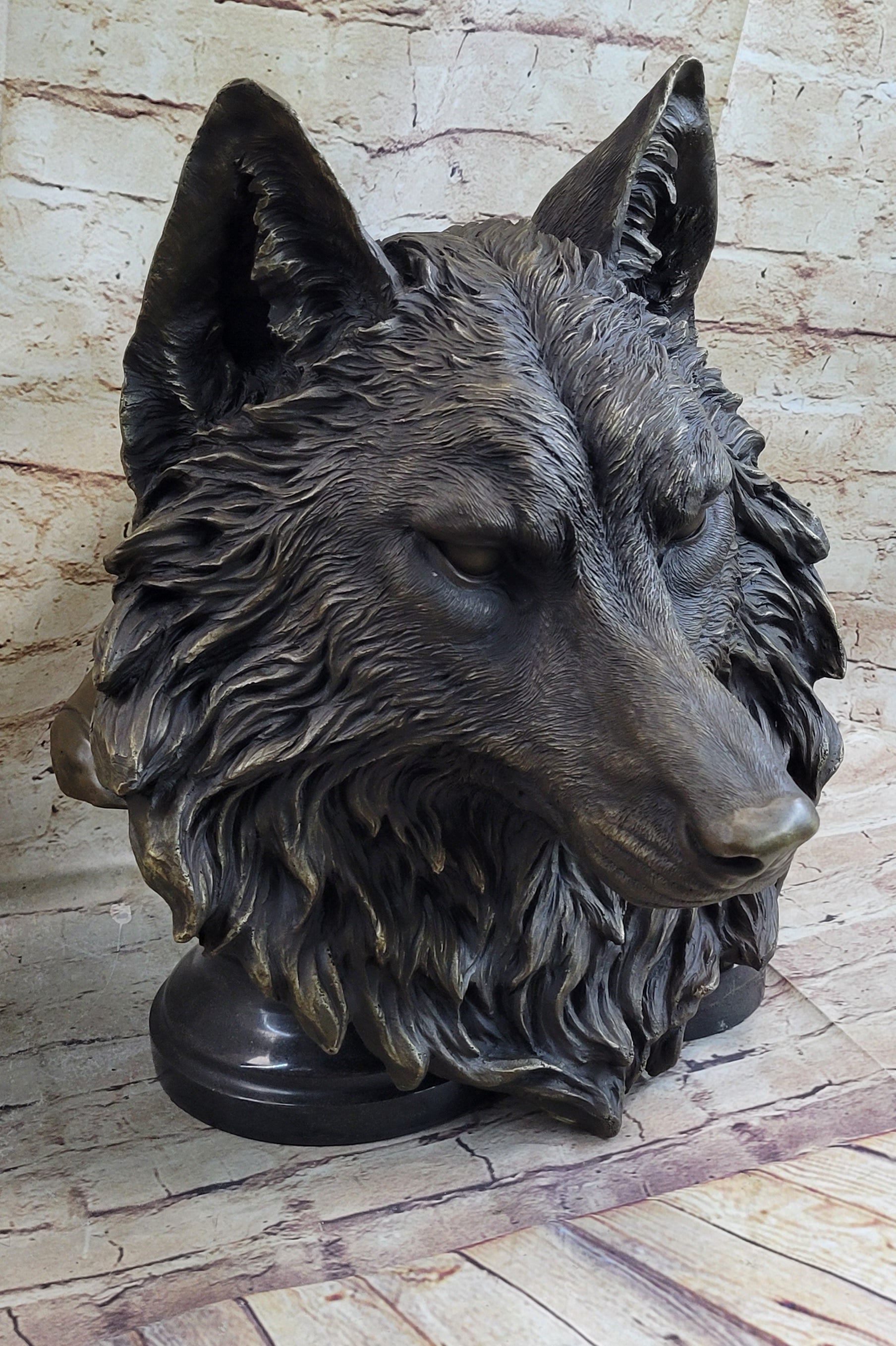 Wall Mounted Hanging Wolf Head Bust Bronze Sculpture Decor Signed Original Art