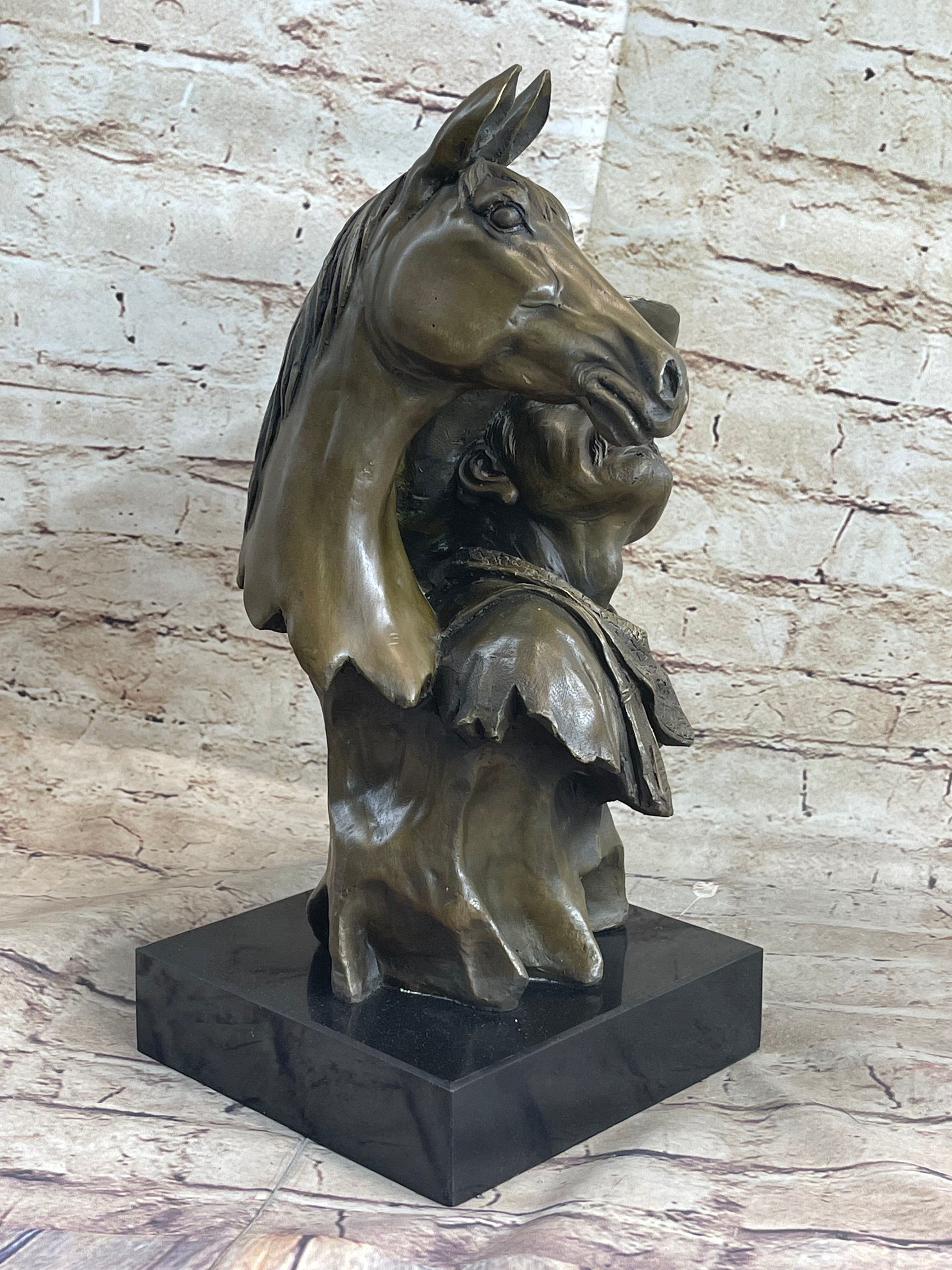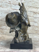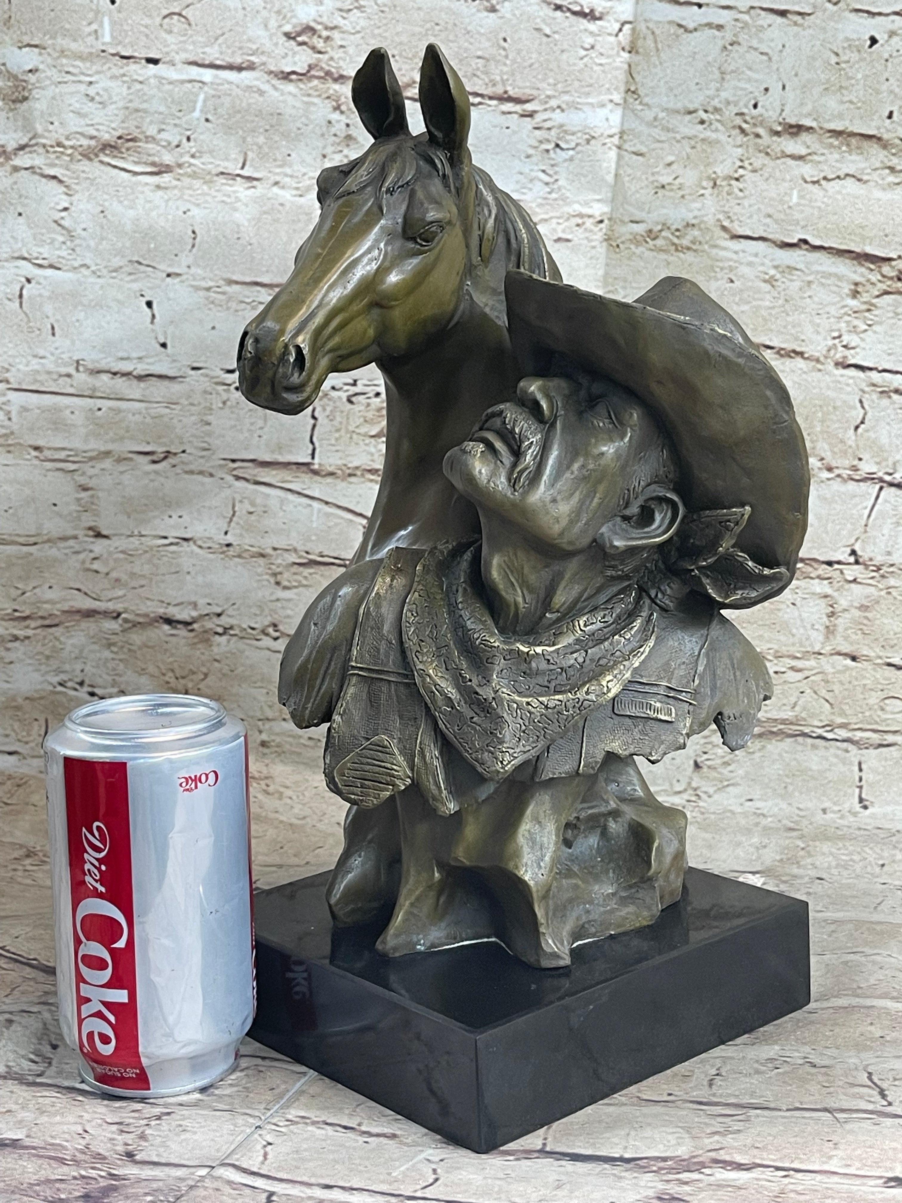 Western Art Old West Cowboy With Horse Bronze Bust Sculpture Marble Statue Decor