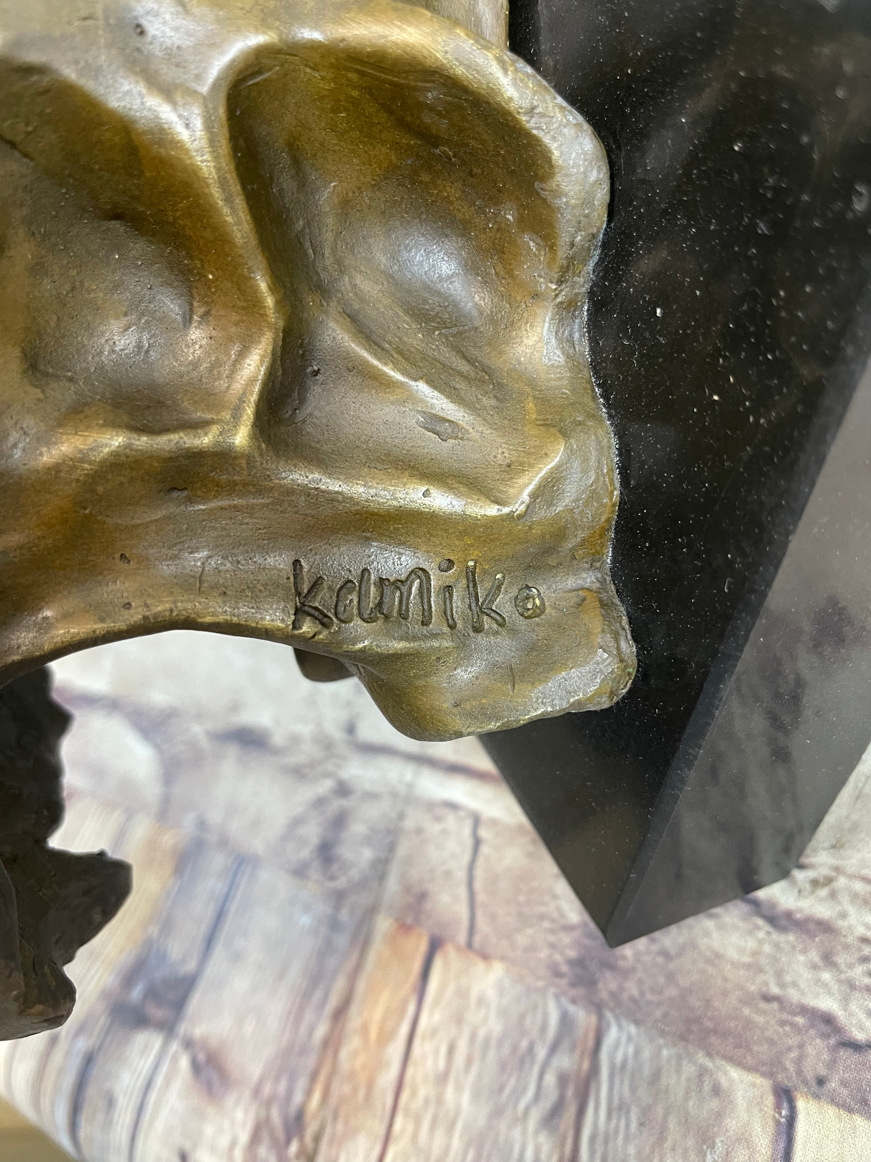 Gracing a solid black marble base, the sculpture stands as a testament to the artist's vision and skill. To authenticate its origin, the artwork bears the signature of the esteemed artist, Kamiko.