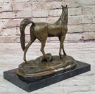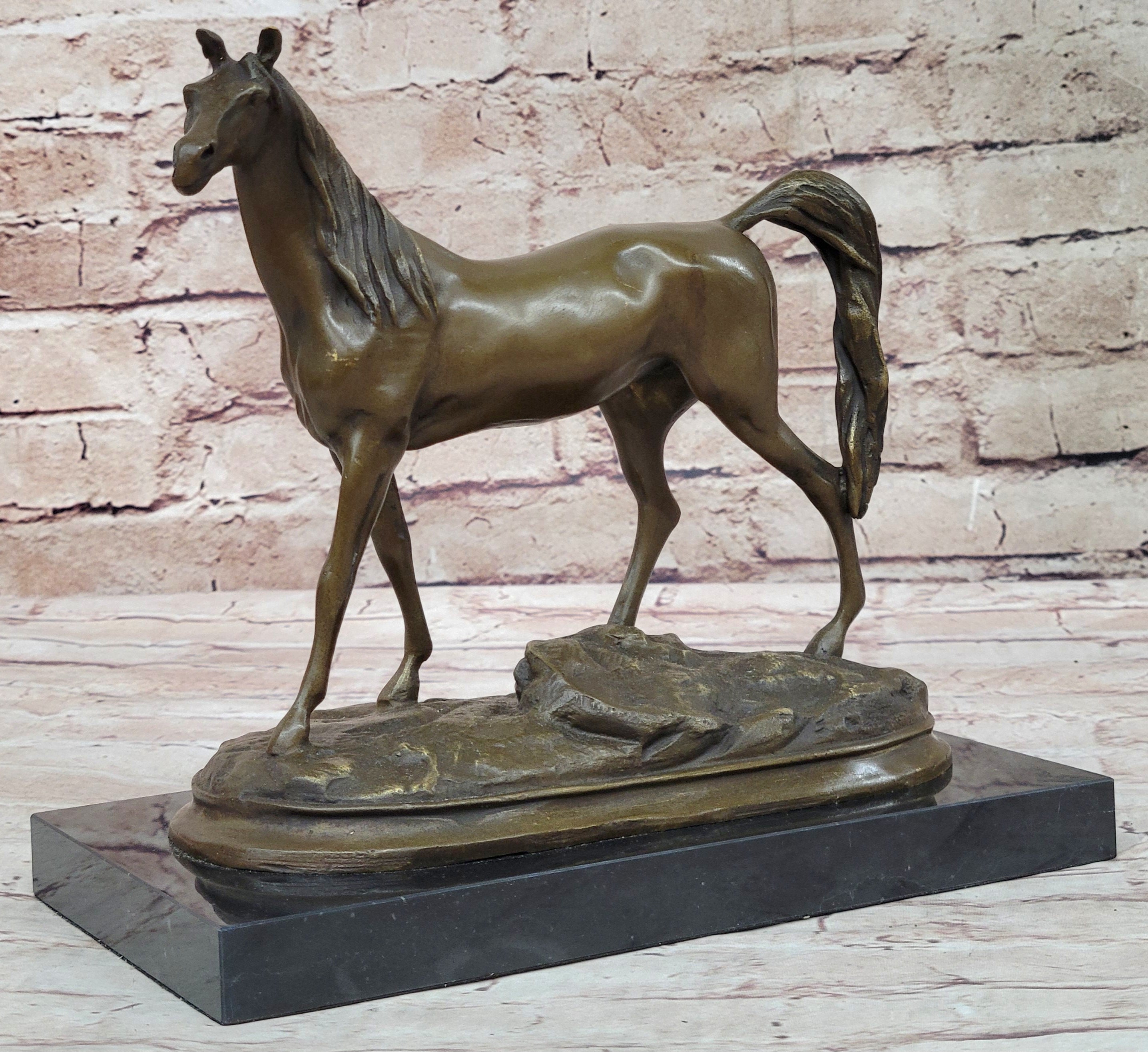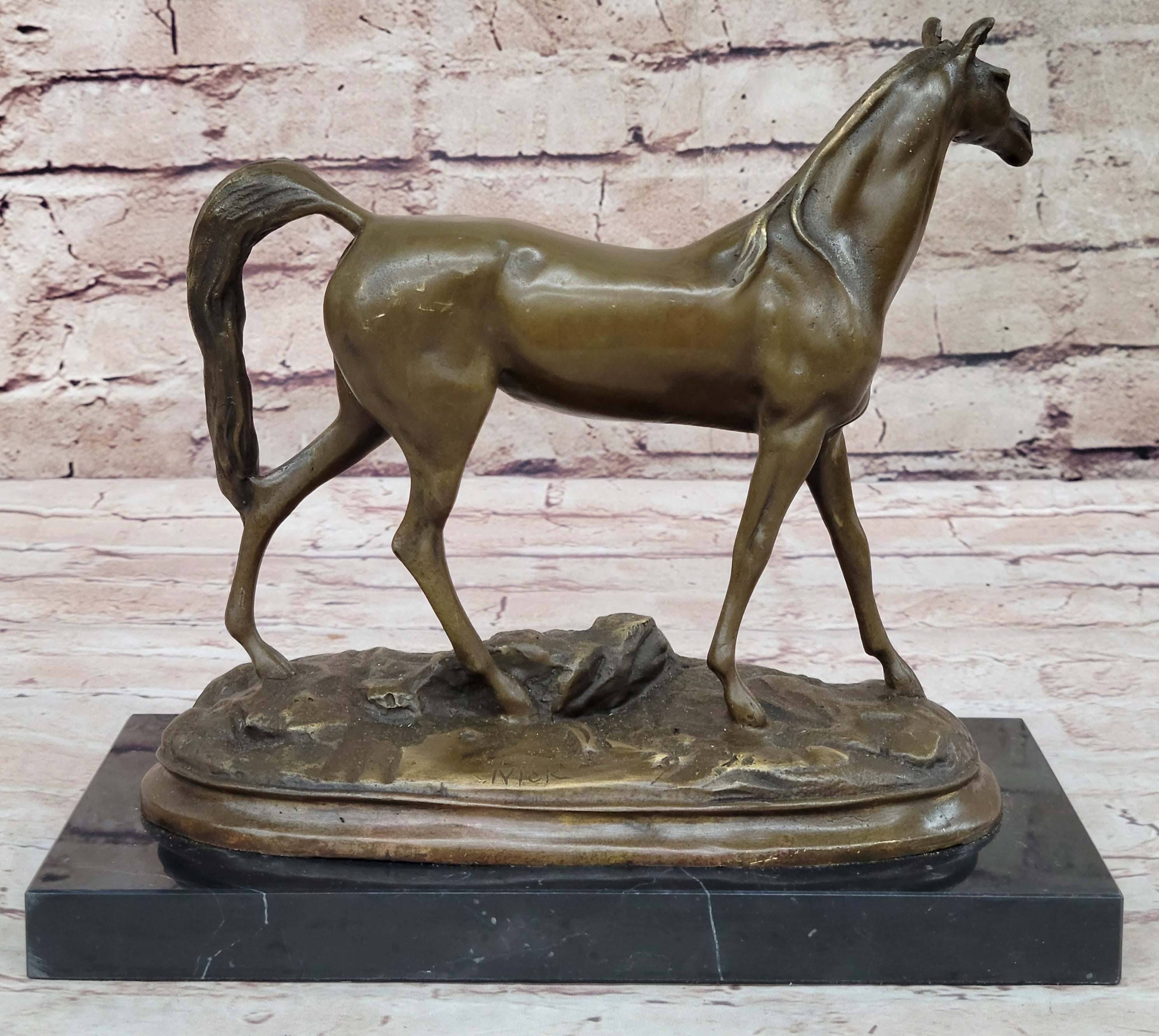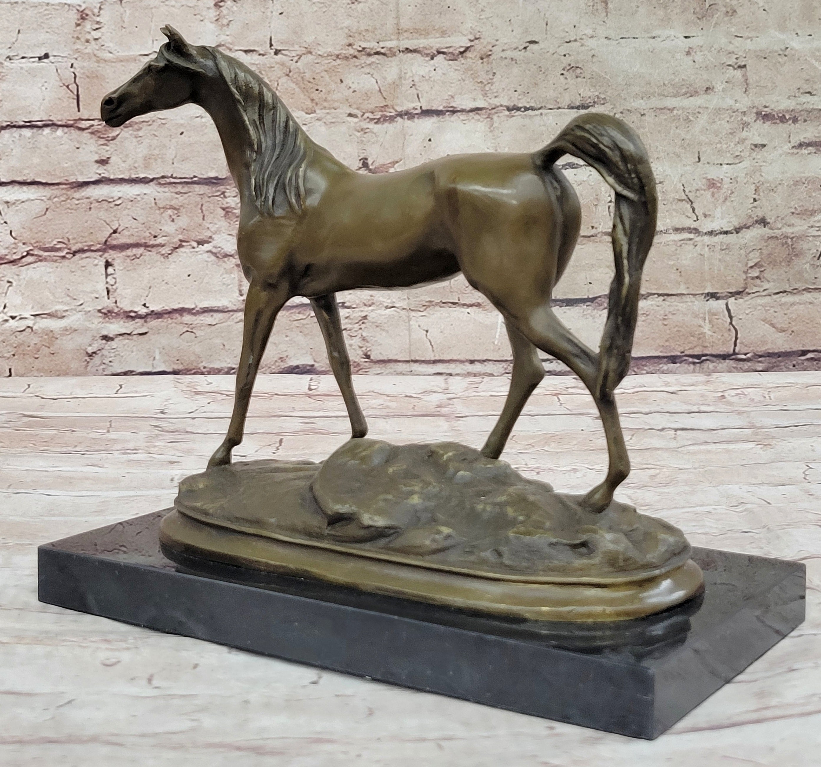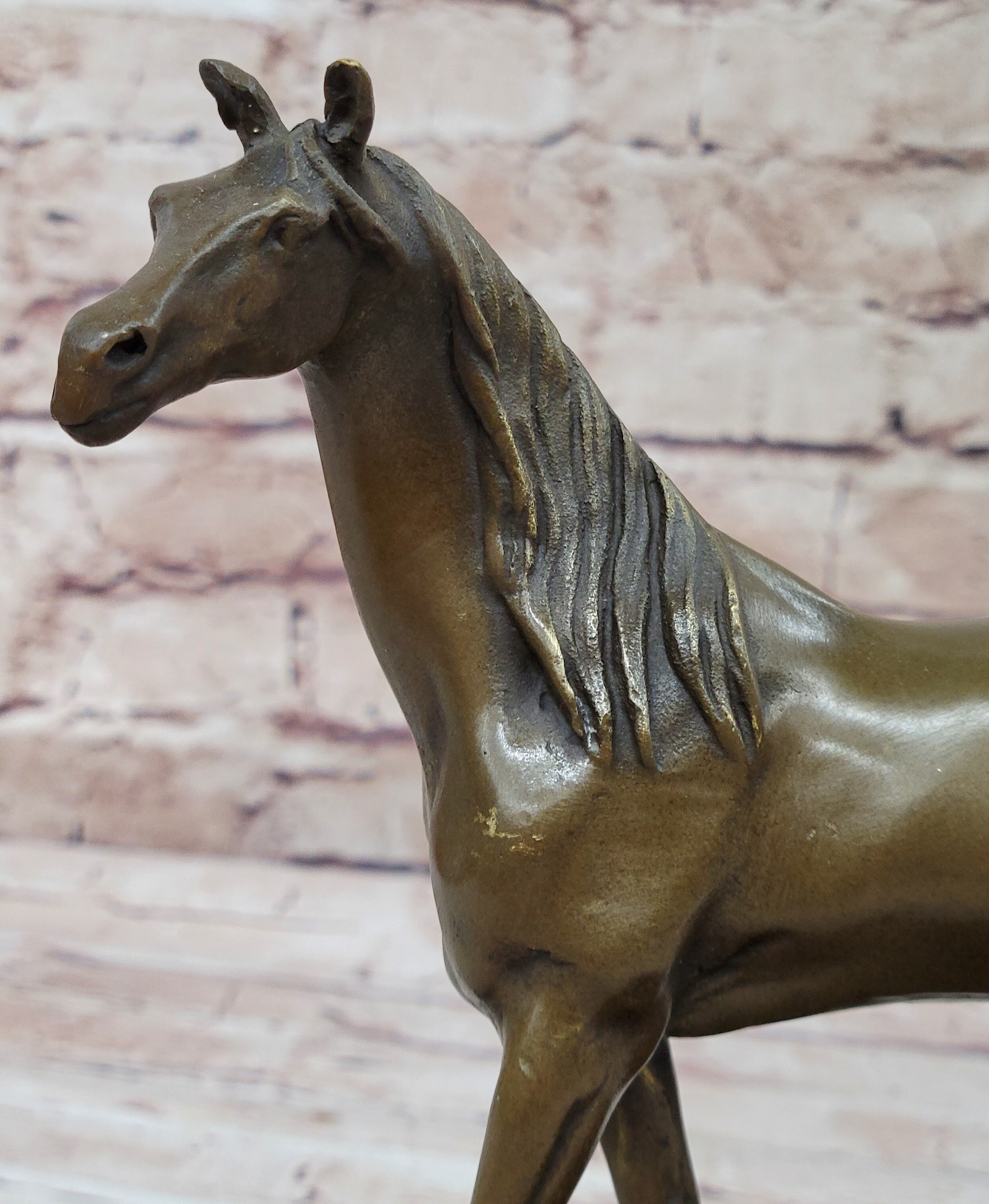 Whether displayed in an art collection or as a standalone piece, this sculpture is a tribute to the elegance and strength of horses. It serves as a timeless representation of the beauty found in the natural world, making it a cherished addition for art enthusiasts and horse lovers alike.Bronze Dimensions with Marble Base: Height 9" Width 9 1/2"