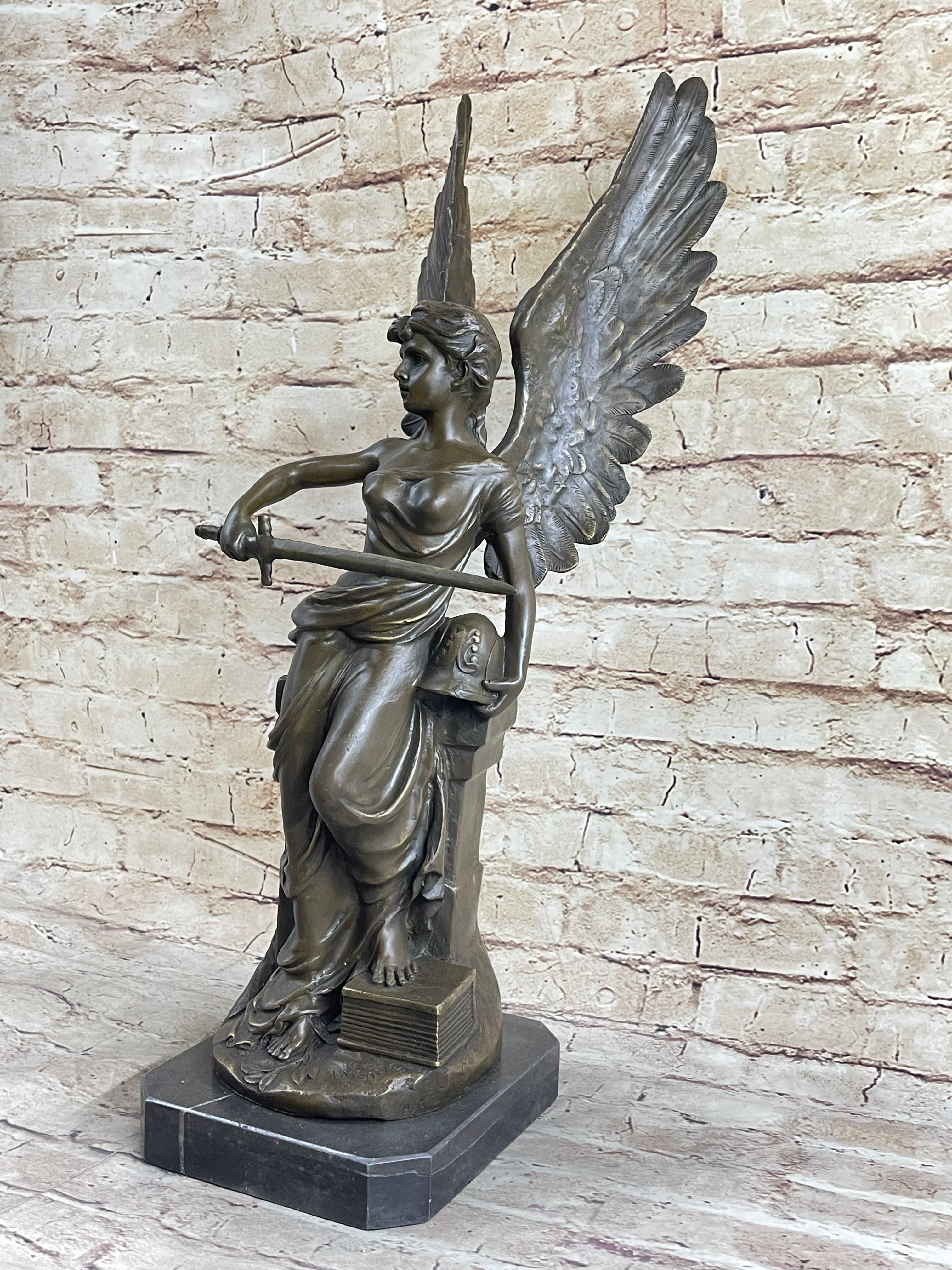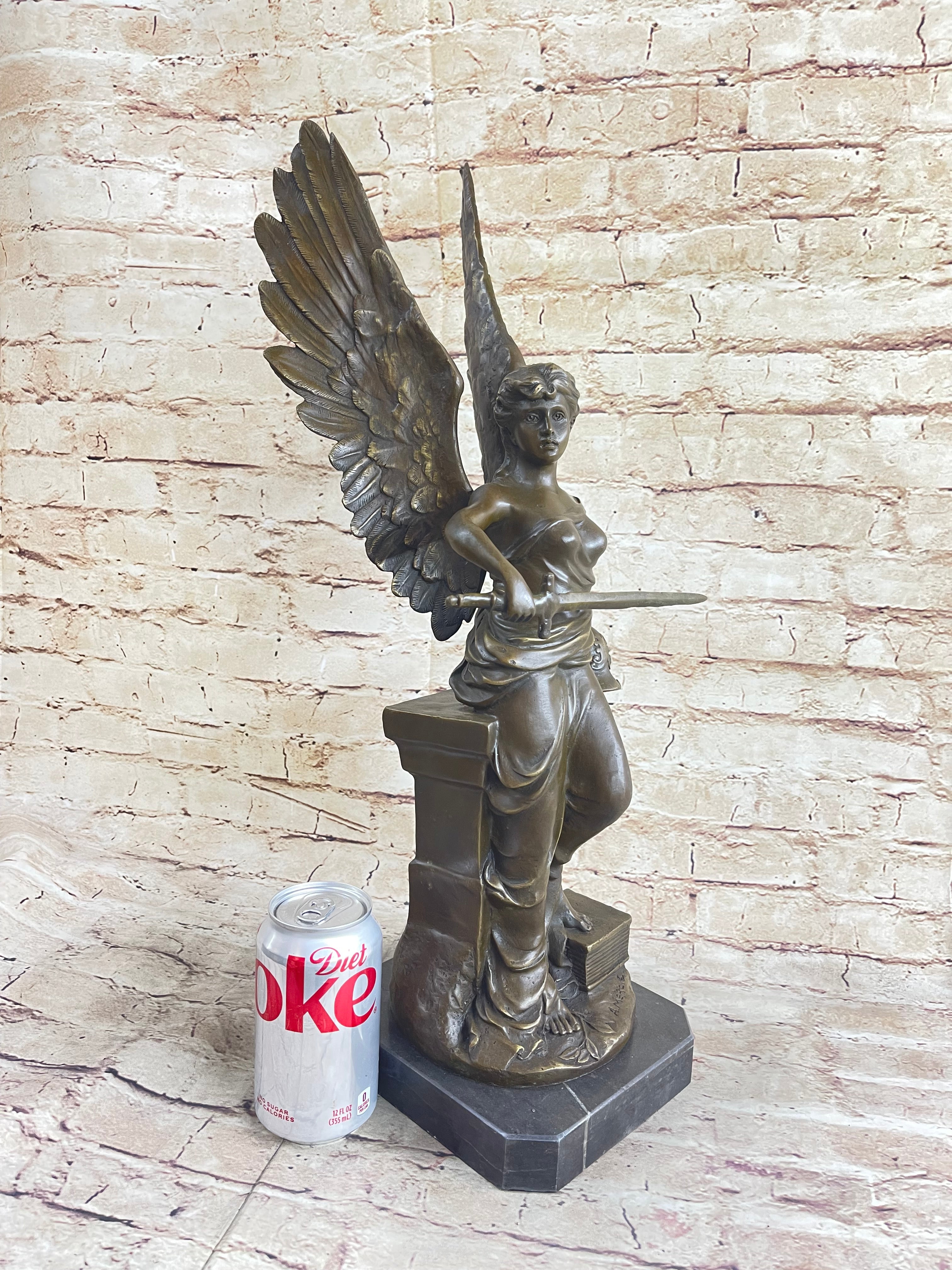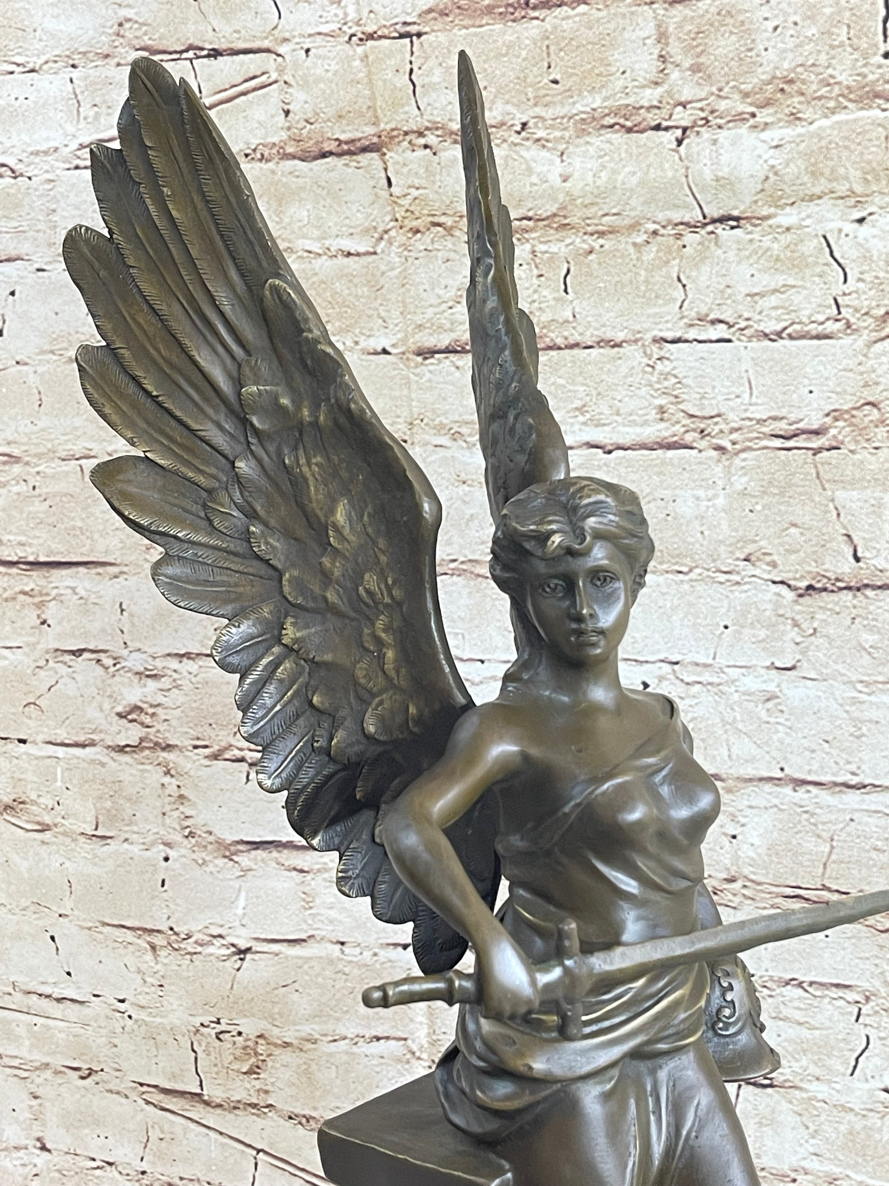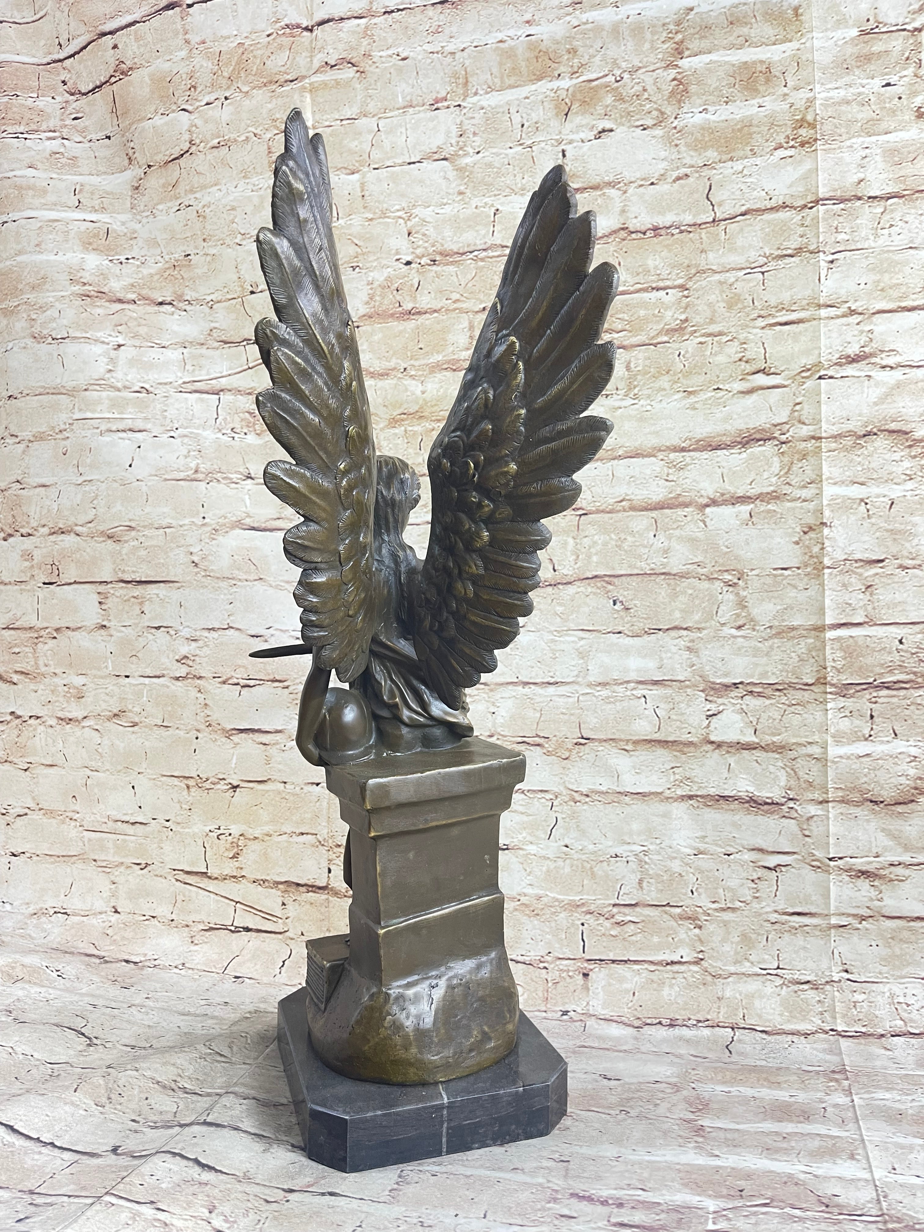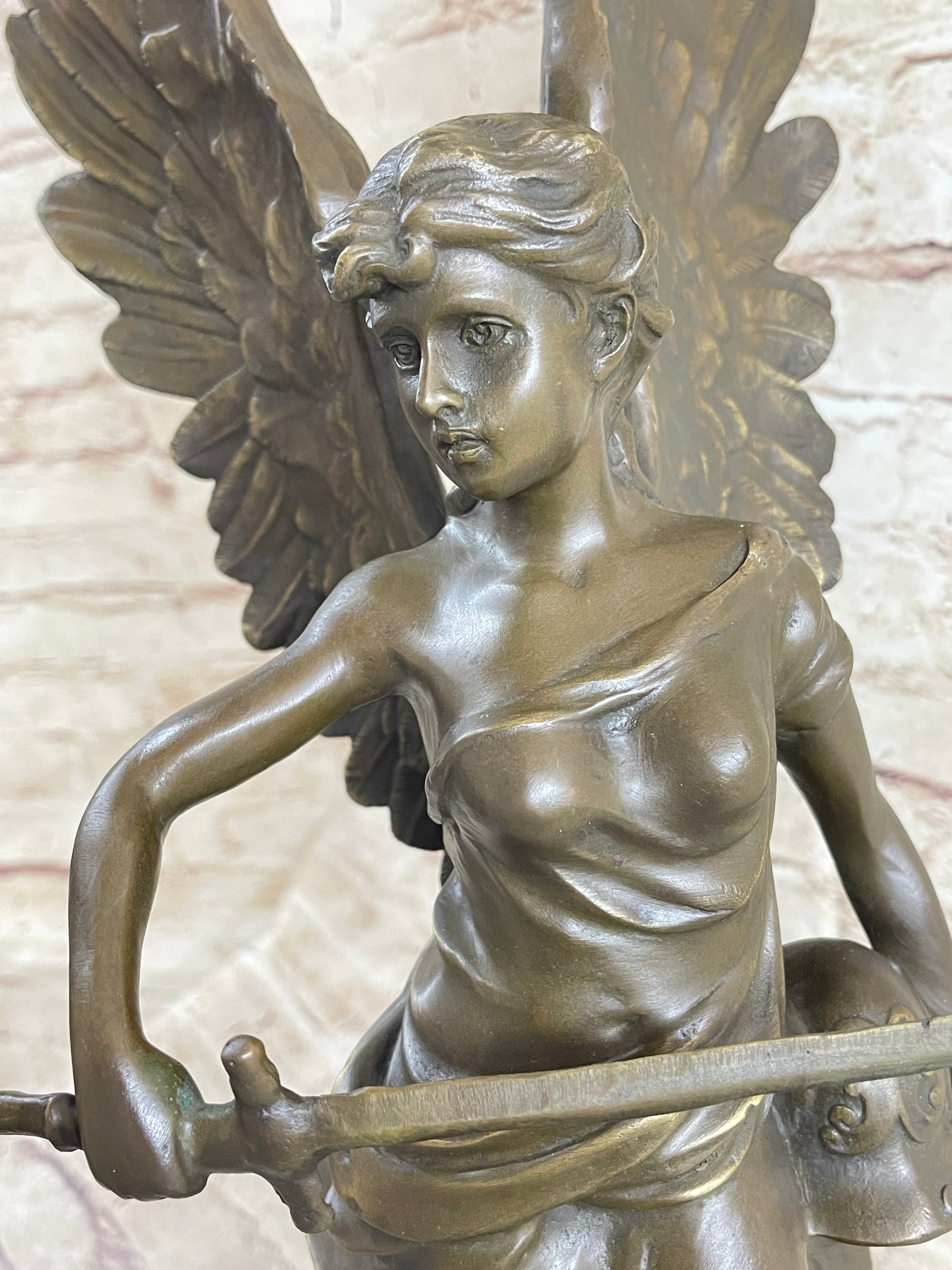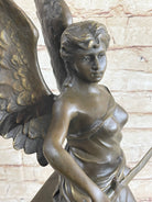 Winged Angel Warrior Goddess Nike Victory Bronze Statue Sculpture Marble Base