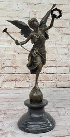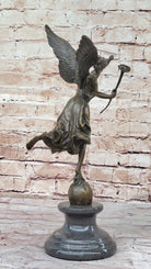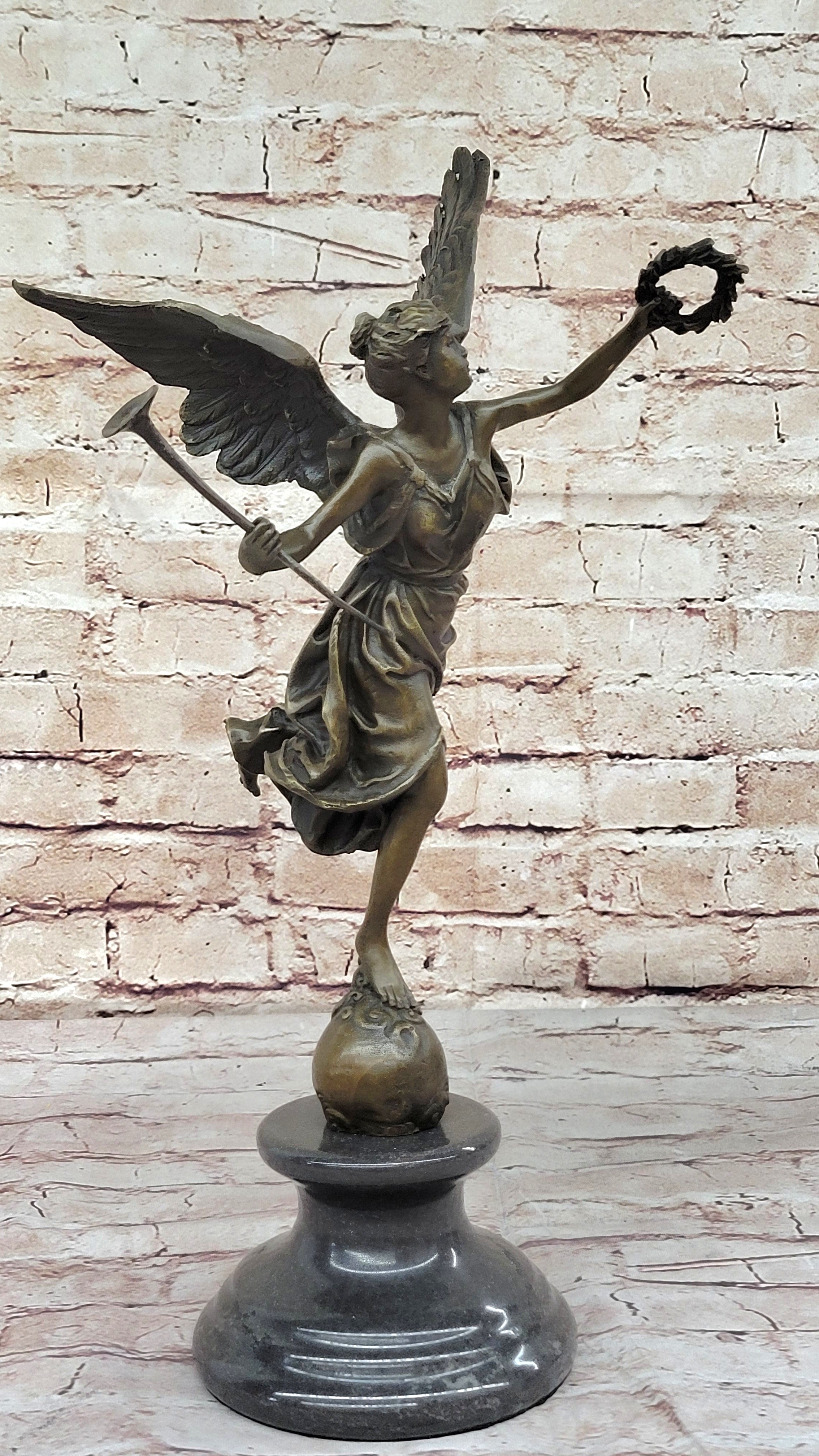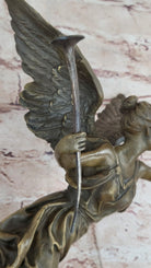 Crafted using the revered "Lost Wax Method," this sculpture exemplifies the artistry and craftsmanship that is synonymous with bronze casting. The intricate details, from the feathers of her wings to the flowing drapery of her gown, are expertly captured, showcasing the artist's keen eye for detail and mastery of the medium. The sculpture is adorned with a brown patina finish, lending a warm and timeless appeal to the piece.