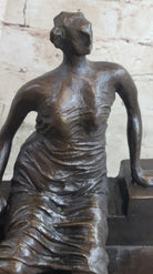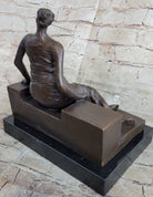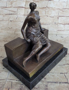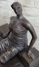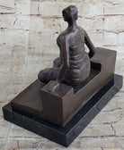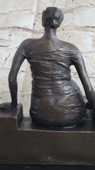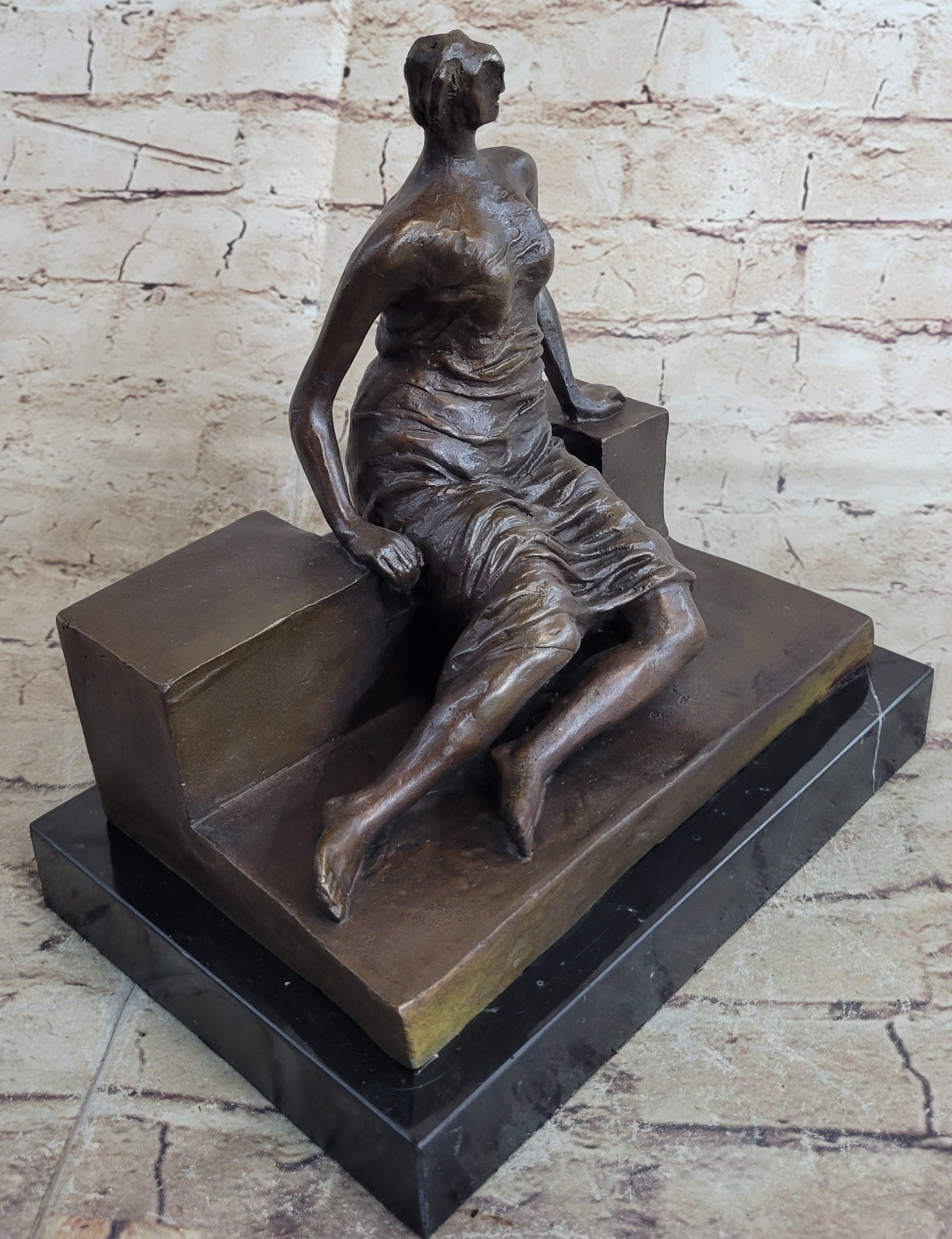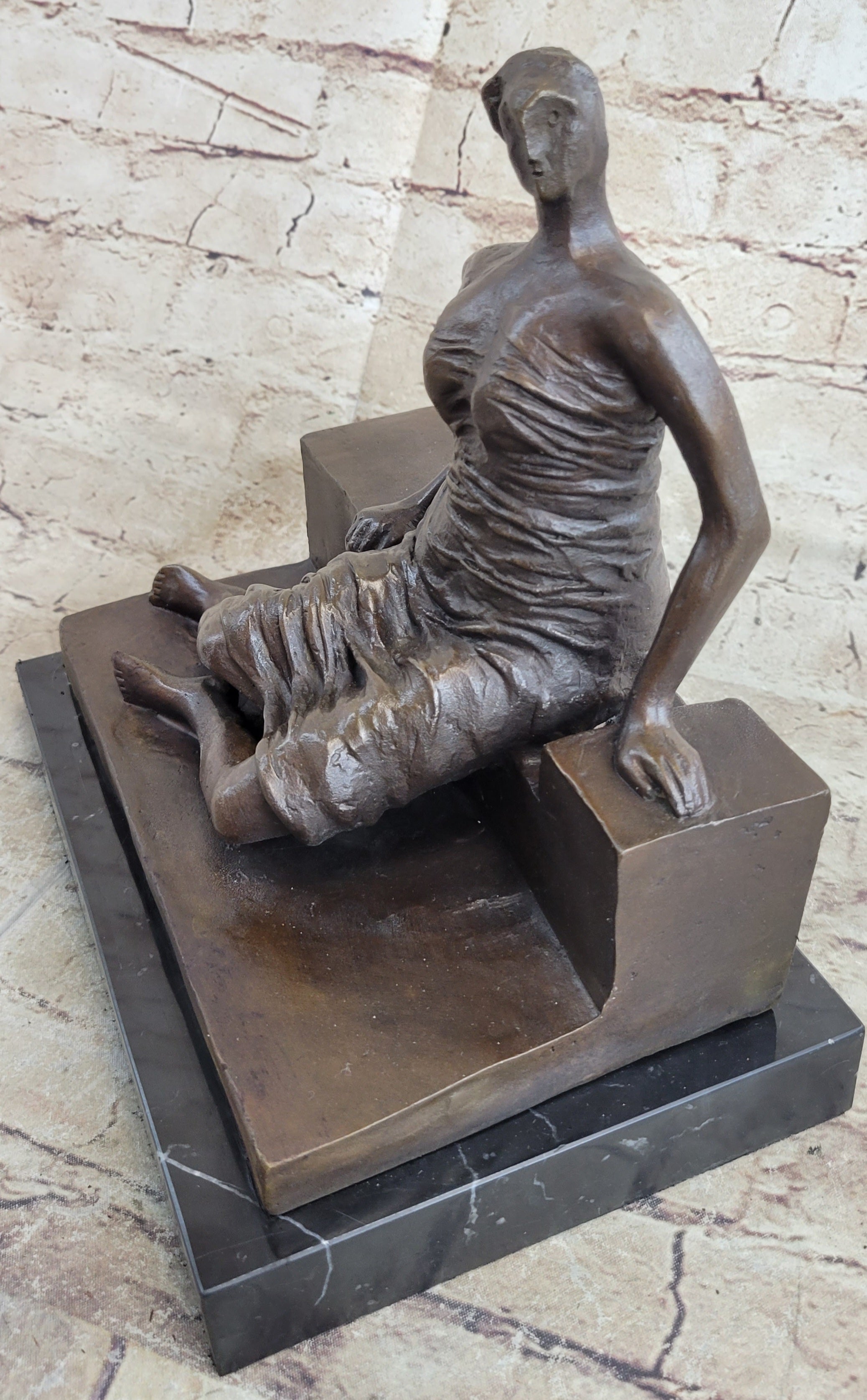 Woman on Bench by Henry Moore Abstract Modern Art Bronze Statue Sculpture Marble Base 9" x 8"