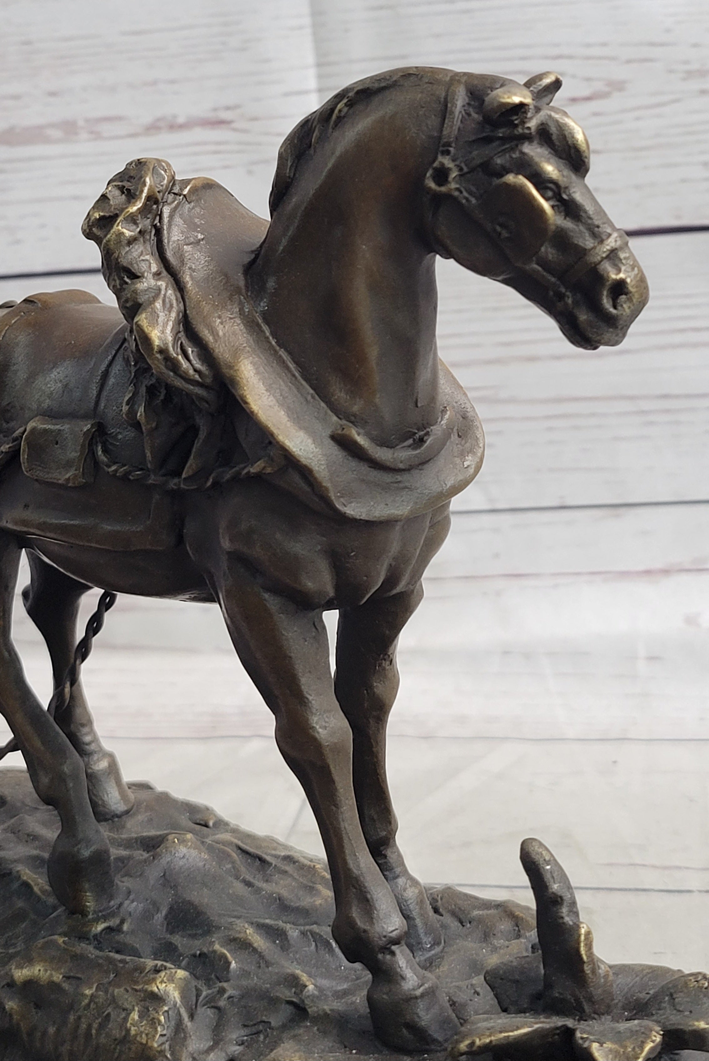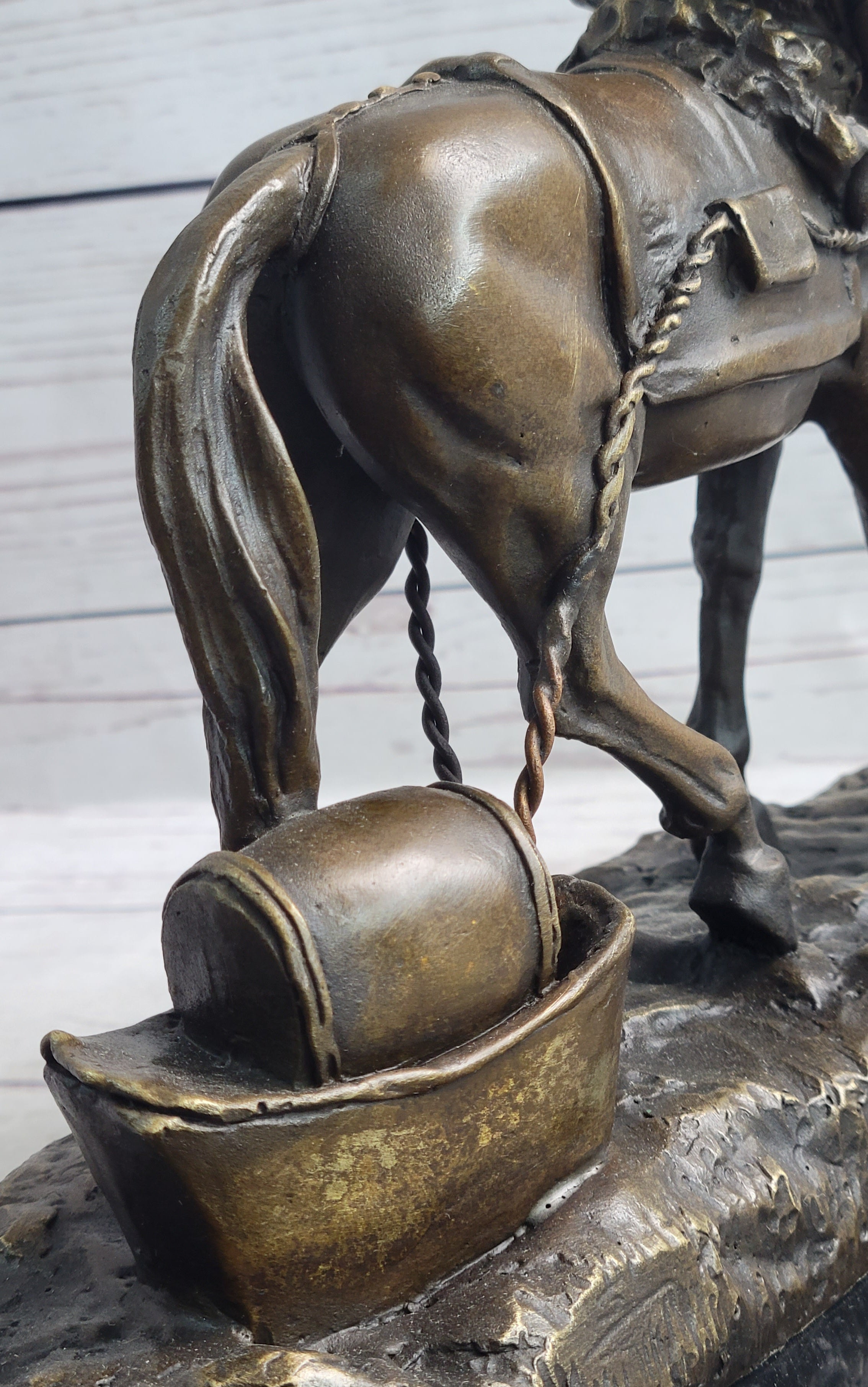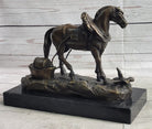 Working Draft Horse Bronze Sculpture Statue Figure Signed Art on Marble Base