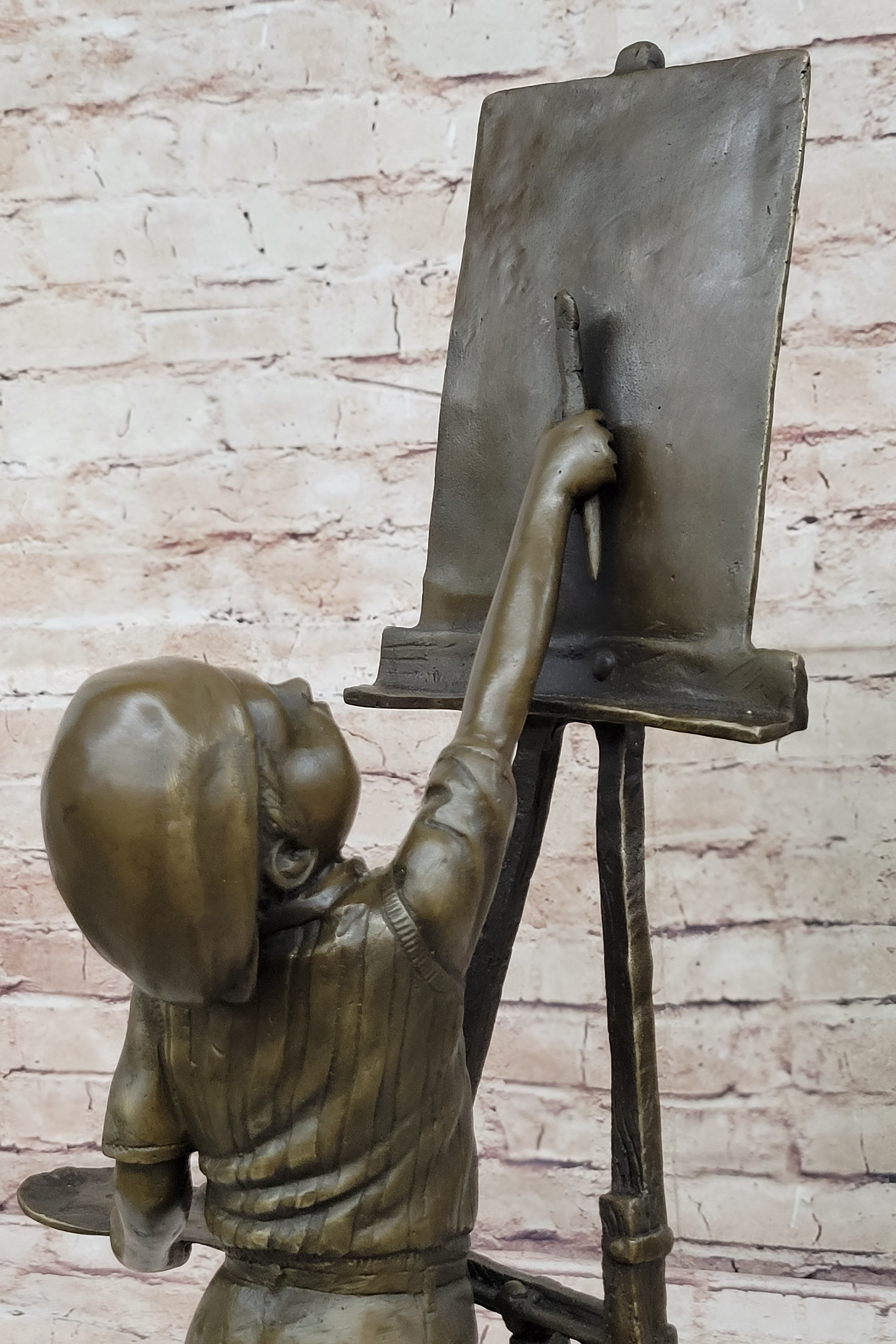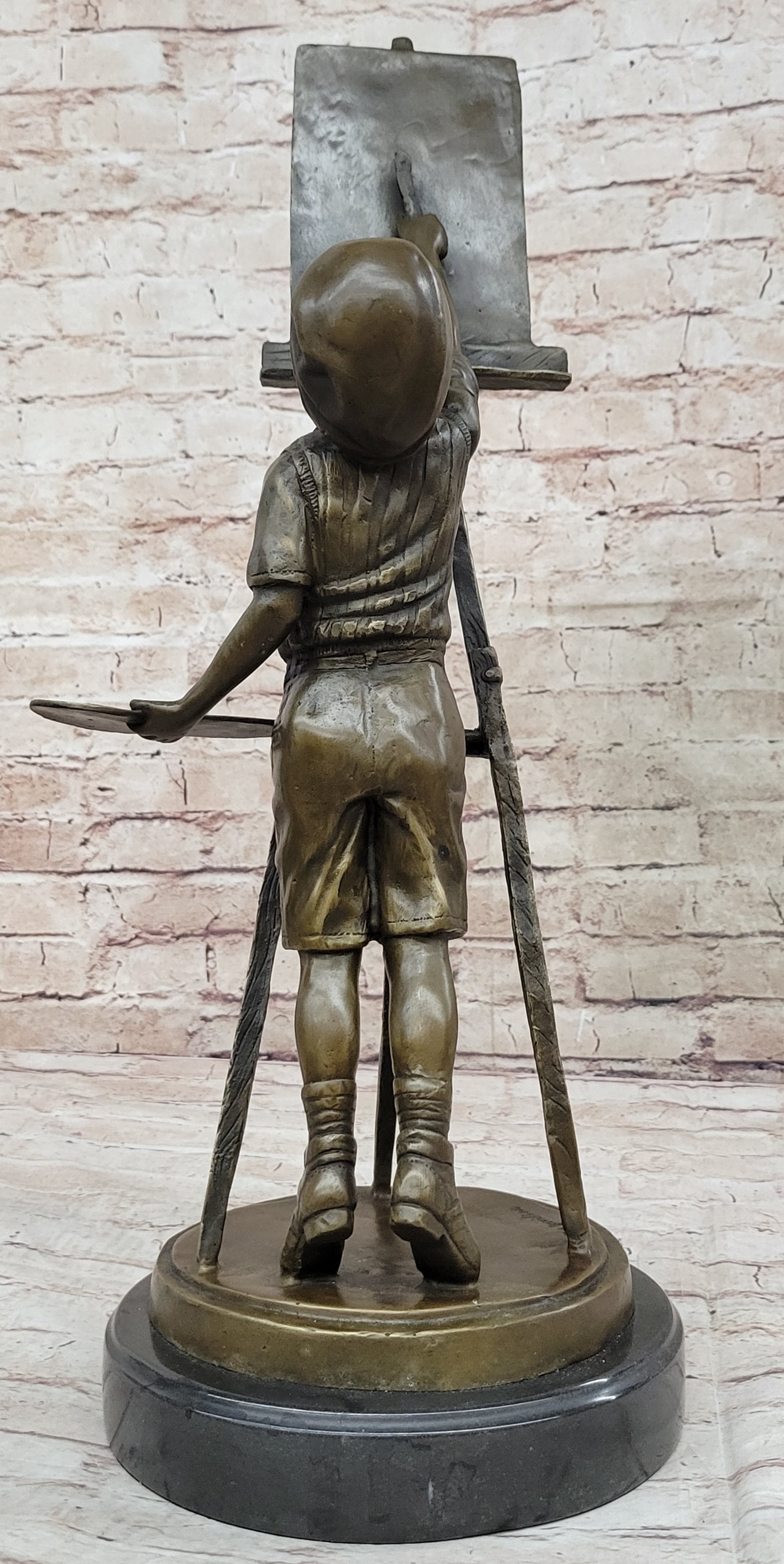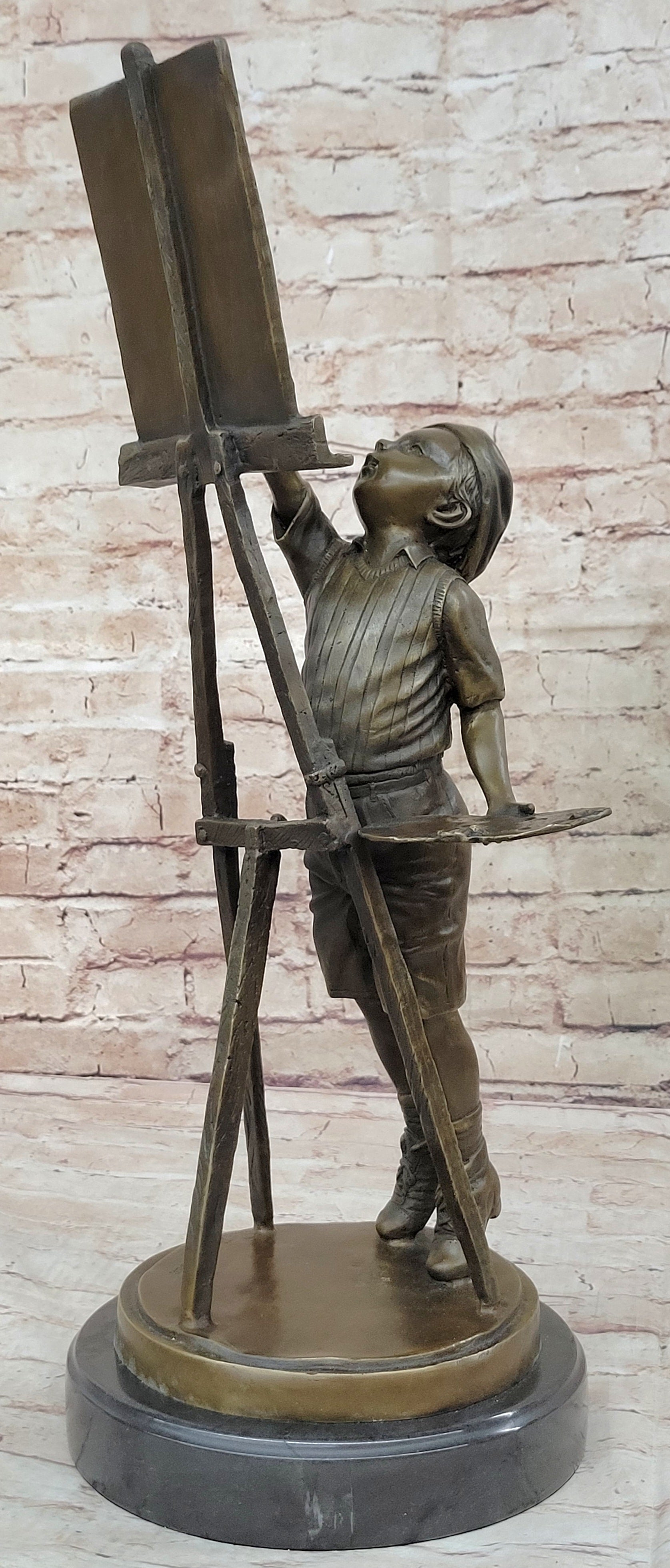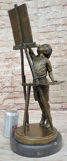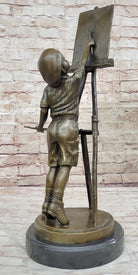 Young Artist Bronze Sculpture – Boy with Easel on Marble Base