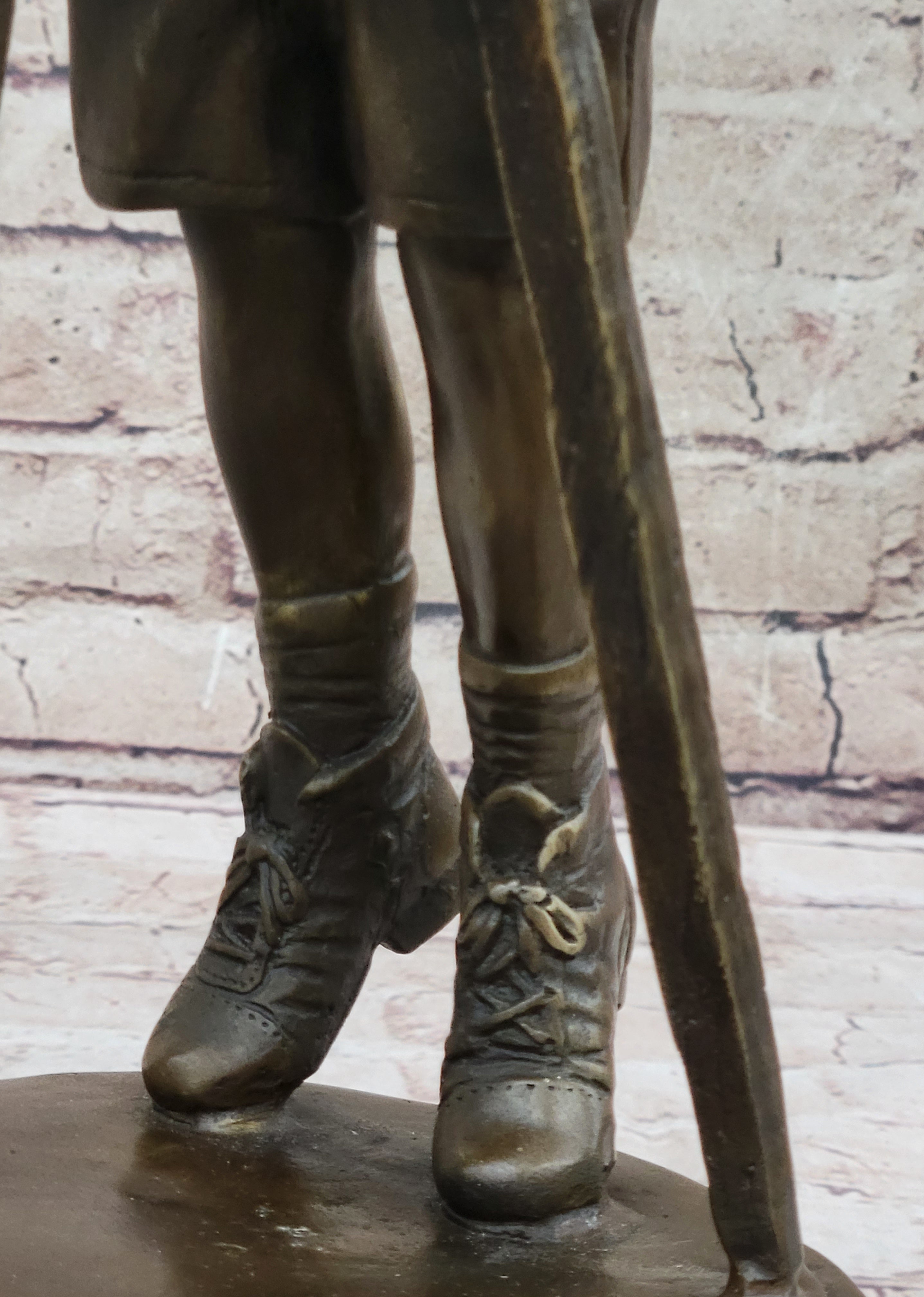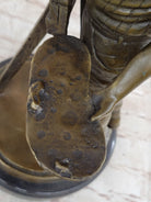 The sculpture stands gracefully on a black round marble base, adding an element of sophistication and stability to the artwork. The rich brown patina adds depth and character to the bronze, enhancing its vintage allure. This captivating bronze sculpture is not only a stunning piece of home decor but also a timeless tribute to the world of art and the creative spirit of a young prodigy. Whether displayed in a home, office, or art studio, this statue will undoubtedly inspire admiration and appreciation for the beauty of artistic expression.Bronze Dimensions with Marble Base: Height 21.5" X Width 8.5"