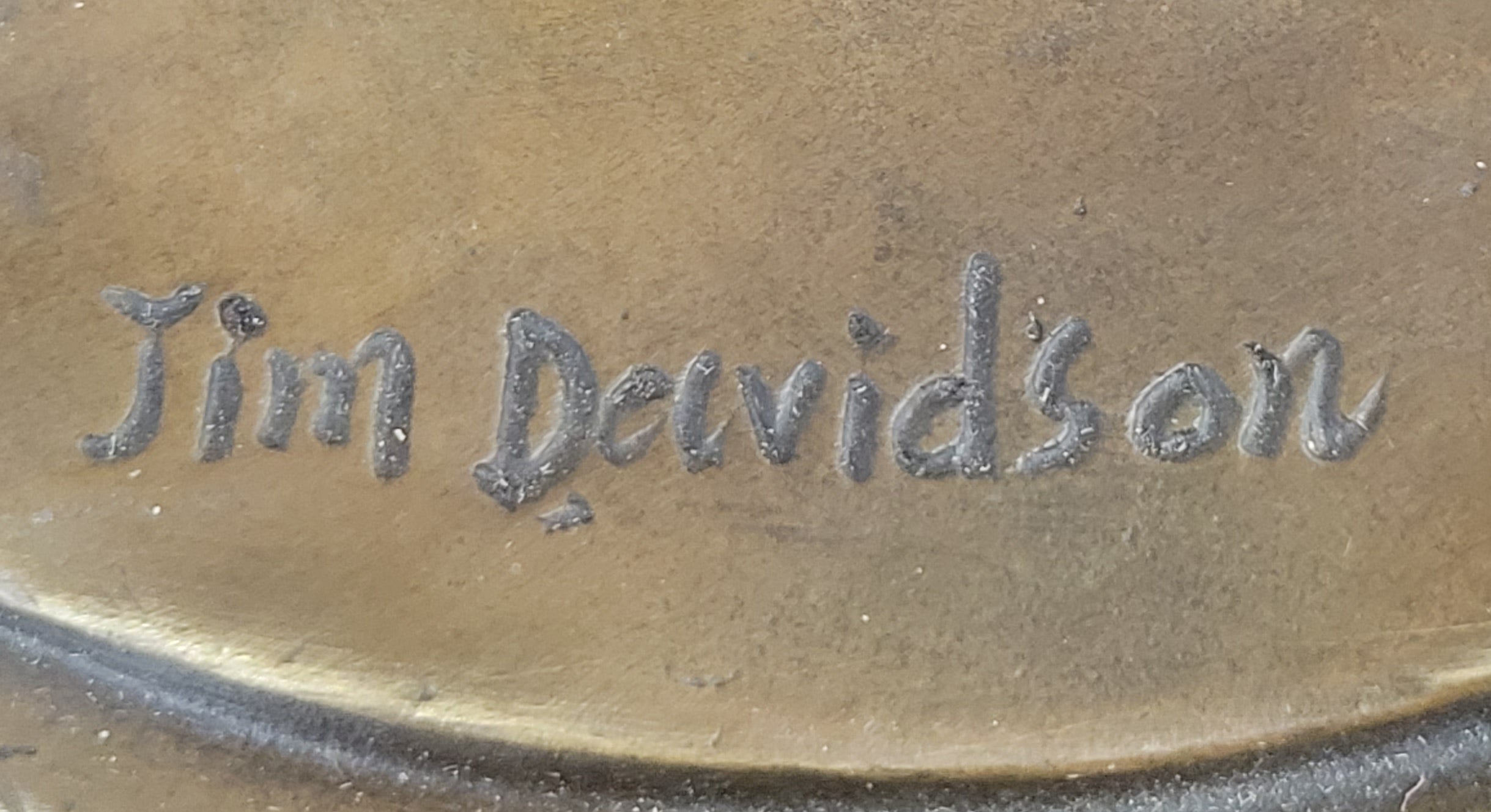 This vintage bronze sculpture by renowned artist Jim Davidson captures the essence of a prodigious young boy, fully engrossed in his artistic journey. The piece depicts the boy painting on canvas, showcasing his raw talent and passion for art. The intricate details in the sculpture, from the brush strokes to the boy's focused expression, demonstrate the artist's mastery in bringing the scene to life.