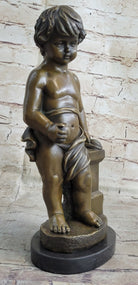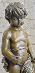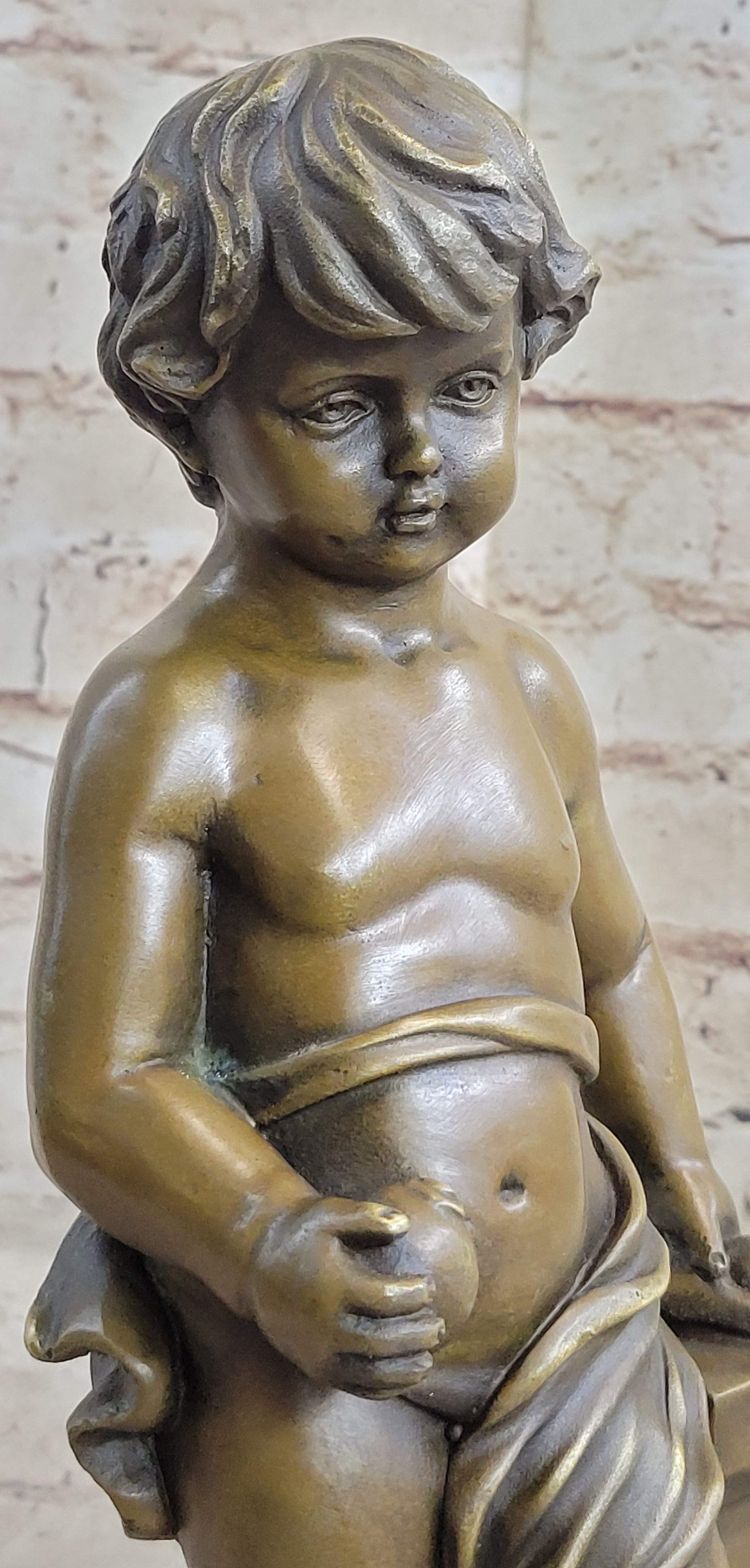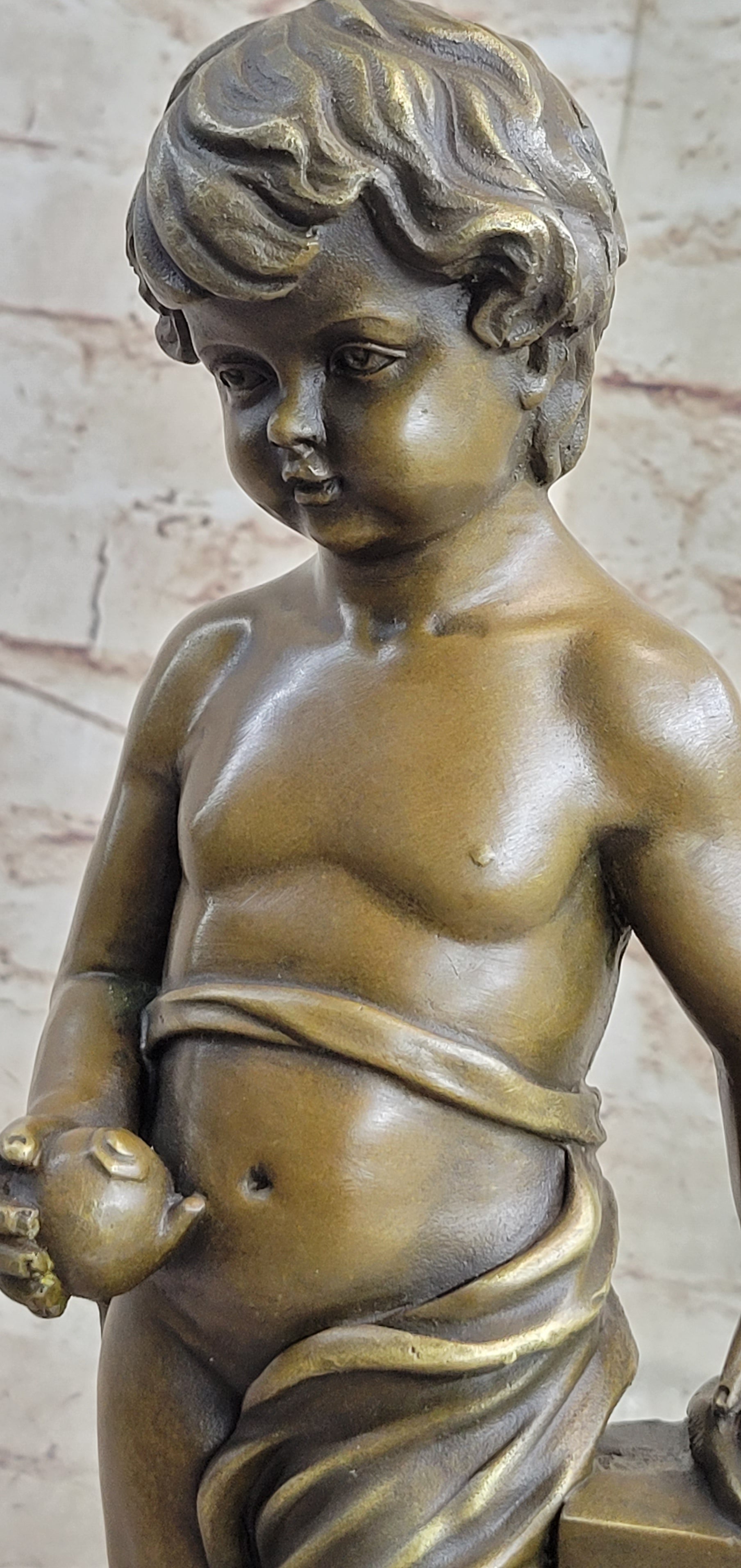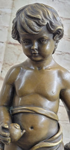 Young Boy Child Cherub Holding Apple Classical Hot Cast Bronze Statue Sculpture Decor