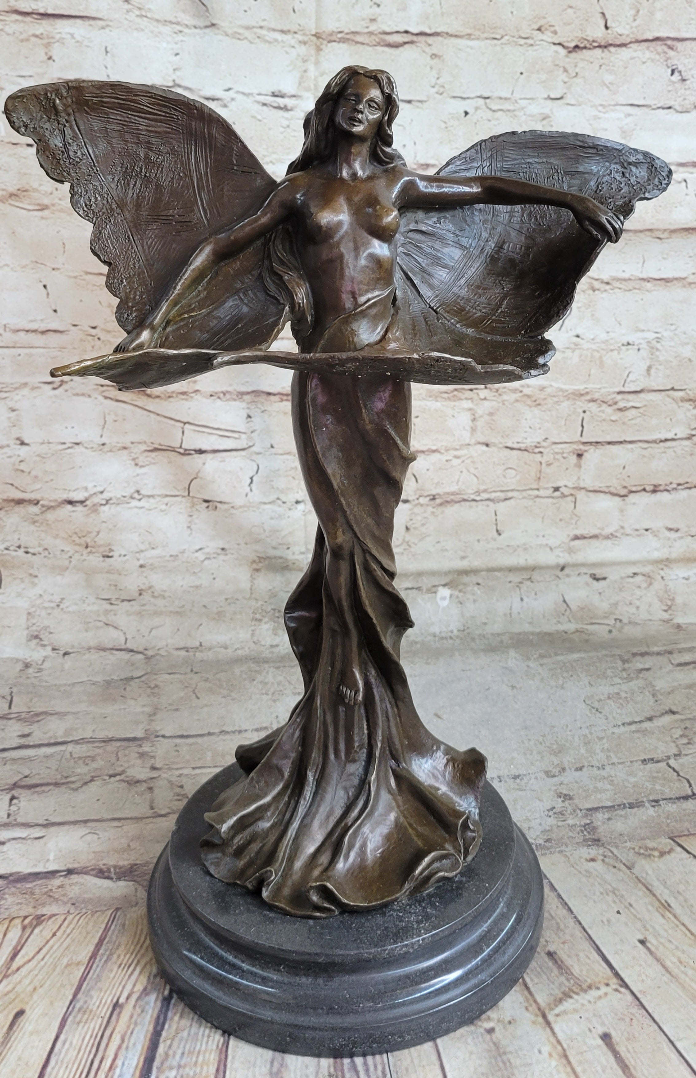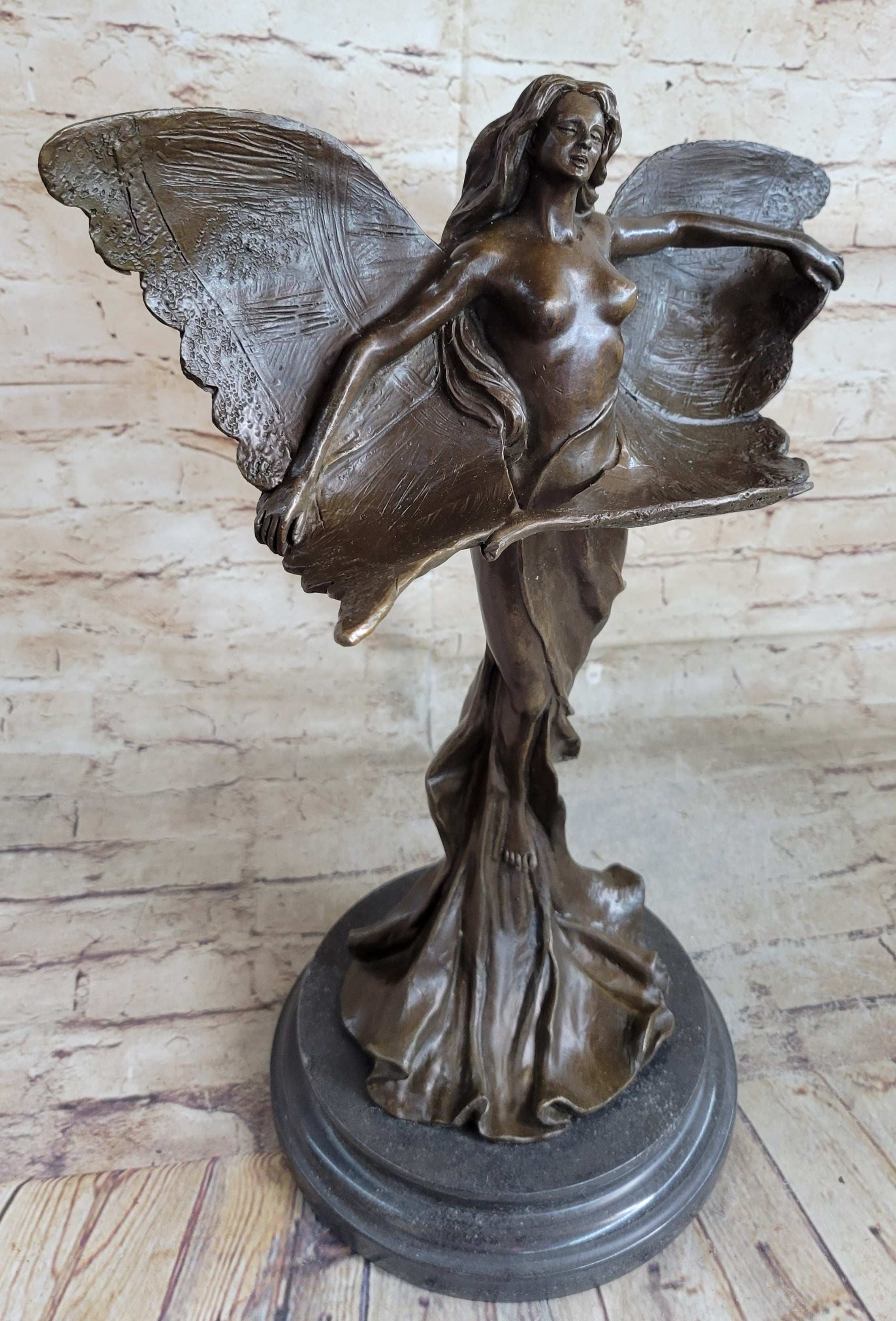 Young Butterfly Girl Rising Up From Flowing Robe With Arms Extended Bronze Gift