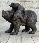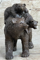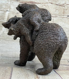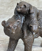 Young Cubs on back Mother Bear 100% Solid Bronze Statue Sculpture Figurine