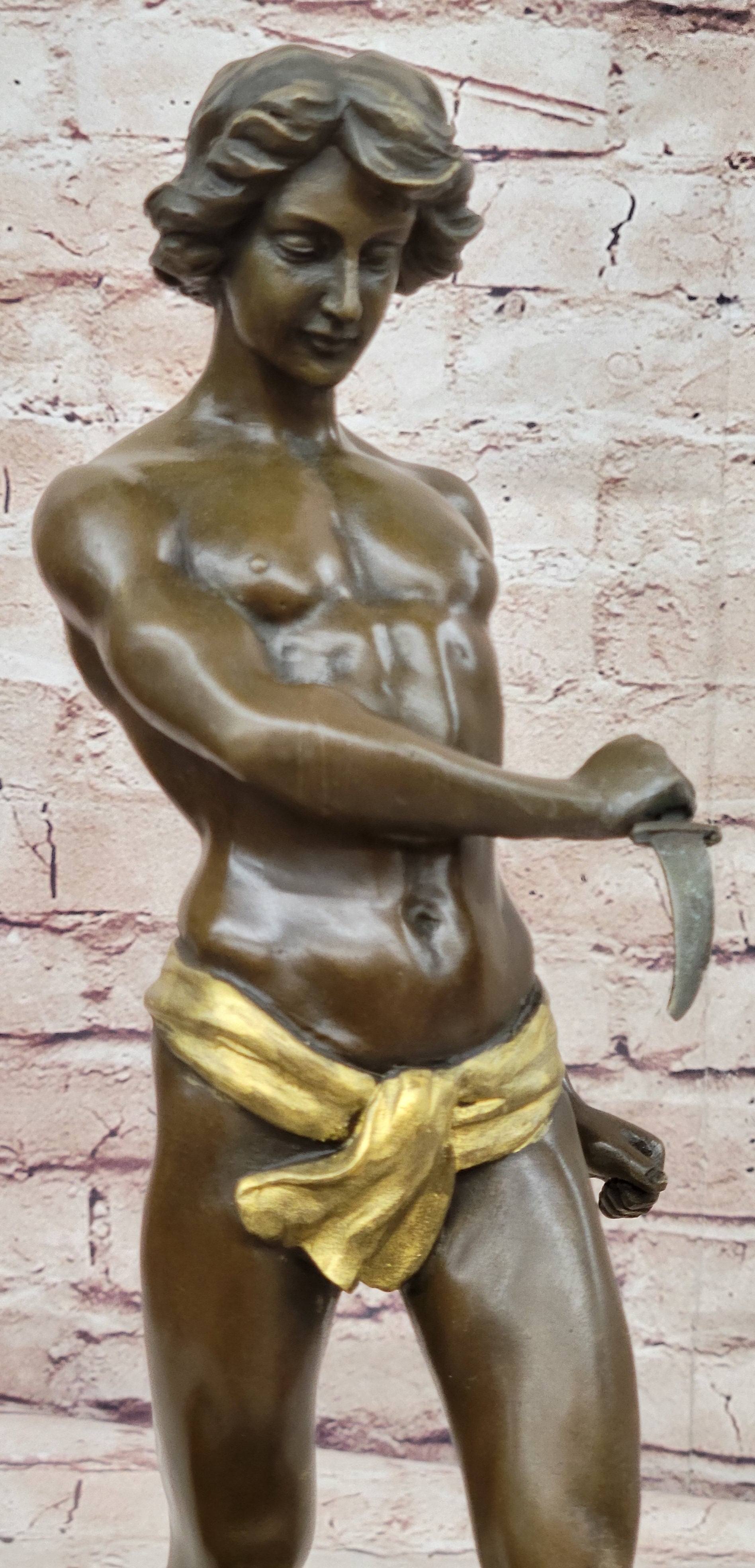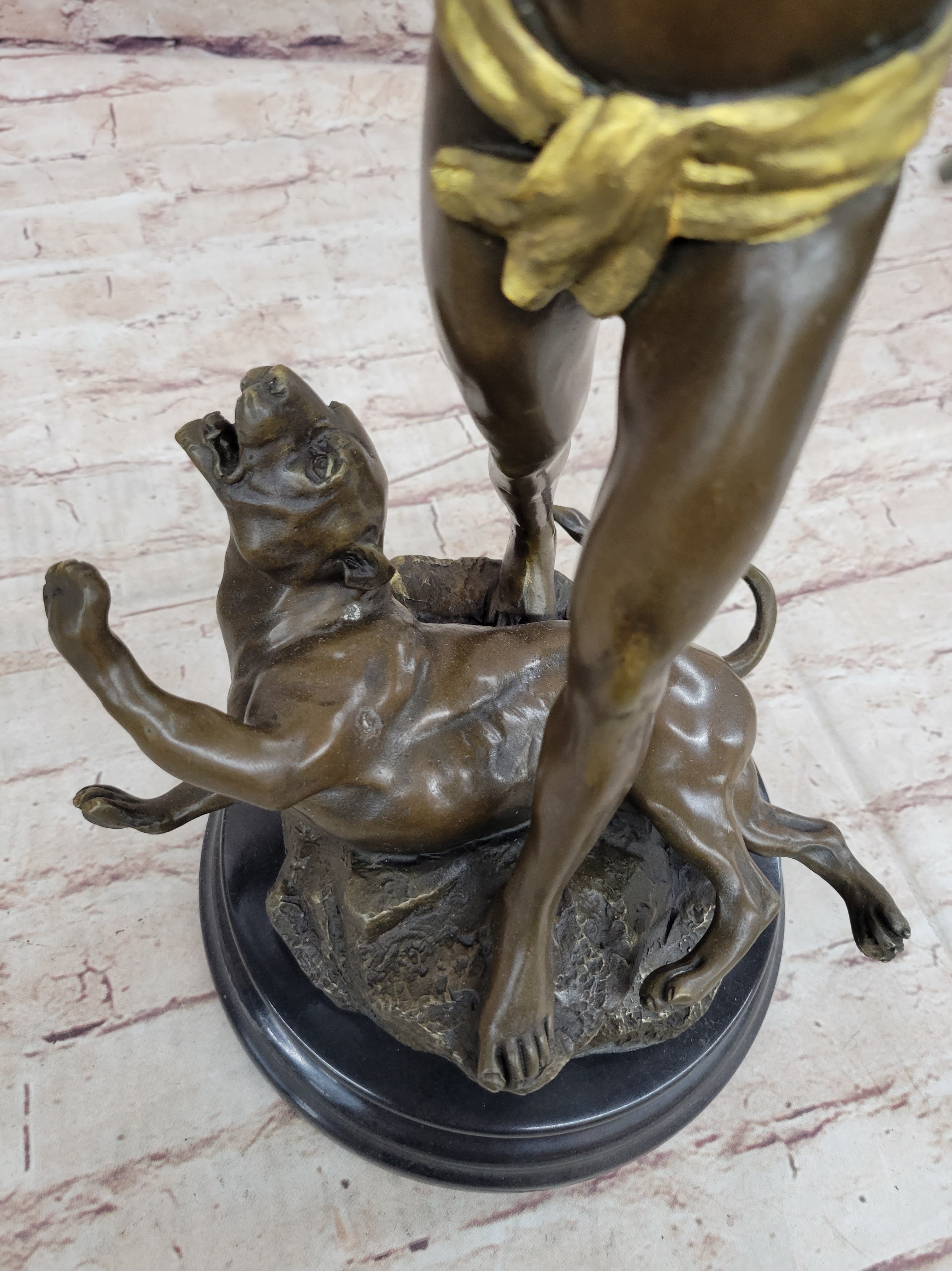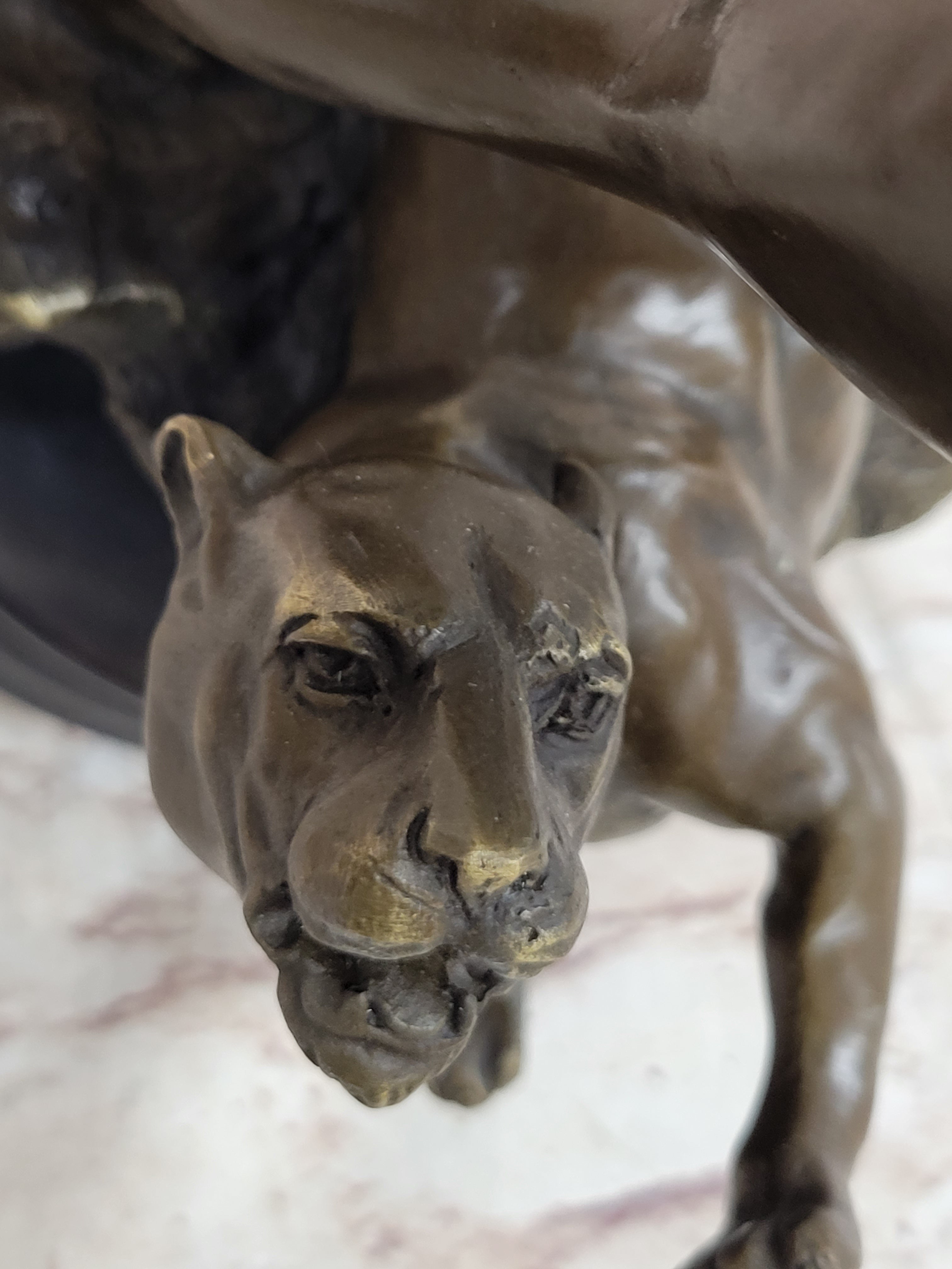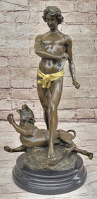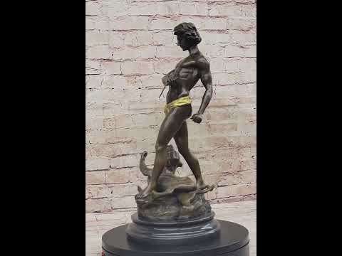 Young Tarzan Killing Leopard 100% Solid Bronze Statue Sculpture Figurine