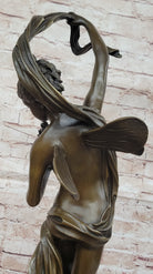 Handcrafted using the lost wax method, this sculpture ensures exceptional detail and quality. The rich brown patina enhances the fairy's delicate features, flowing garments, and intricately feathered wings, adding depth and dimension to the piece. The hot cast bronze technique guarantees durability, preserving the sculpture’s exquisite craftsmanship for generations to come.