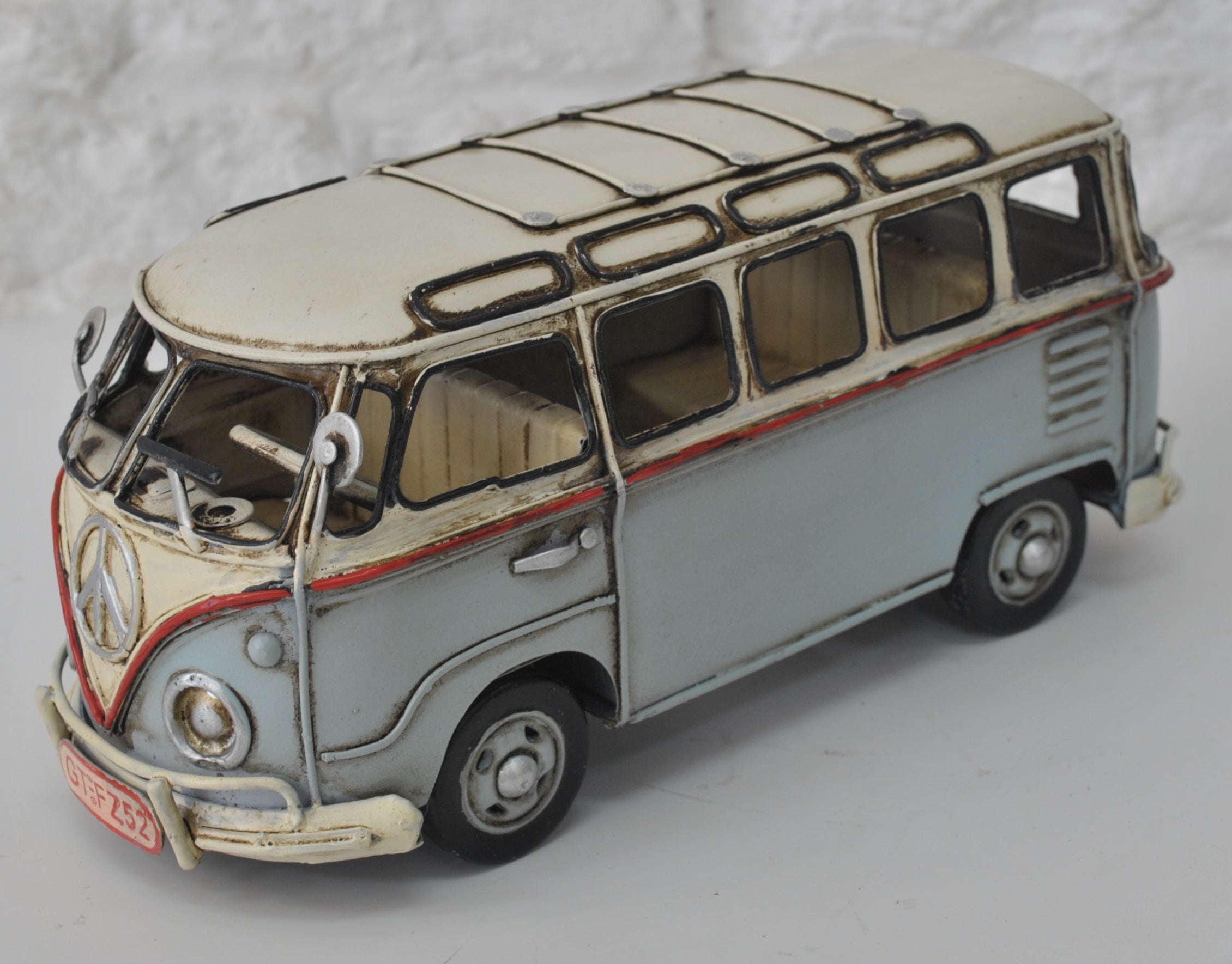 Decorate for any table, desk, or shelf in sporty fashion with Our Rustic Two Tone Classic VW Volkswagen Bus Sculpture. Featuring a rustic iron frame, this charming vintage Classic Car includes a fine detail's. The Blue and White Exterior are finished in natural colors. For more than 20 years, European Finery has been providing high quality sculpture, accessories, and decor for any room for its customers' homes. Based in New York area, We grown to become one of the largest importers and wholesalers of home decor and hand made sculptures in the country. Whether you're looking for accent Sculpture, wall decor, vintage Toys, or just about any outdoor lifestyle sculpture , We Became a proven and trustworthy name that has become synonymous with superiority.