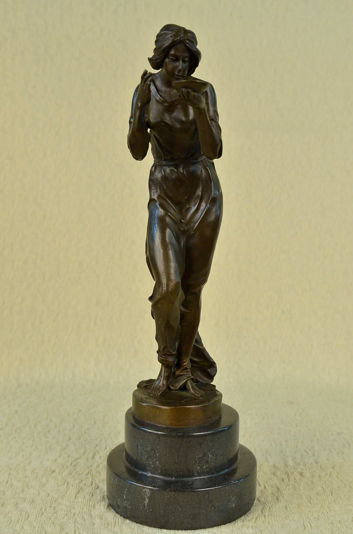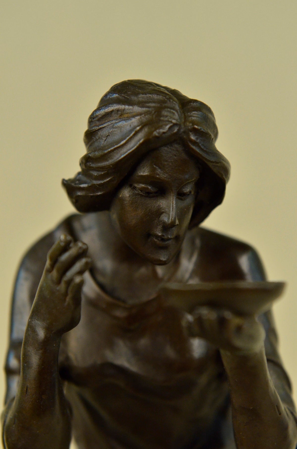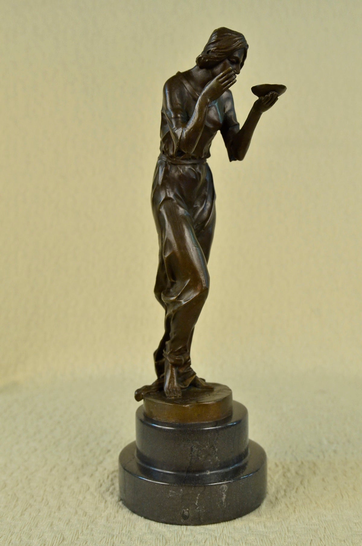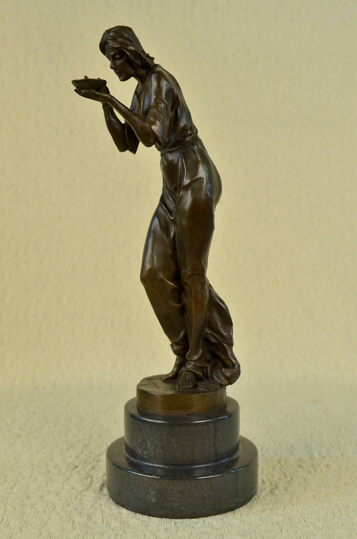 100% Solid Bronze Metal Statue Stone Greek Woman Girl Water Sculpture Figurine