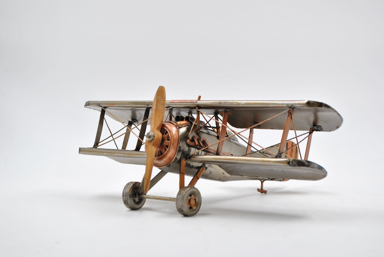 Decorate for any table, desk, or shelf in sporty fashion with Our Rustic Vintage 1917 World War I Air Plane. Featuring a rustic iron frame, this charming vintage plane includes a fine detail's. The Gold and copper metal Exterior are finished in natural colors. For more than 20 years, European Finery has been providing high quality sculpture, accessories, and decor for any room for its customers' homes. Based in New York area, We grown to become one of the largest importers and wholesalers of home decor and hand made sculptures in the country. Whether you're looking for accent Sculpture, wall decor, vintage Toys, or just about any outdoor lifestyle sculpture , We Became a proven and trustworthy name that has become synonymous with superiority.2. Overall measurement (approx. H X W) : 5 x 11 Inches