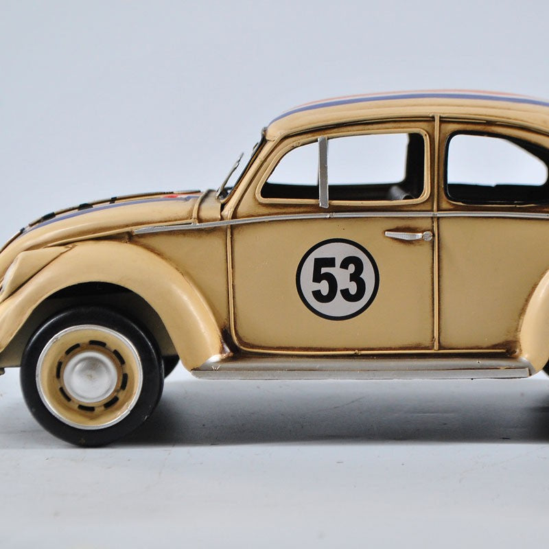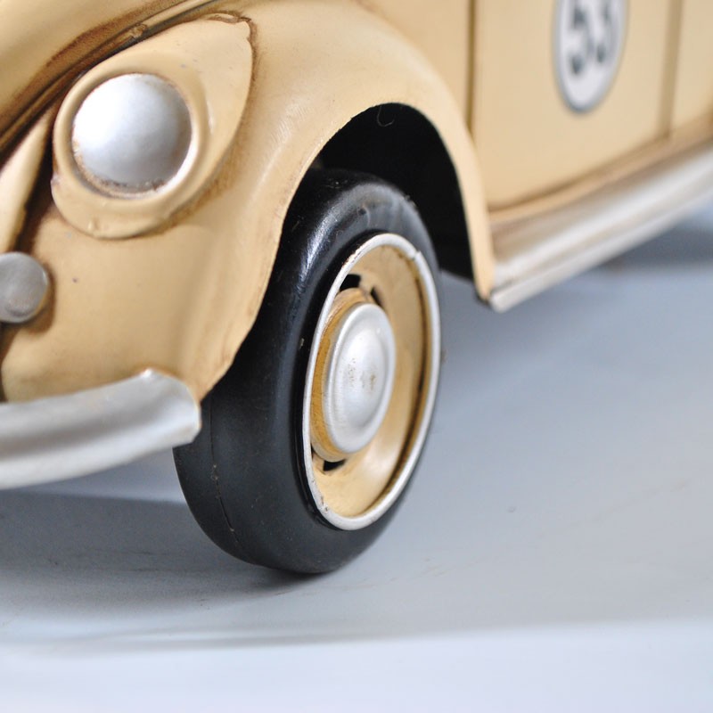 Decorate for any table, desk, or shelf in sporty fashion with Our Rustic 1934 VW Beetle Toy car. Featuring a rustic iron frame, this charming vintage Classic Car includes a fine detailes. The Beige and Silver metal seat and handlebars are finished in natural colors. For more than 20 years, European Finery has been providing high quality sculpture, accessories, and decor for any room for its customers' homes. Based in New York area, We grown to become one of the largest importers and wholesalers of home decor and hand made sculptures in the country. Whether you're looking for accent Sculpture, wall decor, vintage Toys, or just about any outdoor lifestyle sculpture , We Became a proven and trustworthy name that has become synonymous with superiority.2. Overall measurement (approx. H X W) : 5 x 13 Inches