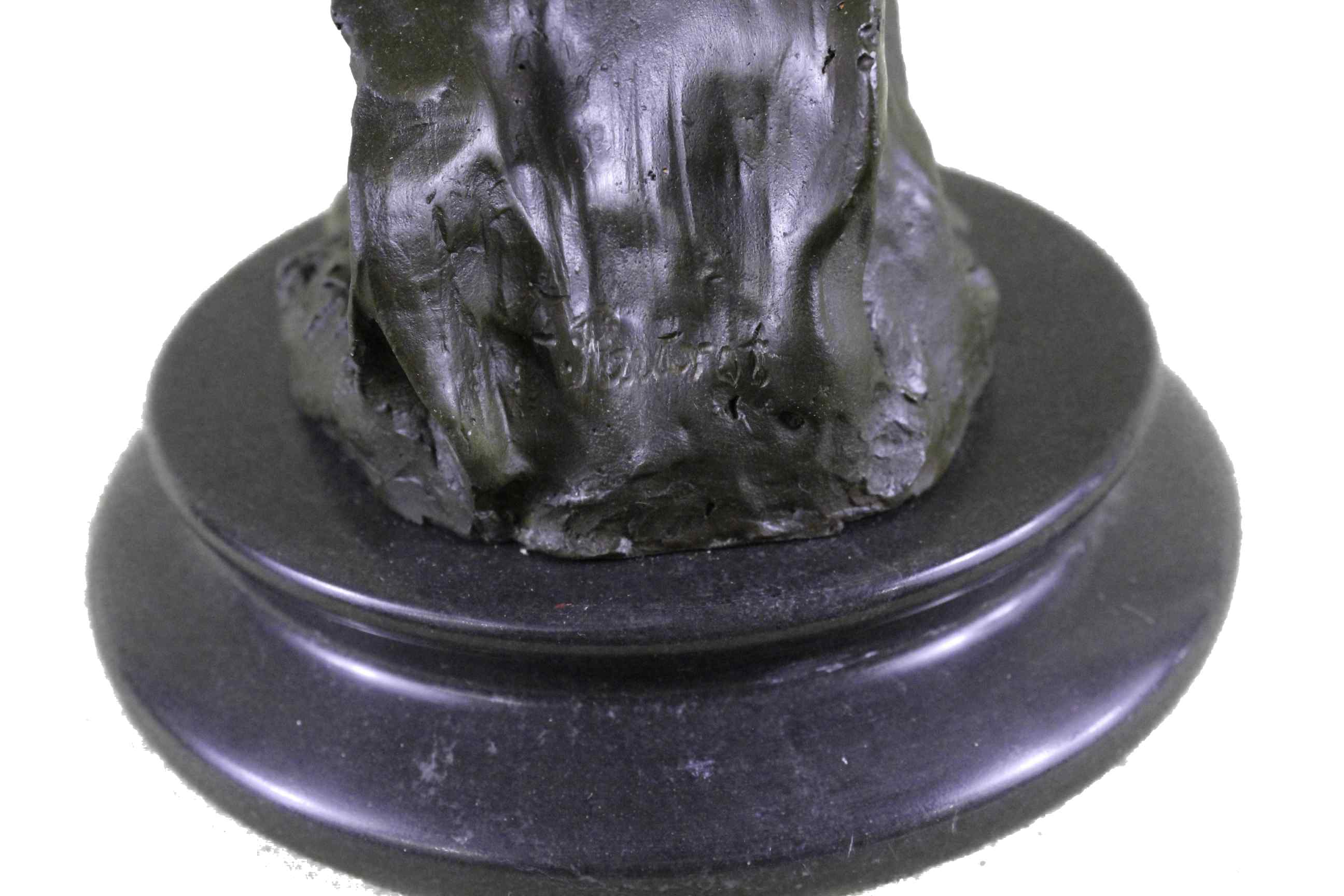 Condition: This sculpture is in perfect condition. Bronze Dimensions with Marble Base:Height 14" x Width 6" Marble Dimensions: Diameter 6". Height without base: 12 1/2 " Weight : 7 LBS Inventory :58X23933685 SALE
