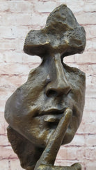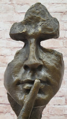 Abstract Dali Bronze Face Sculpture – Silence Shushing Statue on Marble Base