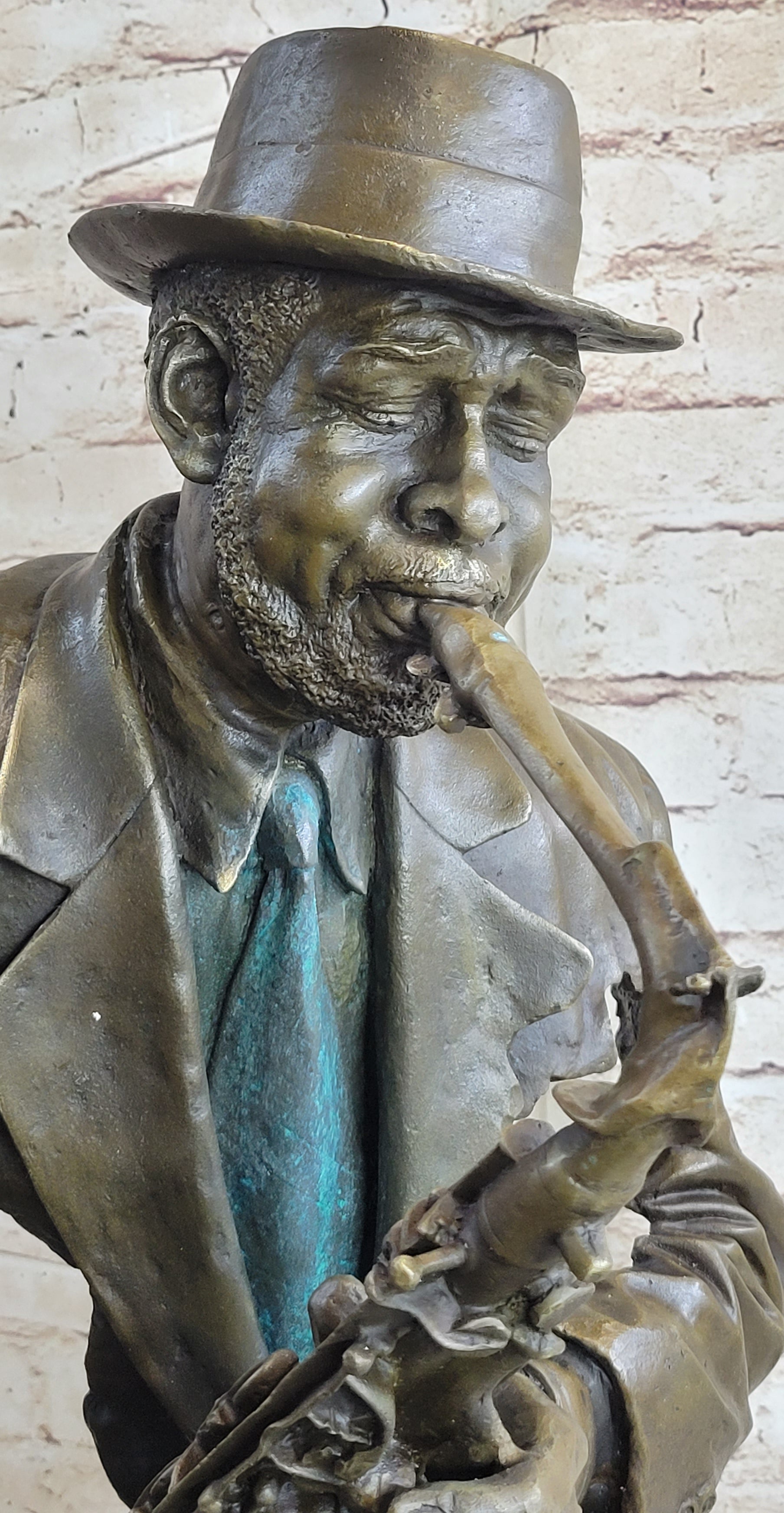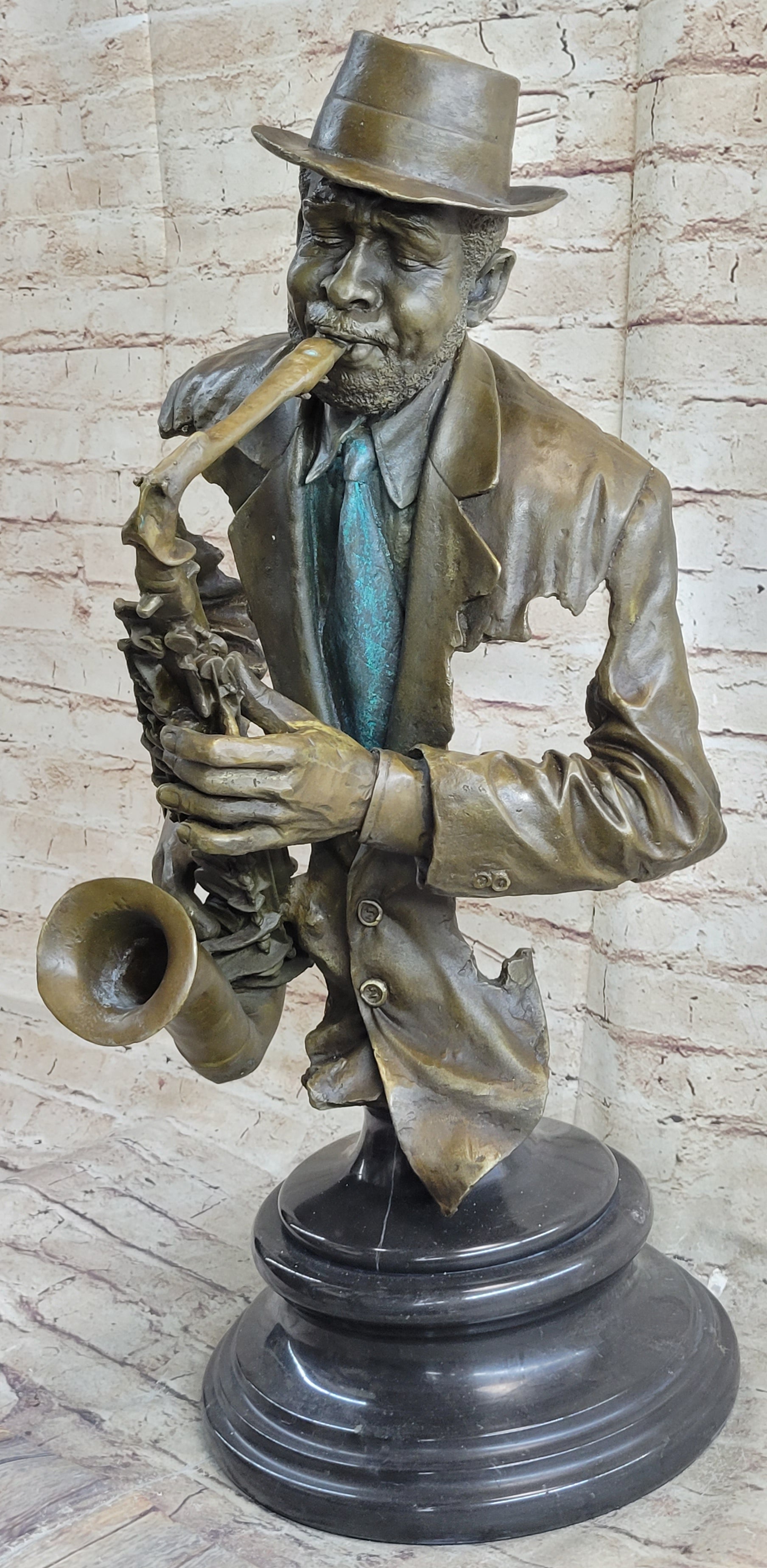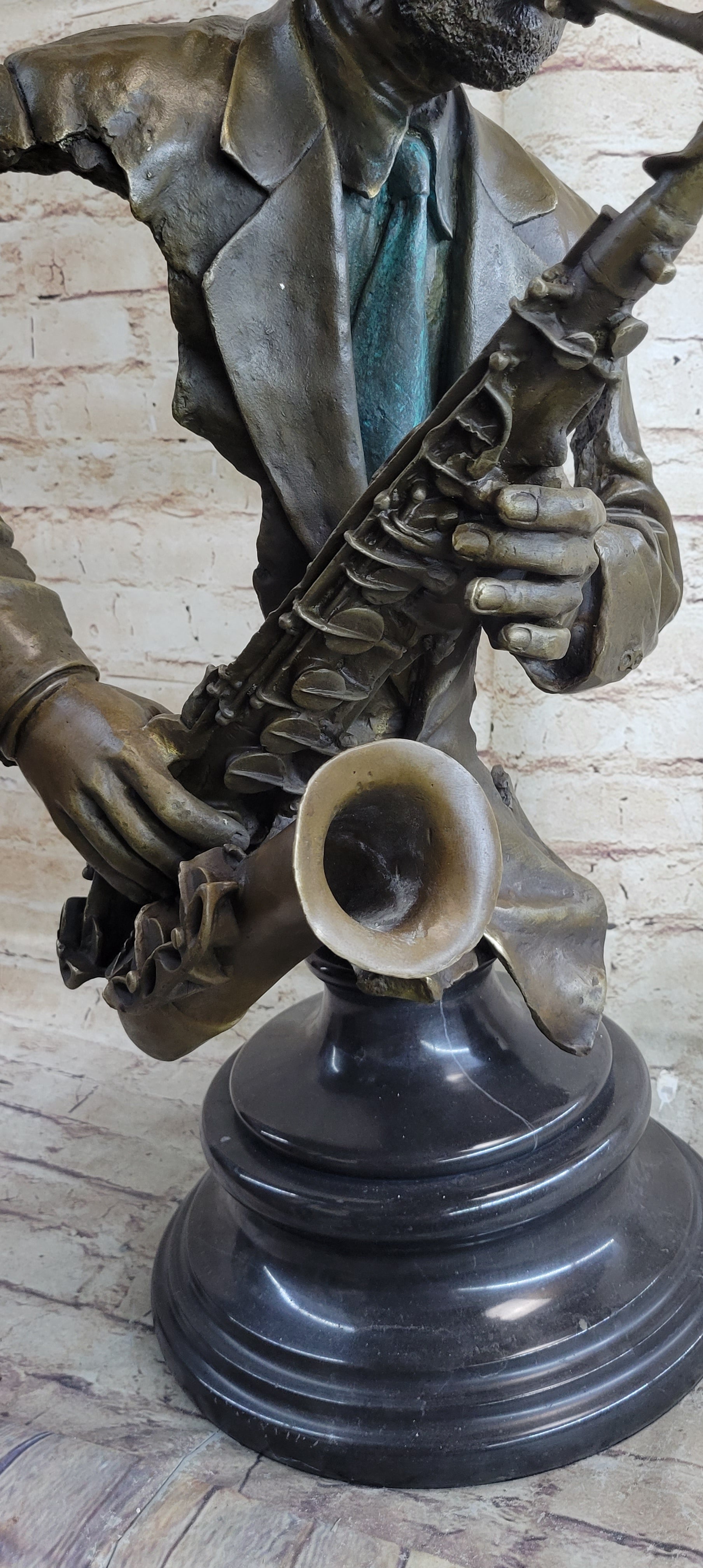 African American Jazz Saxophone Player Saxophonist Musician Bronze Statue Sculpture