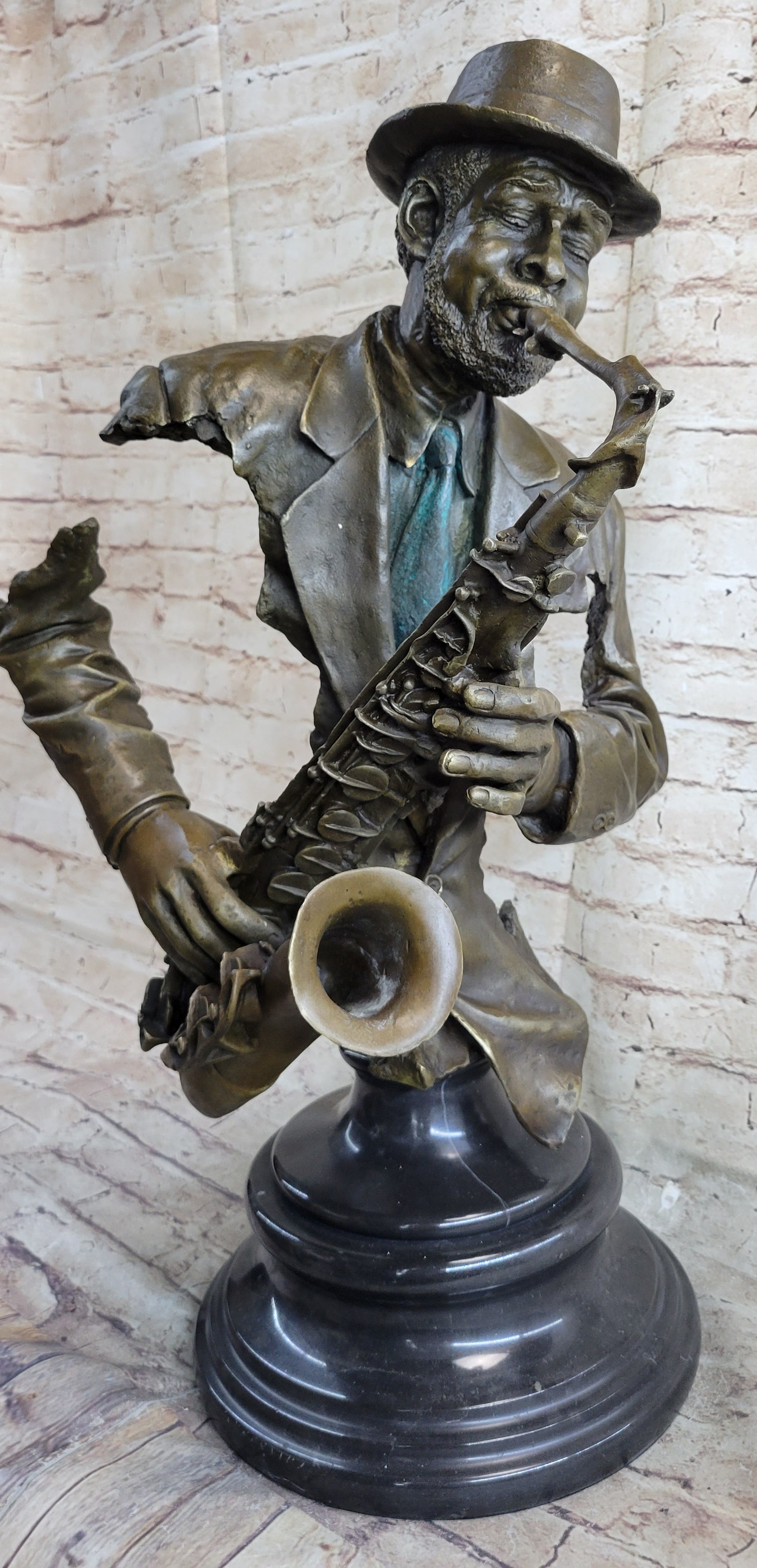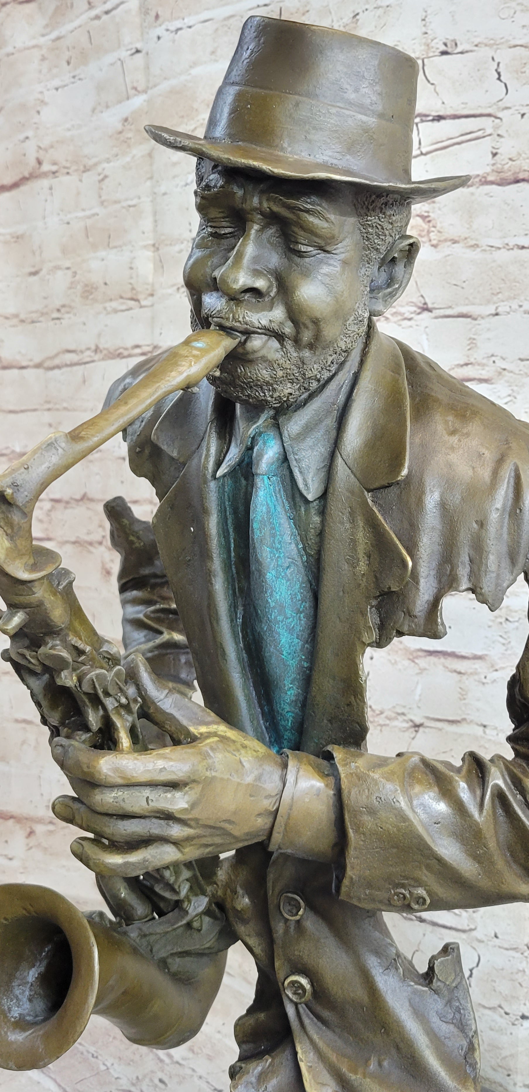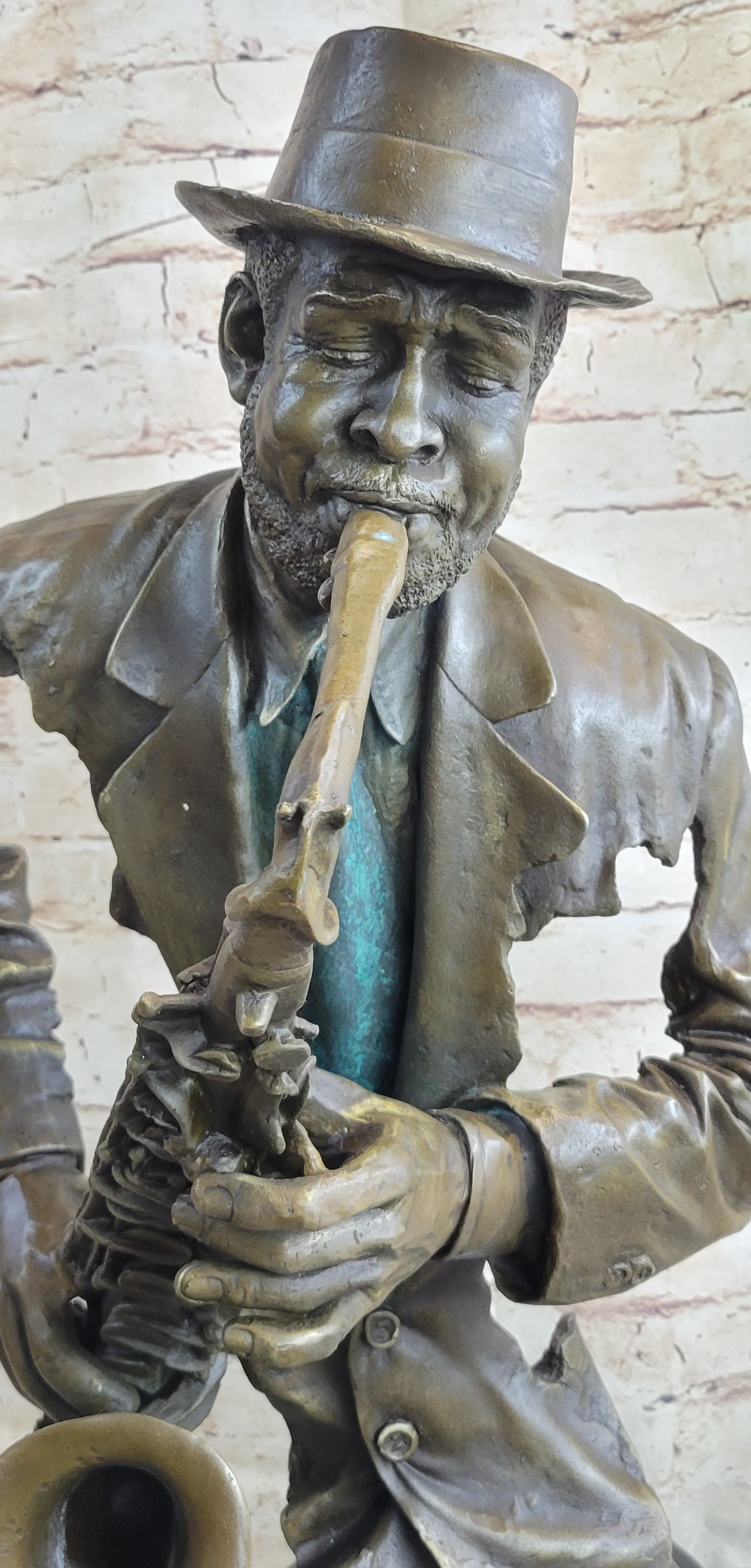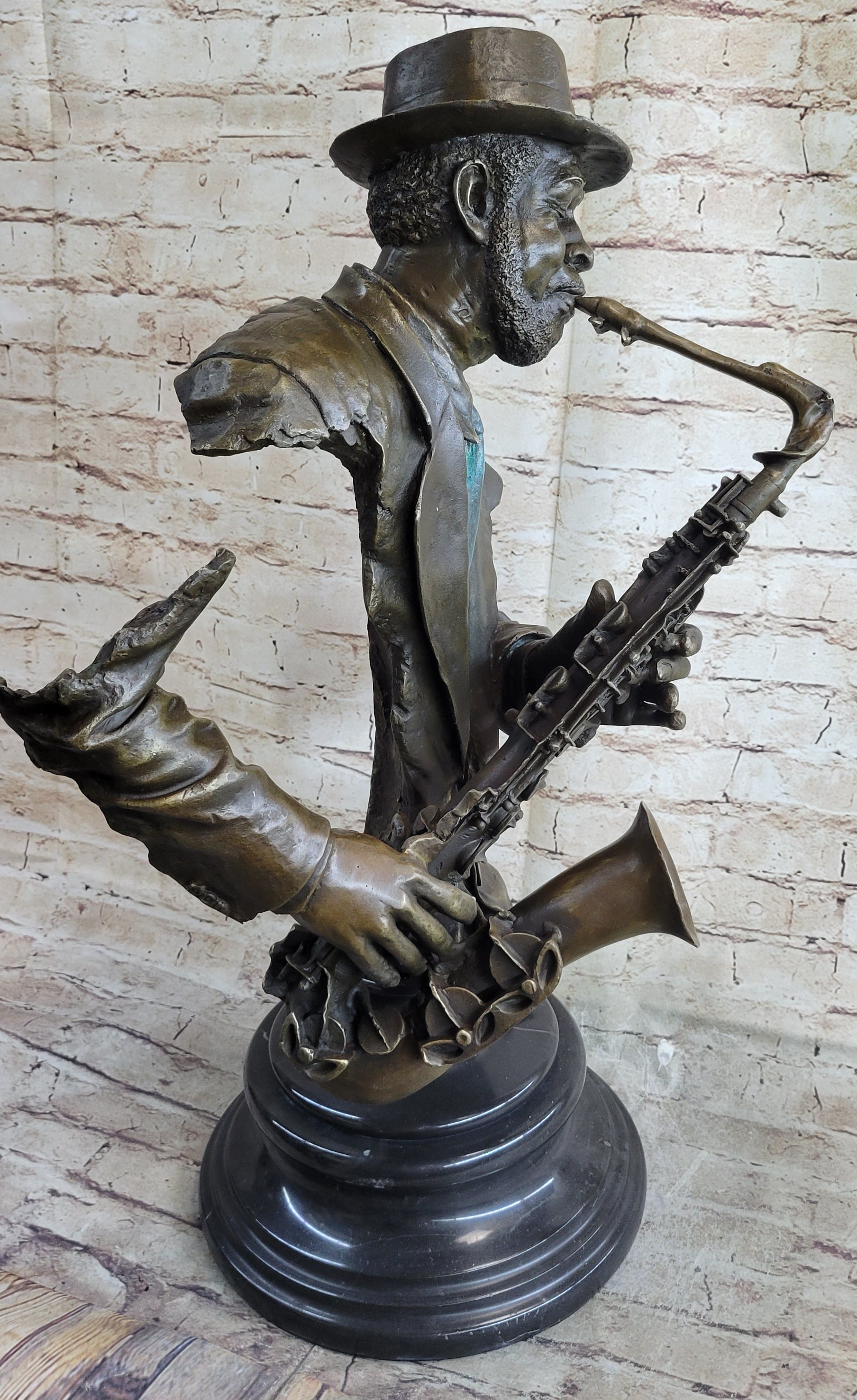 African American Jazz Saxophone Player Saxophonist Musician Bronze Statue Sculpture